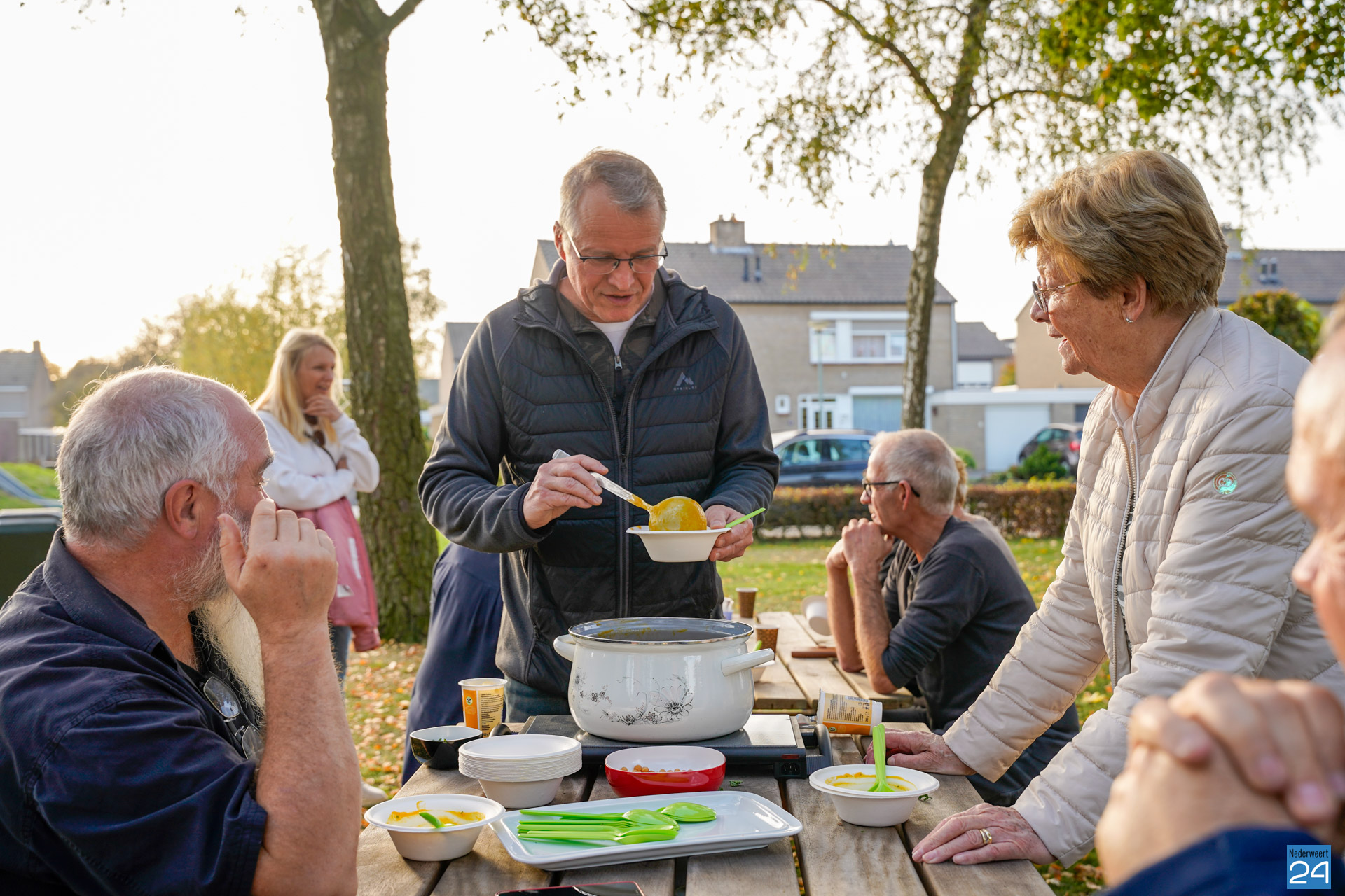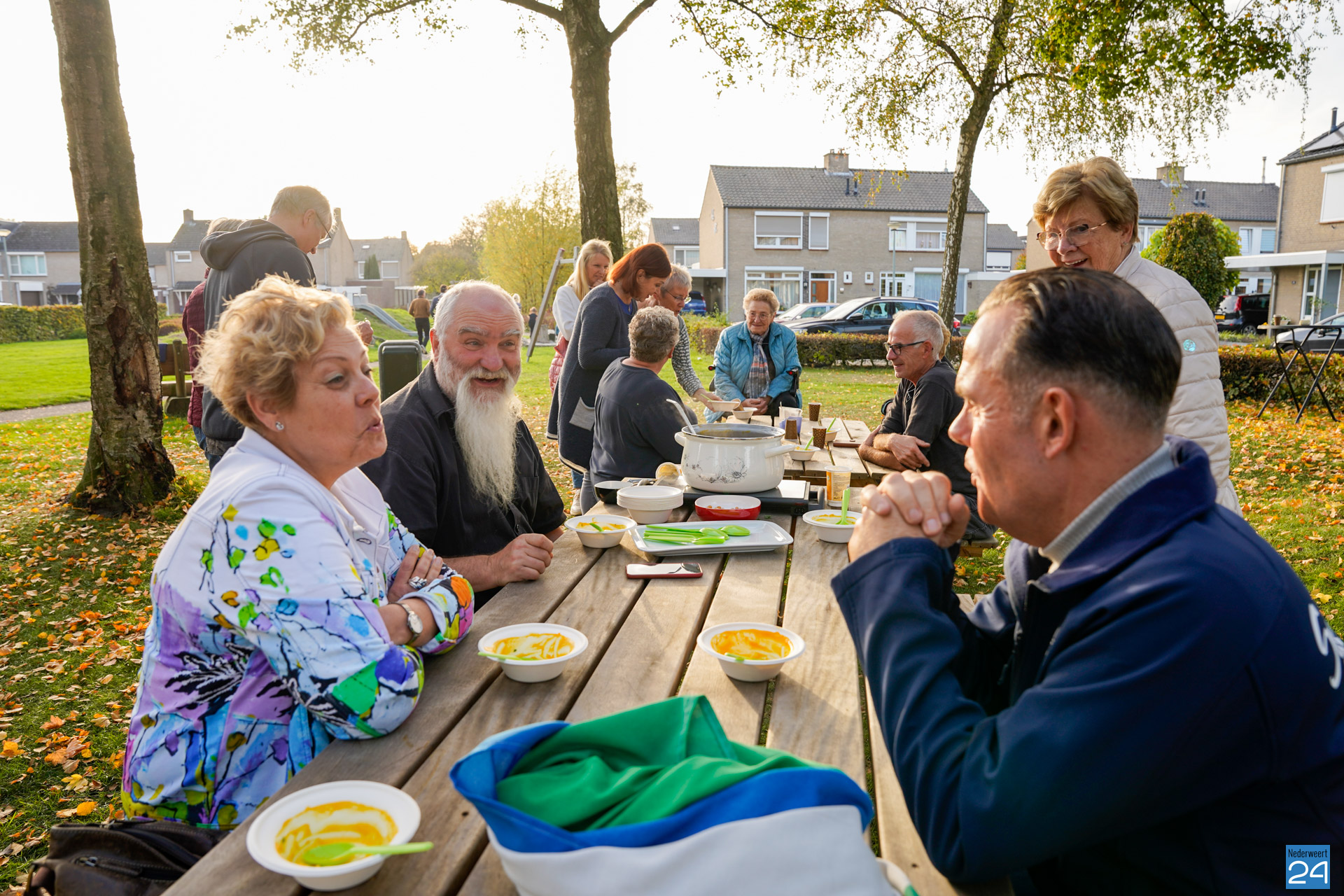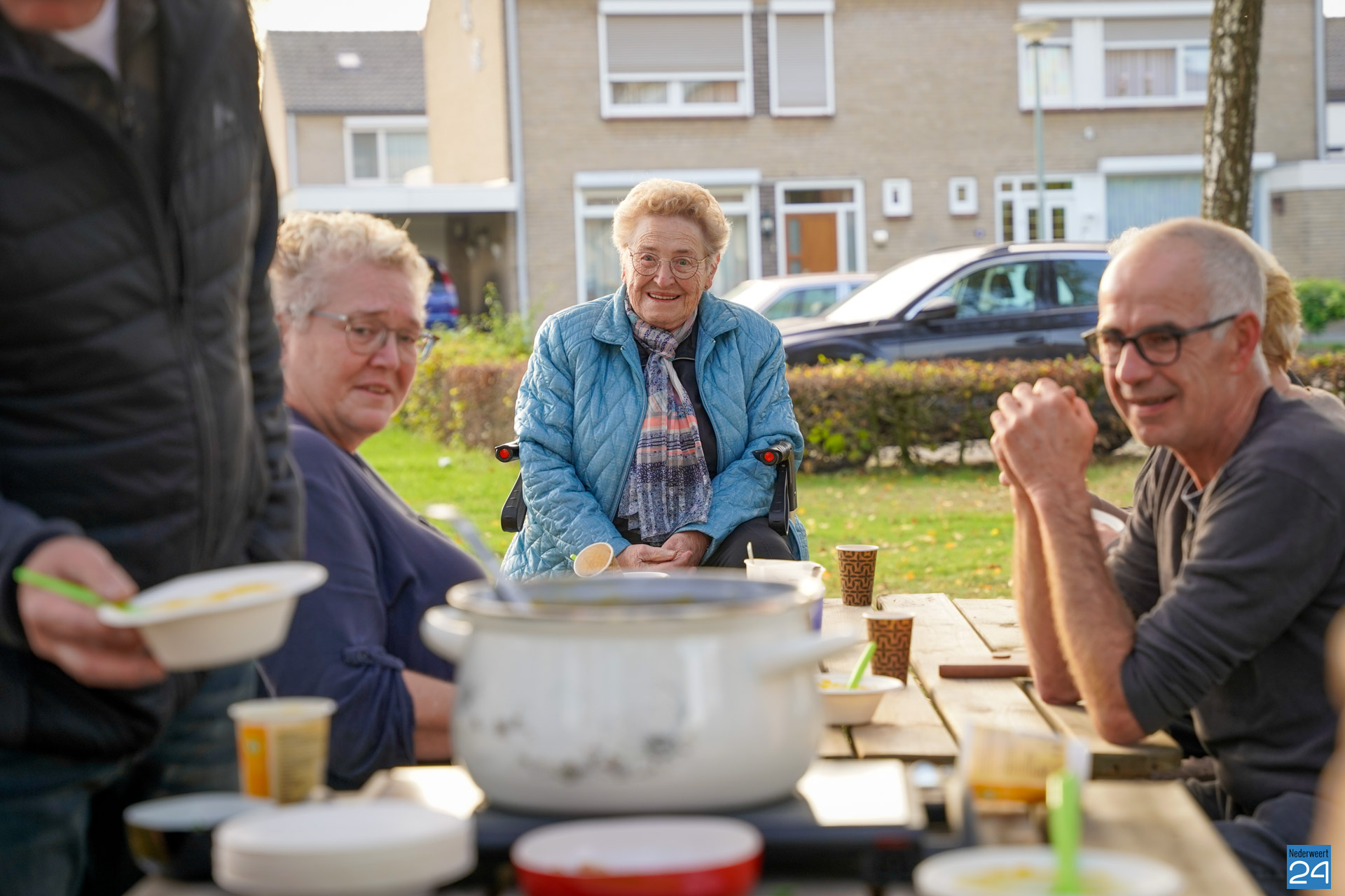 Meerdere generaties treffen elkaar wekelijks op de groene speelplaats voor de deur. Bewoners letten op elkaars (klein)kinderen en buurten en eten er regelmatig samen. Vandaag werd het bordje ‘Gezelligste Straat van Nederweert 2022’ onthuld. Naast het onthullen van het bordje vond er maandagmiddag nóg een speciaal momentje plaats. Eén van de buurtkinderen, Elin, had een brief geschreven aan de burgemeester waarin ze vroeg om een nieuwe picknicktafel, want het ‘wiebeltafeltje’ was aan vervanging toe. Vanmiddag kreeg ze een brief terug van de burgemeester waarin te lezen viel dat de buurt een nieuwe picknicktafel kreeg. Deze werd, in het bijzijn van wethouders Dieteren en Franssen én diverse omwonenden, feestelijk onthuld. Na de officiële momentjes liet de Esdoornstraat wéér zien waarom ze de titel hebben verdiend. Eén van de buurtbewoners had namelijk pompoensoep gemaakt. Het was een gezellig samenzijn, aan de gloednieuwe picknicktafel.