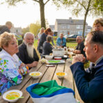 Meerdere generaties treffen elkaar wekelijks op de groene speelplaats voor de deur. Bewoners letten op elkaars (klein)kinderen en buurten en eten er regelmatig samen. Vandaag werd het bordje ‘Gezelligste Straat van Nederweert 2022’ onthuld. Naast het onthullen van het bordje vond er maandagmiddag nóg een speciaal momentje plaats. Eén van de buurtkinderen, Elin, had een brief geschreven aan de burgemeester waarin ze vroeg om een nieuwe picknicktafel, want het ‘wiebeltafeltje’ was aan vervanging toe. Vanmiddag kreeg ze een brief terug van de burgemeester waarin te lezen viel dat de buurt een nieuwe picknicktafel kreeg. Deze werd, in het bijzijn van wethouders Dieteren en Franssen én diverse omwonenden, feestelijk onthuld. Na de officiële momentjes liet de Esdoornstraat wéér zien waarom ze de titel hebben verdiend. Eén van de buurtbewoners had namelijk pompoensoep gemaakt. Het was een gezellig samenzijn, aan de gloednieuwe picknicktafel.