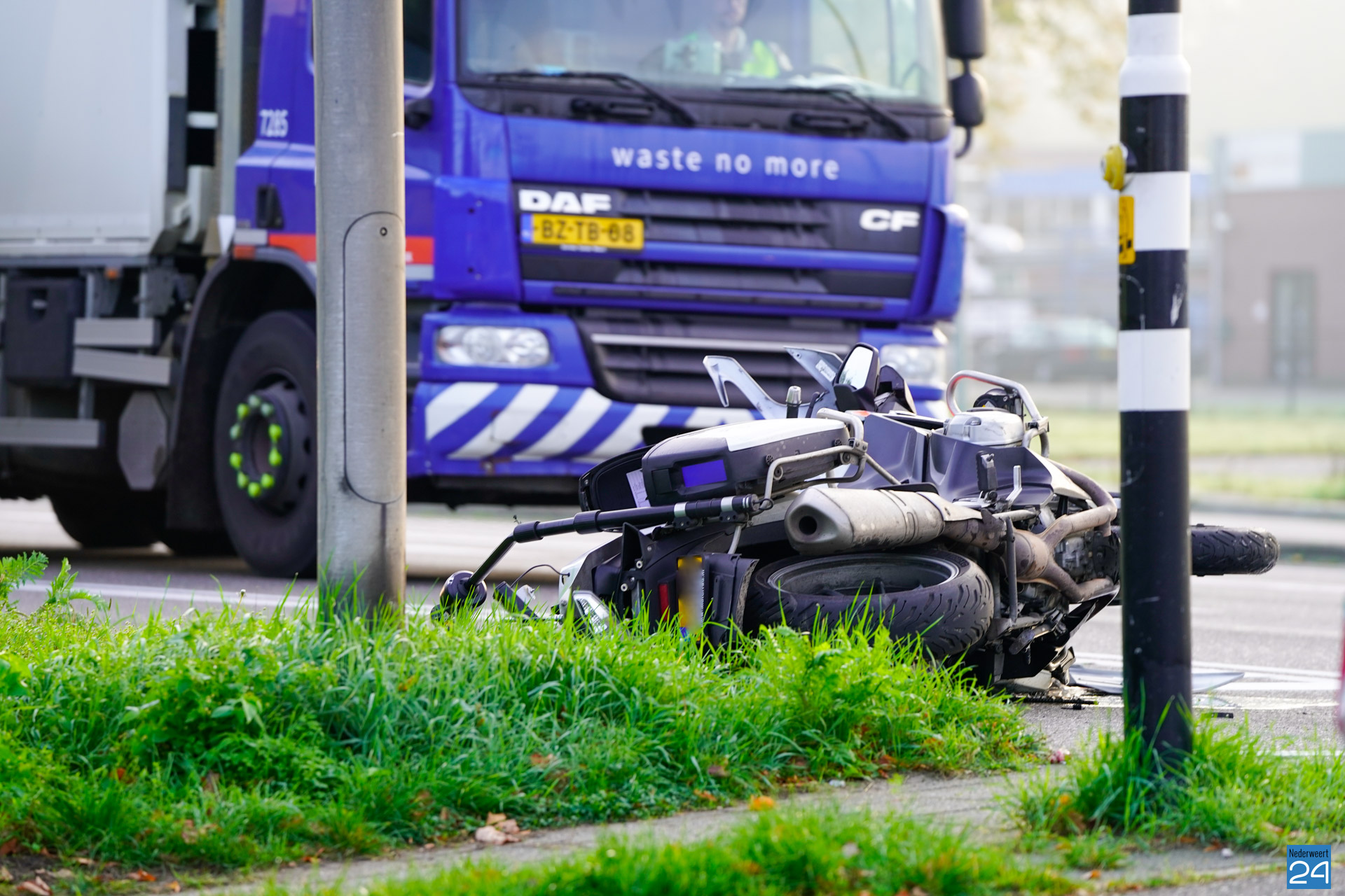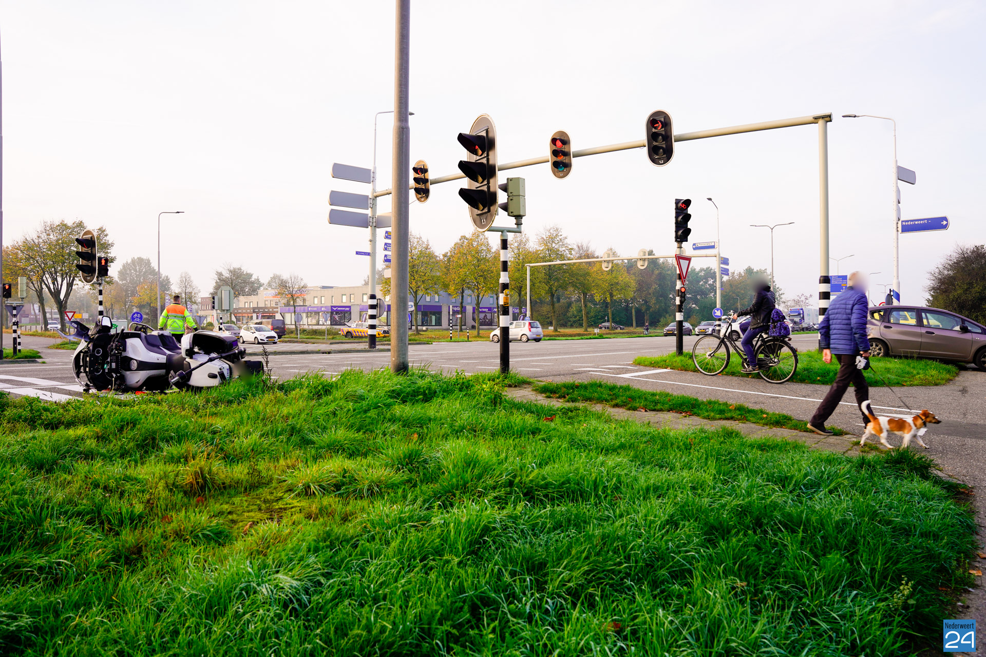 Hoe dat op deze kruising van het ongeluk zit weet ik niet, de motor is wel erg ver doorgeschoven.