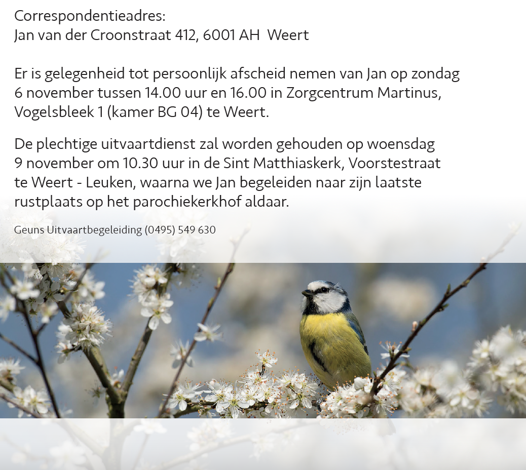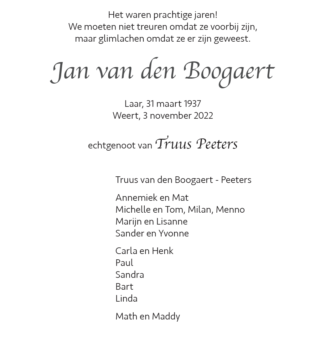 Gecondoleerd met het verlies van Jan truus kinderen en kleinkinderen sterkte met dit verlies