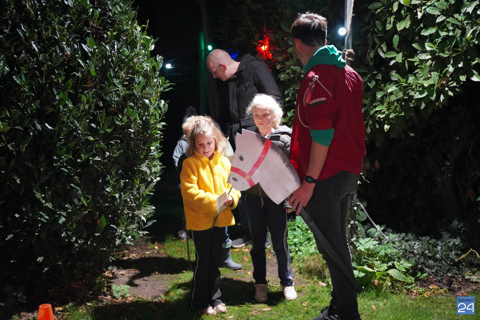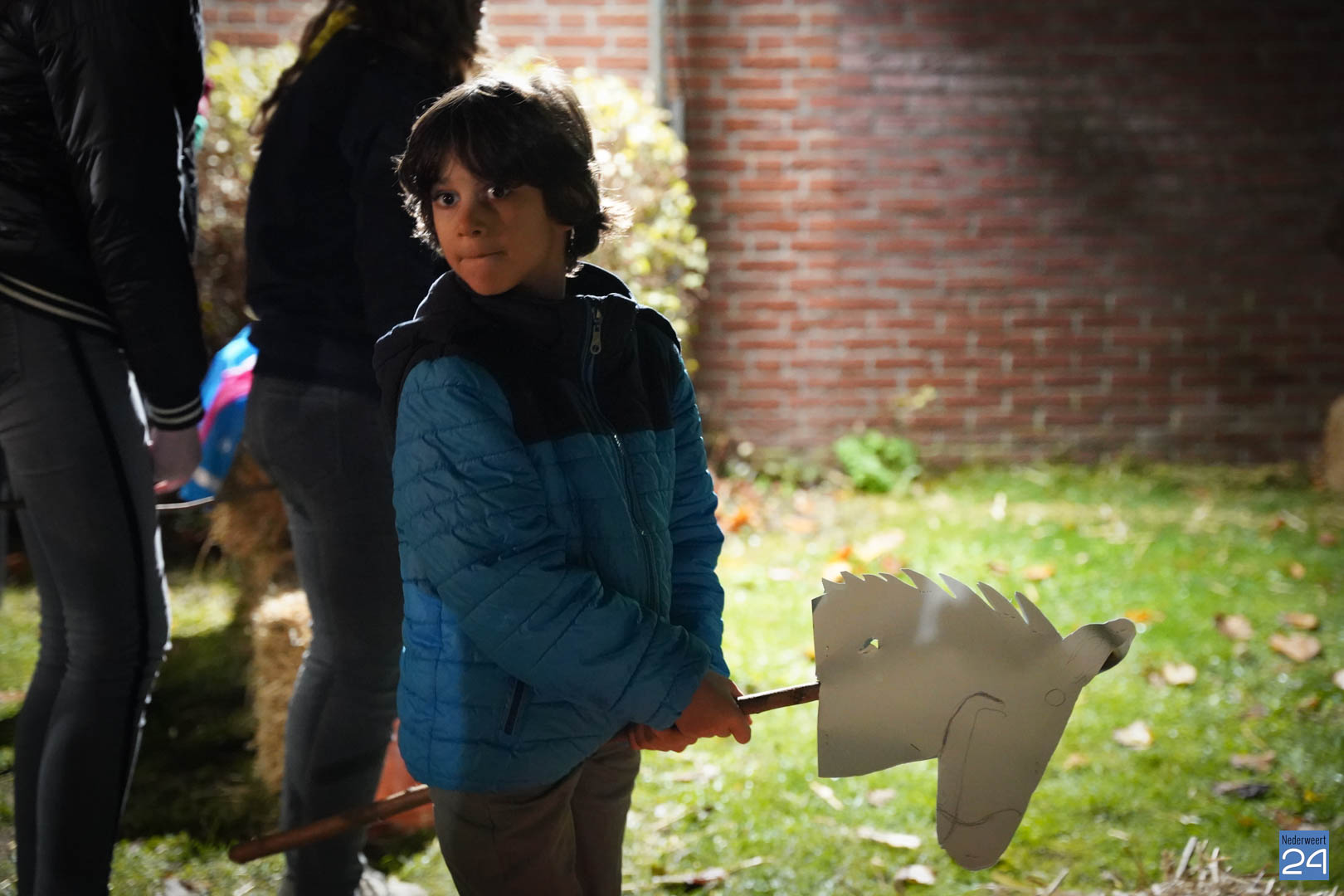 Meer dan 120 kinderen van de vereniging of uit de buurt hebben samen met hun ouders, vriendjes en vriendinnetjes allerlei attributen van Sint-Maarten gezocht. Zo vonden ze zijn zwaard in een geheime boodschap op een papiertje, dat zichtbaar werd boven een zelfgemaakt vuurtje. De boom in de bevertuin bleek uitstekend geschikt om stokken van te knippen, waarmee een stokpaard geknutseld werd. En met dat stokpaard kon je een heus parcours met hindernissen en strobalen afleggen. Als de kinderen ook de verschillen gezocht hadden tussen 2 opstellingen van de waterscouts en in de kampvuurkuil een lekkernij hadden klaargemaakt (en opgegeten), konden ze de volle kaart inleveren en een heerlijke wafel halen.