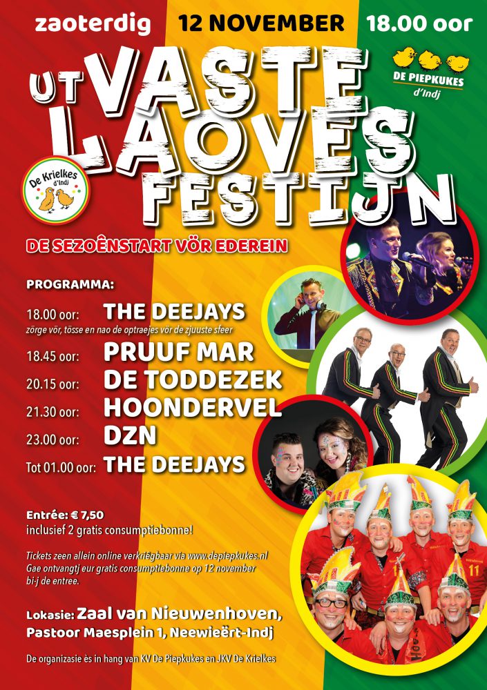 Komende zaterdag 12 november is het dan zover. KV de Piepkukes en JKV de Krielkes presenteren ’t VastelaovesFestijn als aftrap van de vastelaovendj.