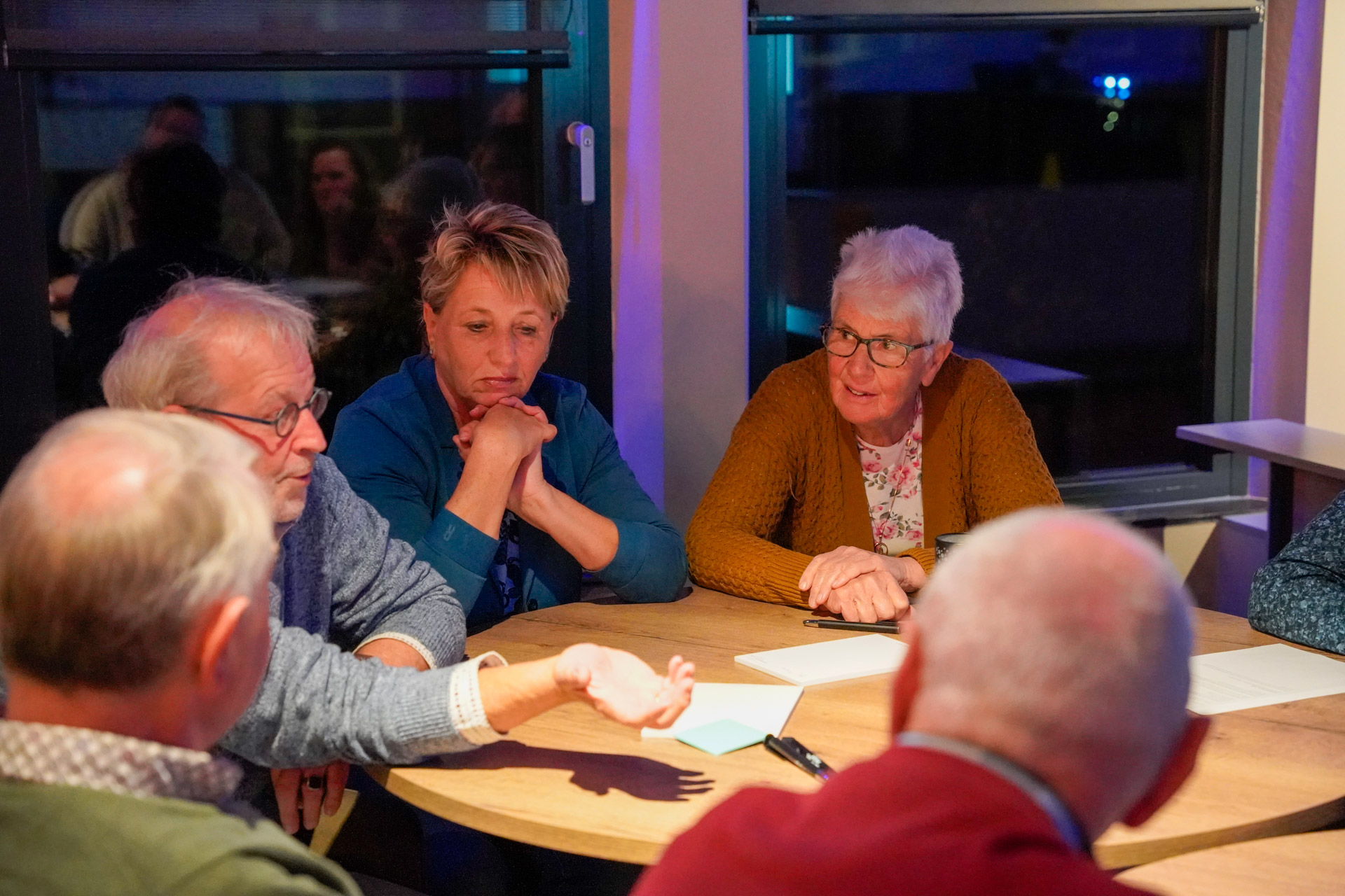 De inwoners werden, na een kop koffie en een stukje vlaai, in groepen verdeeld en kregen drie vragen voorgelegd; ‘Waar ben je trots op als je denkt aan Ospel?, Wat leeft er op dit moment in de kern Ospel? en Wat zou Ospel beter, leuker, mooier en fijner maken?’ De tafelgesprekken die daarna ontstonden leverden veel interessante weetjes, ideeën en wensen op. “Ik ben oprecht trots met deze fantastische opkomst en ben ervan overtuigd dat we met de opgehaalde informatie Ospel nog leuker en mooier kunnen maken,” aldus voorzitter Ramon Vaes.
