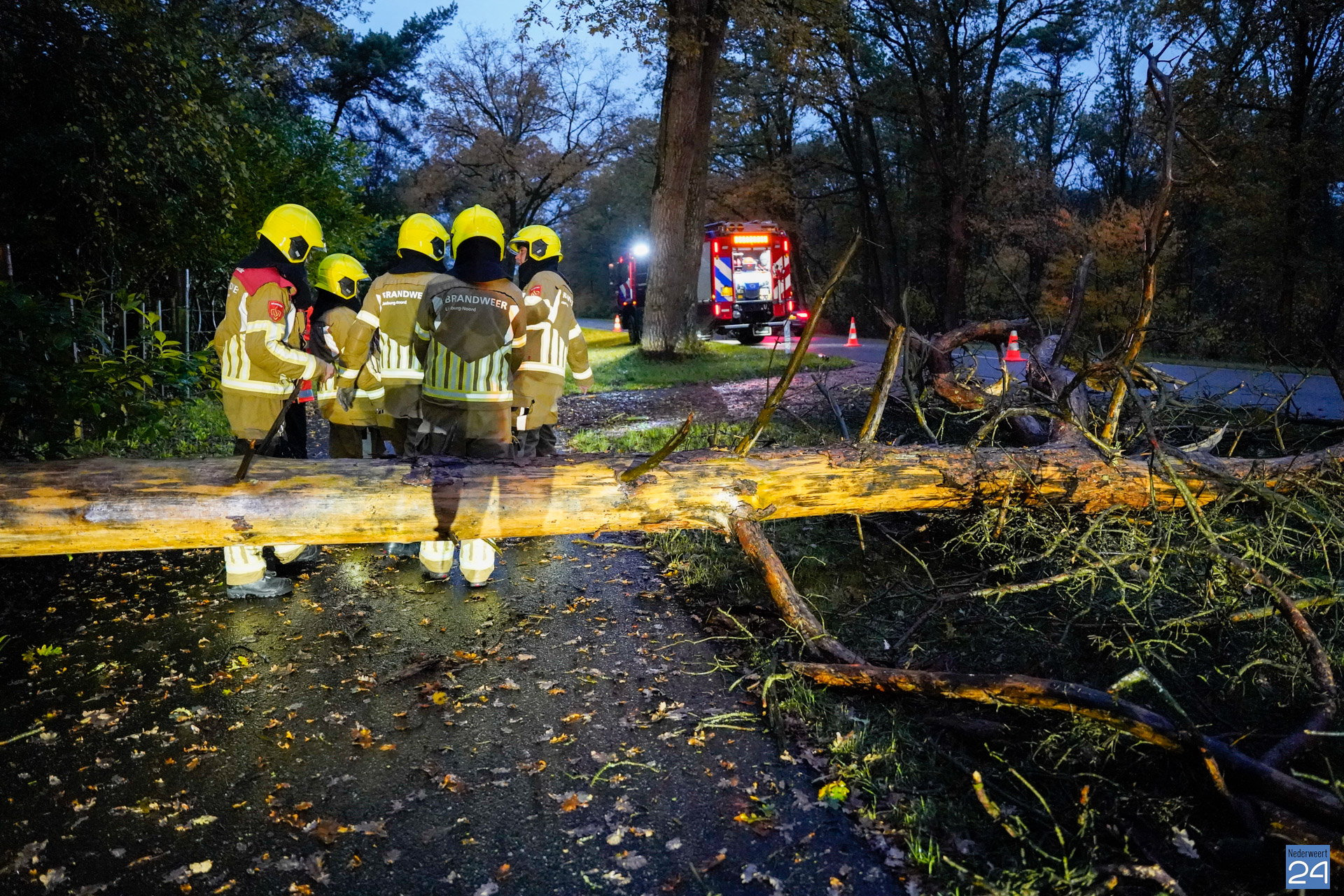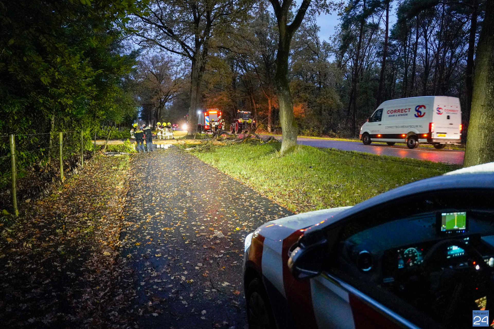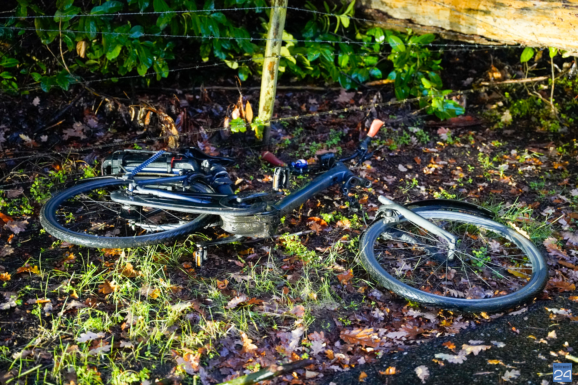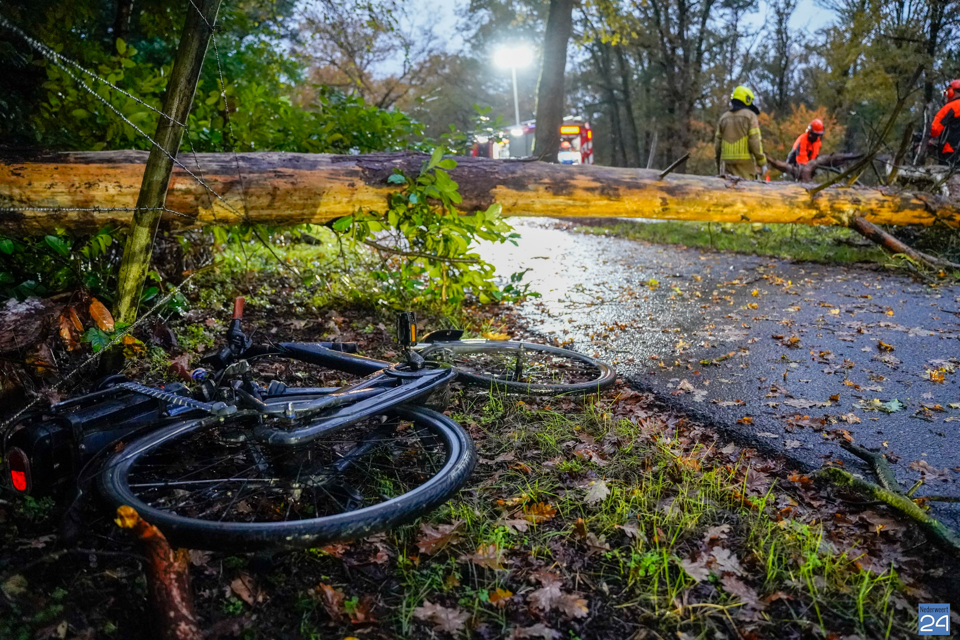 Zover bekend kwam de persoon er zonder kleerscheuren vanaf. De fiets had wat meer pech en brak doormiddel. Ook een personenauto zou bij het incident betrokken zijn. Deze zou de boom, die mogelijk al op de grond lag, hebben geraakt. Toen de hulpdiensten ter plaatse kwamen waren de auto én fietser al vertrokken. De fiets lag wel in twee delen op het fietspad.