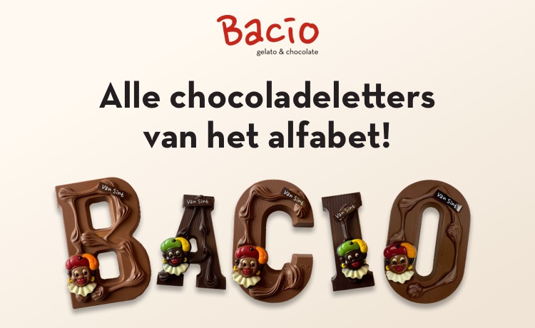 De chocolade machines bij Bacio draaien op volle toeren. Nu de Sint in het land is staat de chocolade kraan niet meer stil en maakt het team van Bacio de lekkerste chocolade letters van de allerbeste Callebaut chocolade. Het hele alfabet ligt voor je klaar, in twee formaten en in de smaken melk, wit & puur!