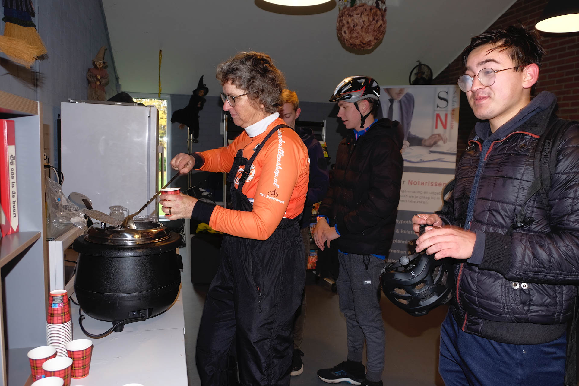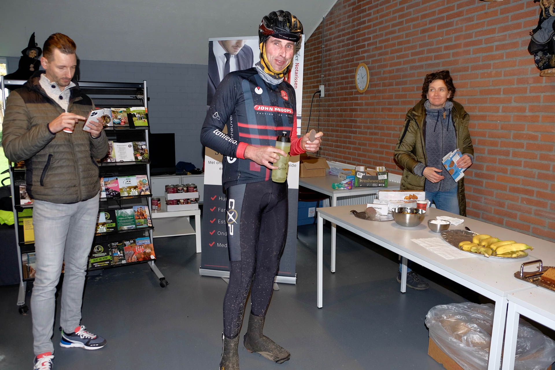De animo voor de mountainbiketocht van 50 km was het groots. Het ging over modderige paden en bosweggetjes met natte bladeren richting de pauzeplaats Camping De Heksenheuvel in Someren. De warme soep vond gretig aftrek, evenals de halve bananen en ontbijtkoek. De gravelers fietsten rondom Weert en na de pauzeplaats bij de Hoeve Lieshout ging het richting Thorn en de Maasplassen. Bij de gravelers was de afstand van 95 km favoriet. Onder de modder, maar met een glimlach op het gezicht passeerden de fietsers de finish wederom bij Daatjeshoeve. Iedere 50ste fietser ontving daar een cadeaubon van de sponsoren: Expert, E-Power, Cycle Trend, Dansrijck, autobedrijf Leon de Wit, Jan Brinkmans opticiën en zonnebrillen.nl.