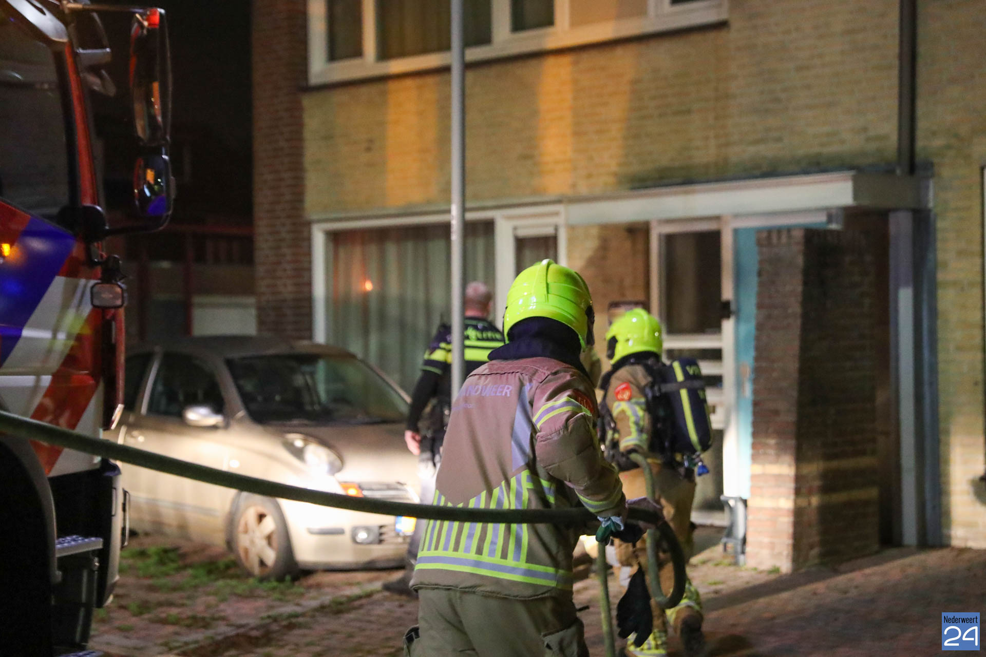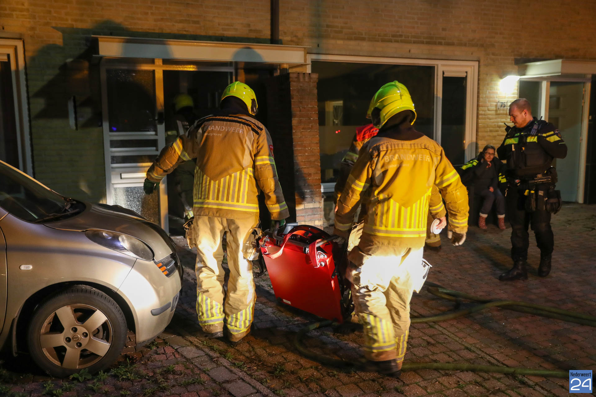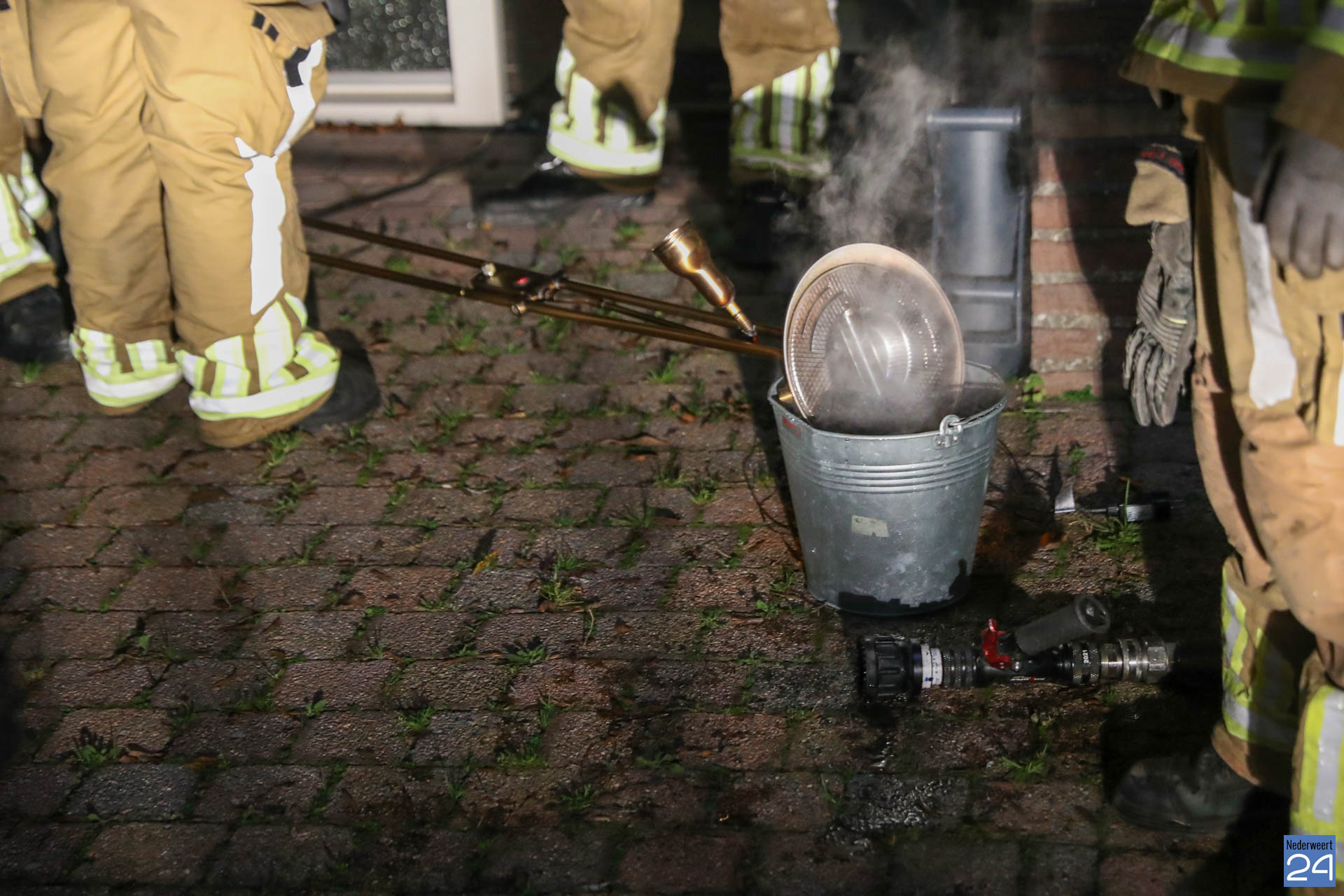 De brandweer was ook snel ter plaatse maar kon in eerste instantie de woning niet binnen omdat de deur dicht gewaaid was. De vrouw had in de haast de sleutels binnen laten liggen. Met een ‘stormram‘ werd de deur geforceerd en kon de brandweer het vuurtje doven.