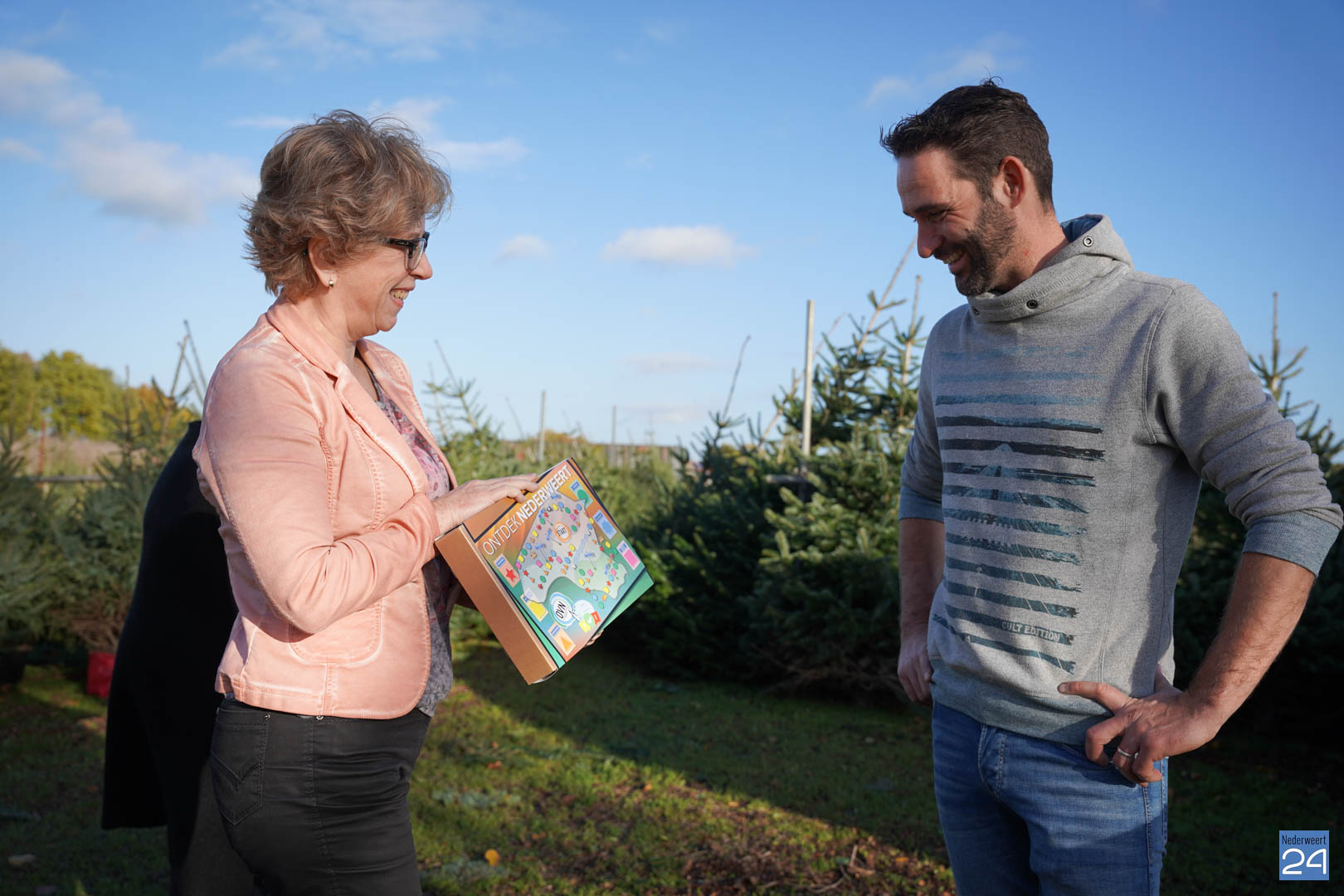 Rob Triepels is met zijn eigen kerstboomkwekerij een van de nieuwste leden van de Ondernemers Vereniging Nederweert (OVN). Speciaal voor deze gelegenheid overhandigde Marleen Linsen en Karin Wering namens de OVN een welkomstgeschenk in de vorm van het bordspel ‘Ontdek Nederweert’.
