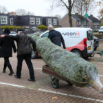 Na bestelling kon je de buurtboom vandaag ophalen op het Raadhuisplein, voor de hoofdingang van het gemeentehuis. De klusploeg van Kansrijk in de Wijk helpt mee om de boom op de aanhangwagen te tillen. “We hadden natuurlijk ook voor wat lekkers” gezorgd, aldus leefbaarheidsregisseur Harold van der Haar. “Je bent zelf verantwoordelijk voor de plaatsing van de boom, en eventuele kosten voor decoratiemateriaal en stroomverbruik zijn voor eigen rekening. De boom leveren wij gratis.”