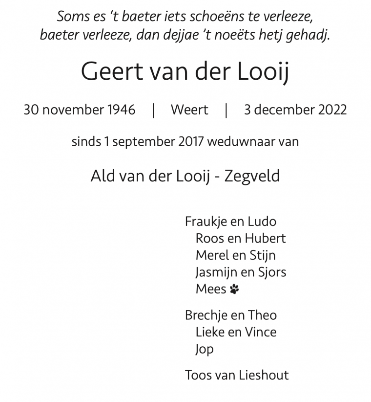 Gecondoleerd heel veel sterkte allemaal Wiel en Lenie van mierlo