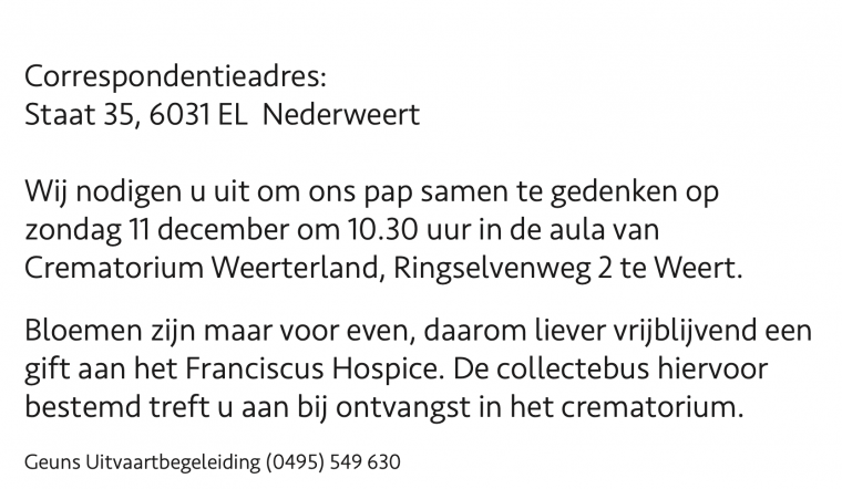 Gecondoleerd met het verlies van jullie vader en Opa,