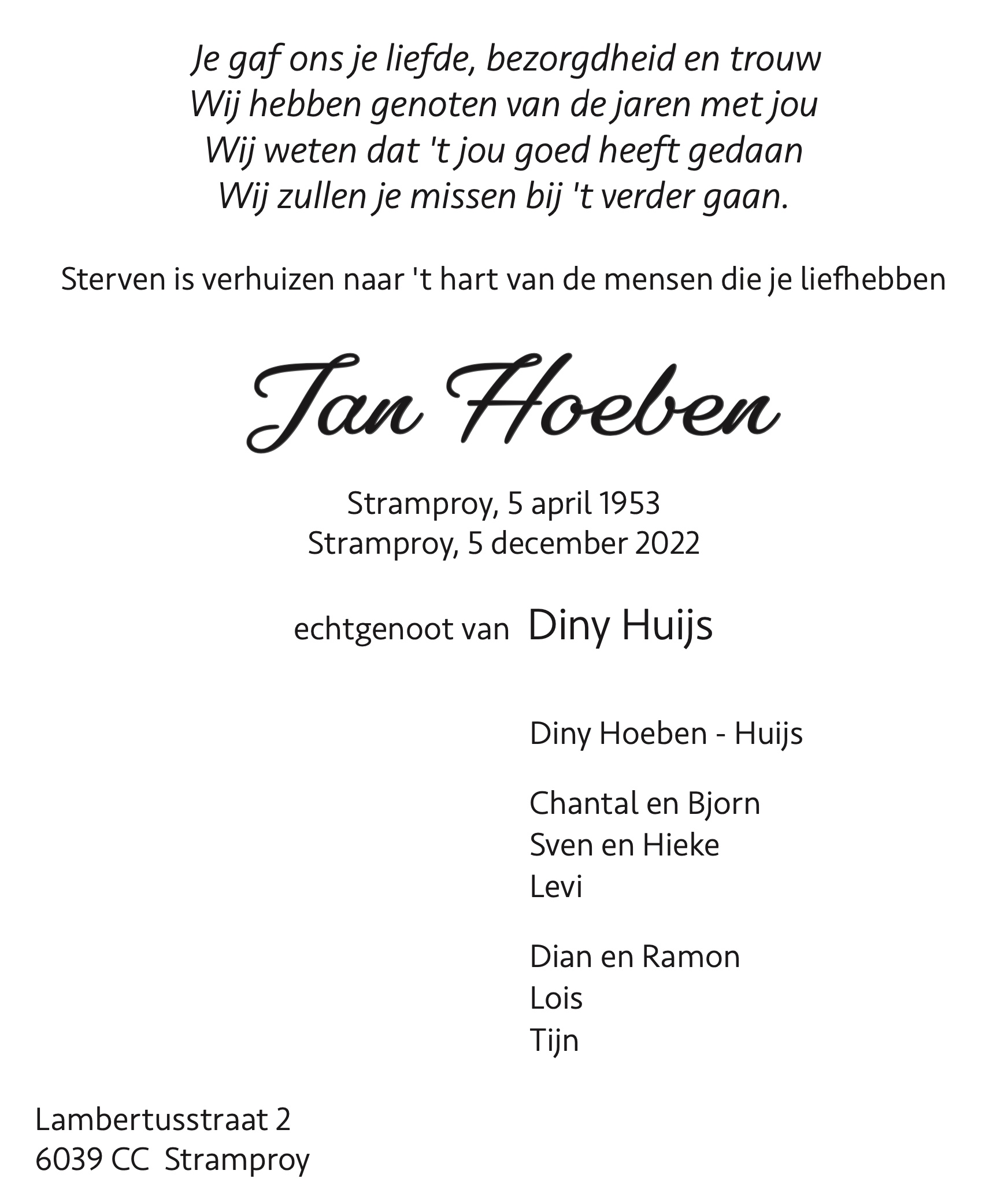 Overlijdensbericht: Jan Hoeben †