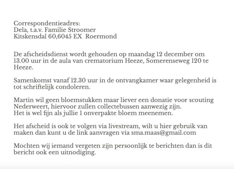 Laten we hem nooit vergeten en blijvend gedenken en het nieuwe park naar hem vernoemen: Martin Stroomer Scout Park.