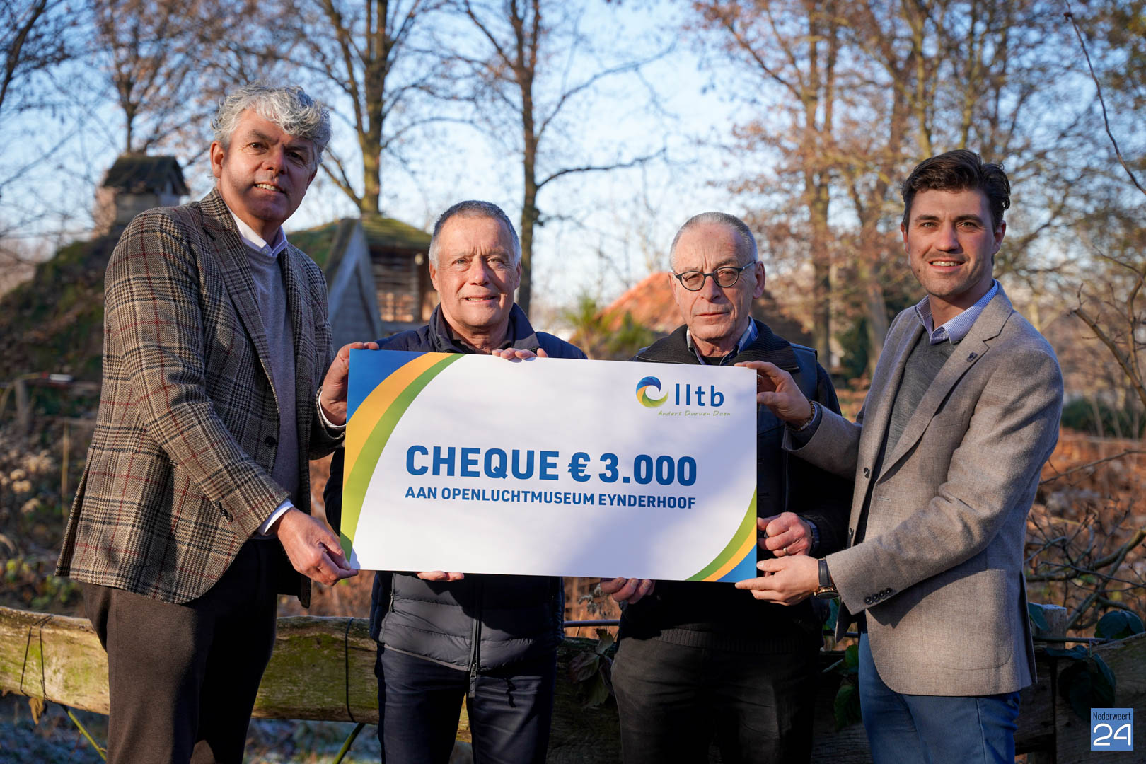 De wens van de voorzitters was om het geld te schenken aan Openluchtmuseum Eynderhoof, de plek waar ze in september het jubileumfestival van de LLTB hebben gevierd. Vele vrijwilligers van Eynderhoof hebben destijds geholpen om het feest tot een succes te maken, en daarvoor willen ze Eynderhoof bedanken.