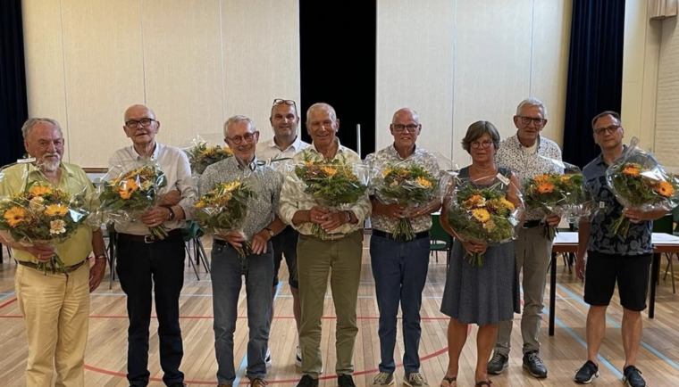 Het gros van de jubilarissen werd gehuldigd tijdens een feestavond van de vereniging. En natuurlijk waren de jubilarissen die 70 jaar lid zijn als eerste aan de beurt. Har en Joep van de Broek, Ton Meuwissen en Lei van Roij zijn allen in 1952 lid geworden van de vereniging. Voorzitter Erwin Pellemans refereerde aan de enorme veranderingen die zijn in vele decennia hebben meegemaakt en de momenten waarop bij Ton Meuwissen en Har van de Broek tijdens hun 50-jarig huwelijk serenades zijn gebracht. Lei van Roij is nog het enige spelende lid van deze jubilarissen op de es-bas en was tevens jarenlang verantwoordelijk voor de opleiding van de fanfare. Joep van de Broek heeft onlangs om gezondheidsredenen ervoor moeten kiezen om te stoppen als spelend lid, maar is nog immer een graag geziene gast tijdens repetities en uitvoeringen.