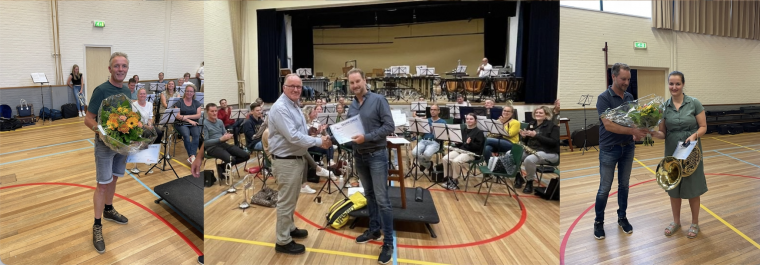 Tjeu Kwaspen, Marc Houben en Roger Hanssen zijn 40 jaar lid. Bij Tjeu Kwaspen refereerde de voorzitter eraan dat Tjeu als geen ander weet hoe het is om deze jubilarissen toe te spreken, omdat Tjeu jarenlang voorzitter van de vereniging was en inmiddels ook erelid. Marc Houben zorgt op zijn bes-bas voor fundament onder het korps en samen met Roger Hanssen op trompet is voor hen ook de derde helft een wezenlijk onderdeel van het lidmaatschap. Waarbij ook Marc lid was van de kapel en Roger nog meer muziek maakt en de muzikale scepter zwaait bij Joekskapel Ut vêttig Uemke.