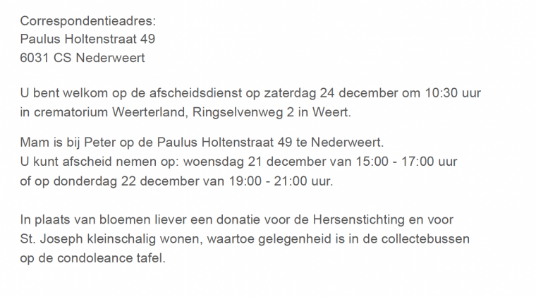 Peter en fam. Gecondoleerd met het overlijden van jullie moeder, schoonmoeder en oma. Heel veel sterkte allemaal !