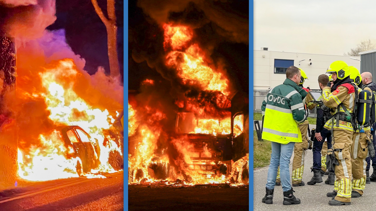 5. Drie vrachtwagens verwoest door brand Nederweert