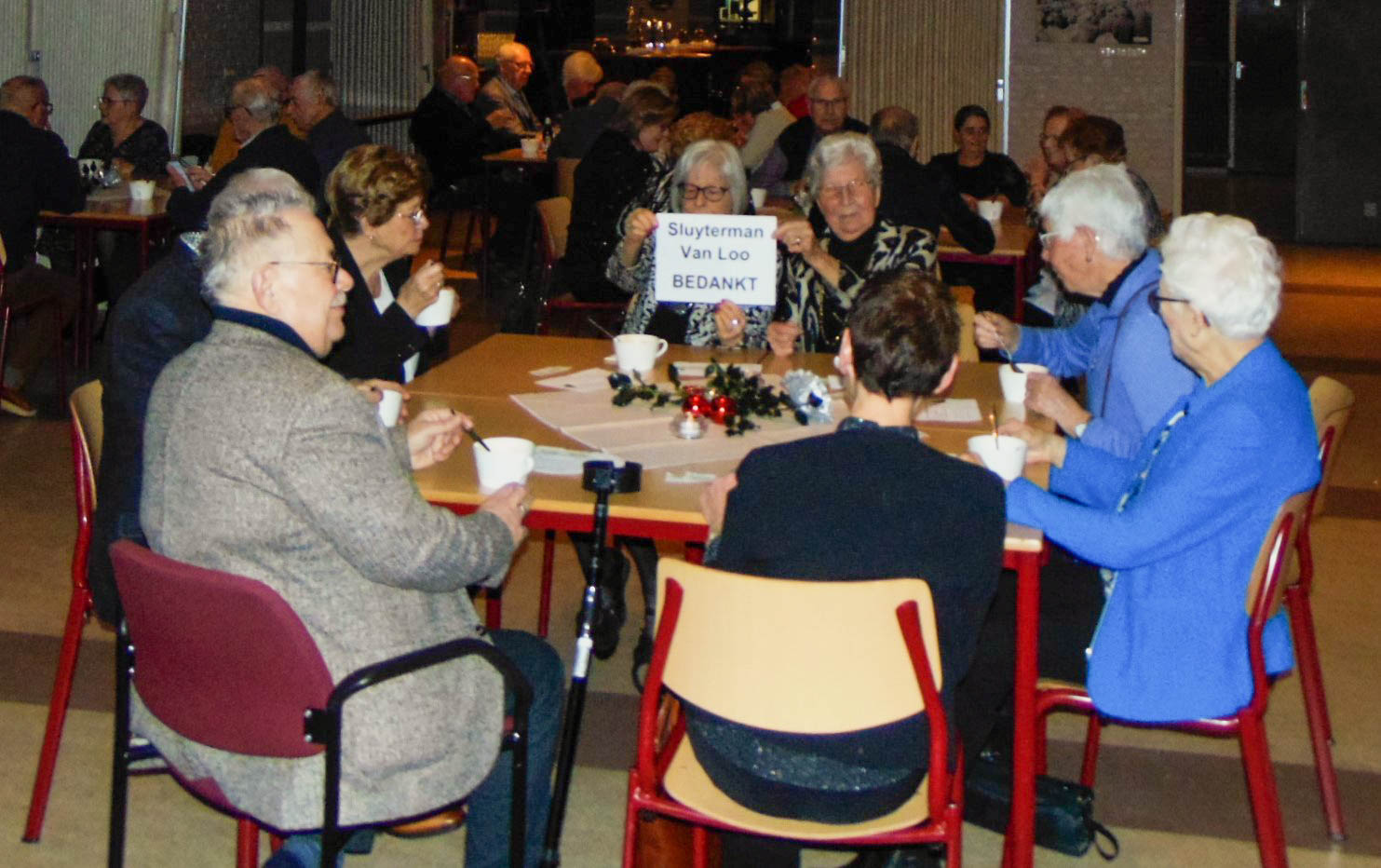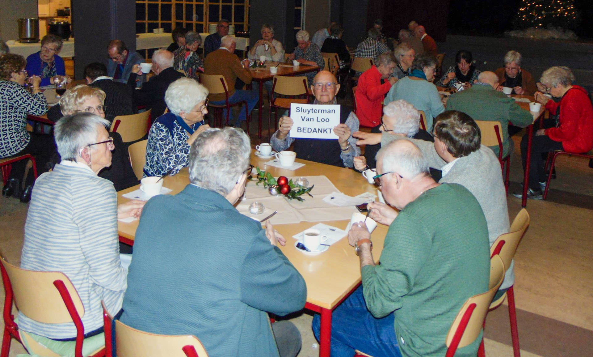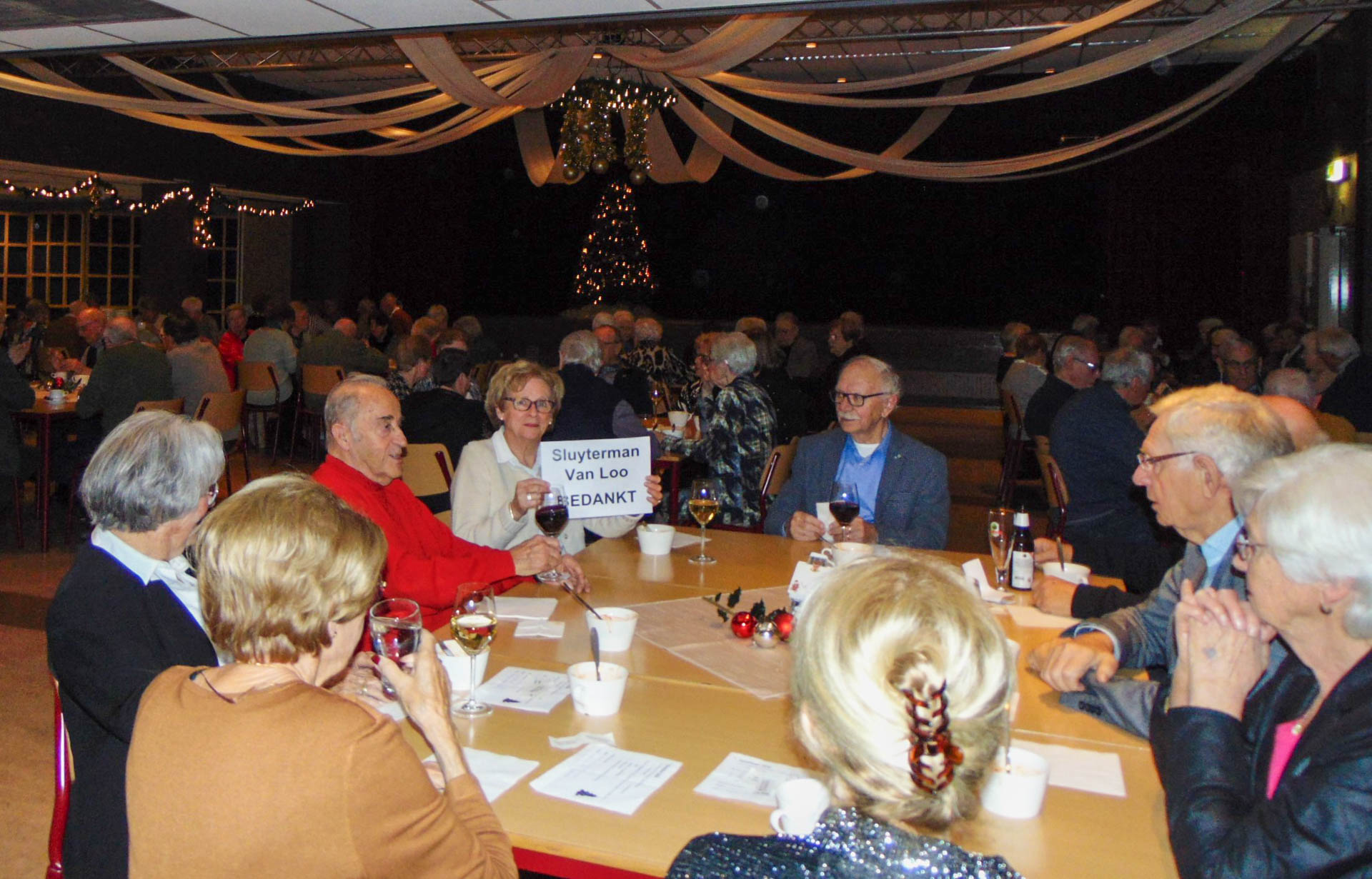 Voor de bewoners was dit weer een mooie gelegenheid om gezellig met elkaar aan tafel te zitten, sociale contacten te onderhouden, en de nieuwelingen konden kennis maken met hun medebewoners. Om 17.00 uur was iedereen aanwezig en werden wij welkom geheten door de voorzitter. Daarna volgde een lopend buffet met soep en heerlijke hoofdgerechten met als afsluiting een heerlijk dessert dat het kerstdiner compleet maakte.