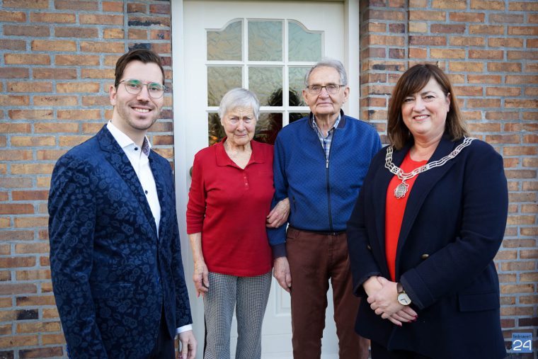 Het eerste paar dat door het college van B&W in het nieuwe jaar is bezocht, zijn de heer en mevrouw Sil en Mia Kuijpers-Veugen uit Ospel. Zij stapten op 27 december 1962 in het huwelijksbootje en vierden afgelopen december hun diamanten jubileum. Een feestelijke mijlpaal en daarom kwamen burgemeester Op de Laak en wethouder Franssen op vrijdag 6 januari een bezoekje brengen.