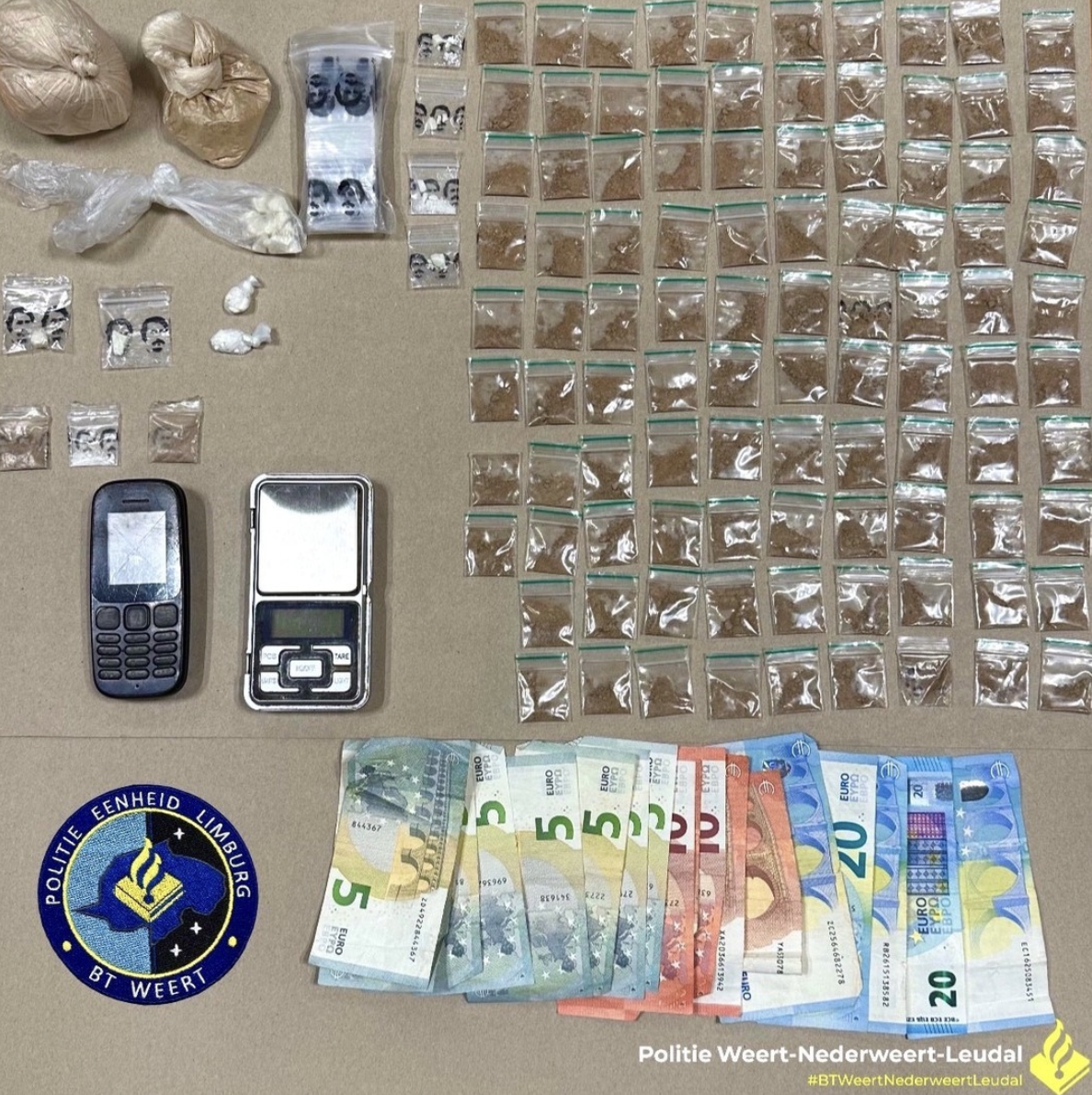 Na deze controle heeft de politie Weert samen met de collega’s van politie Roermond direct een inval gedaan in een woning in Roermond. Hier troffen ze wederom een ruime hoeveelheid (vermoedelijk) harddrugs aan. Uit officiële tests zal moeten blijken wat het is. De inbeslaggenomen goederen van deze instap zijn te zien op de foto. De bewoner van de woning is aangehouden. In de woning trof de politie verder nog een man aan die veroordeeld was voor een gevangenisstraf en gevlucht was van de Penitentiaire Inrichting. De man is aangehouden en mag zijn straf van meer dan een jaar verder uitzitten.