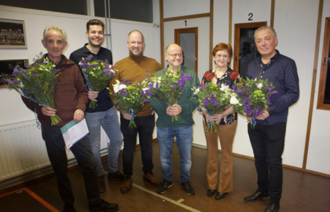 Dit jaar maar liefst zeven jubilarissen. Dat betekent in totaal 285 jaren van trouw lidmaatschap van de 85-jarige vereniging. De volgende leden werden in het zonnetje gezet: Jos Hekers (50 jaar lid), Thijs Gubbels (50 jaar lid) en Ton Gubbels (50 jaar lid), Margo Geuns (40 jaar lid), Eric Kessels (40 jaar lid), Mourk Koppen (40 jaar lid) en Frank Moonen (15 jaar lid). Allemaal van hart proficiat!