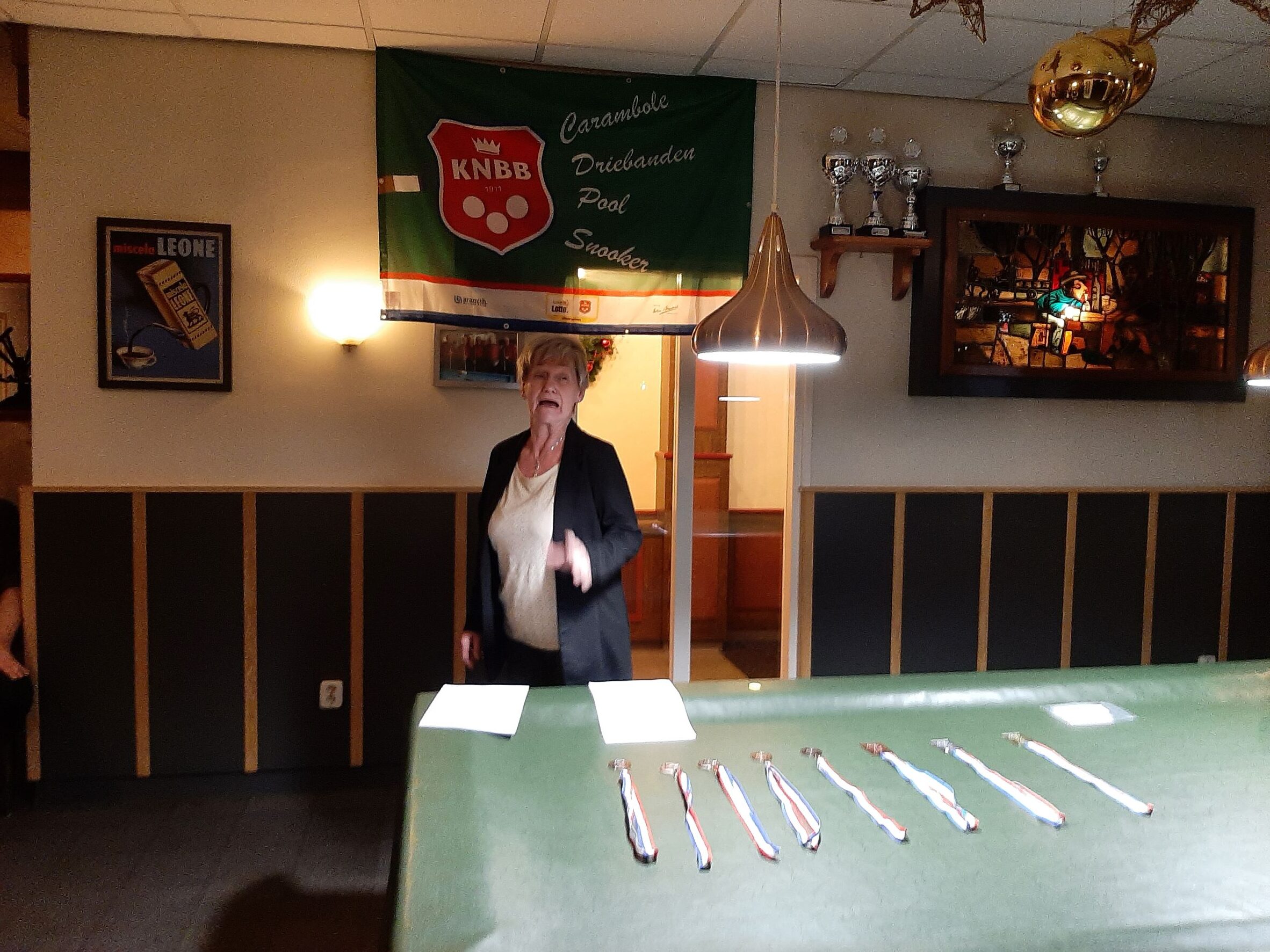 Hierna werden de prijzen uitgereikt door een KNBB afgevaardigde. De nummers 1 en 2 gaan door naar het kampioenschap van het Gewest dat nog deze maand in Hoogeveen plaatsvindt, met als ultieme doel om terecht te komen in het NK Libre klein in maart as. De podiumplaatsen waren voor: Joep Caers (Veldhoven), Rob van den Boom (Nederweert), Henk van Kollenburg ( Wintelre)