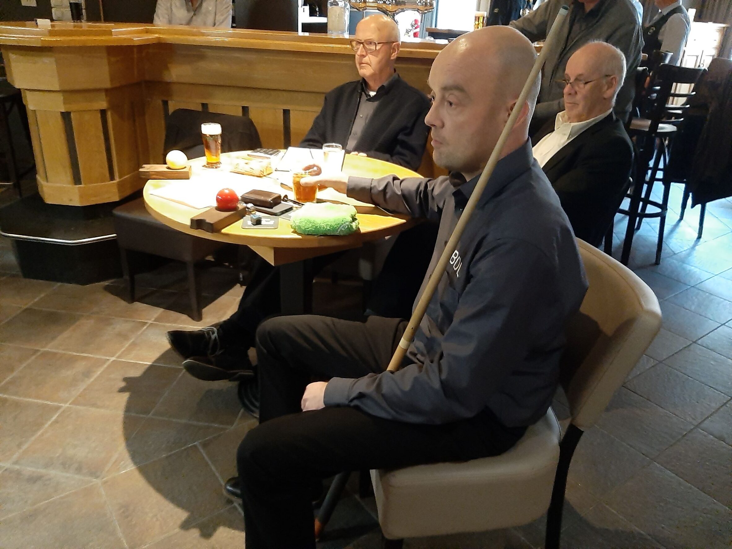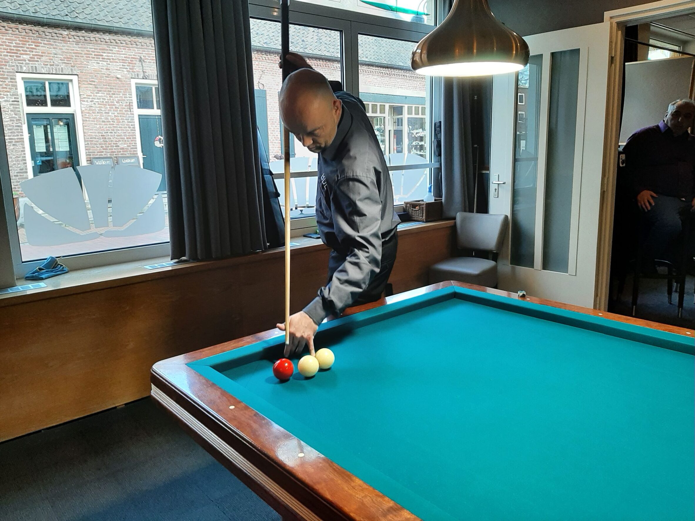 Voor de zondag stonden er nog twee te spelen ronden op het programma. In de zesde en voorlaatste ronde maakten de nummers 1 en 2 van de ranglijst geen fouten. Joep Caers (St. Joris) won zijn partij tegen Harrie Klessens (BV den Babbel) uit Wintelre weliswaar moeizaam maar behield wel zijn kansen op de titel. Rob van den Boom (BDL) daarentegen zat nog steeds in de juiste flow en liet bij trekstoten, piqueren/masseren en verzamelen van caramboles zien over een flinke portie techniek te beschikken. Heel talentvolle biljarter, deze 41- jarige Nederweertenaar, waar we nog veel van gaan horen.
