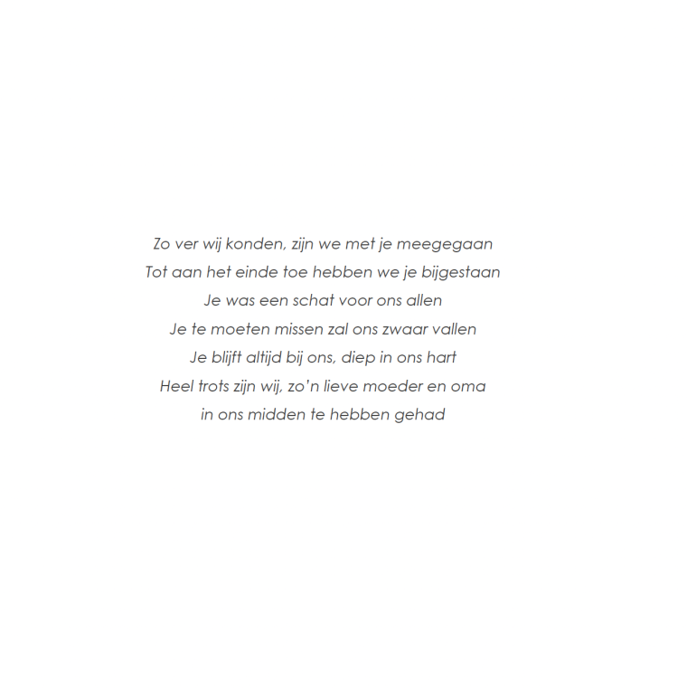 Gecondoleerd met het verlies van jullie mam, schoonmoeder en oma.