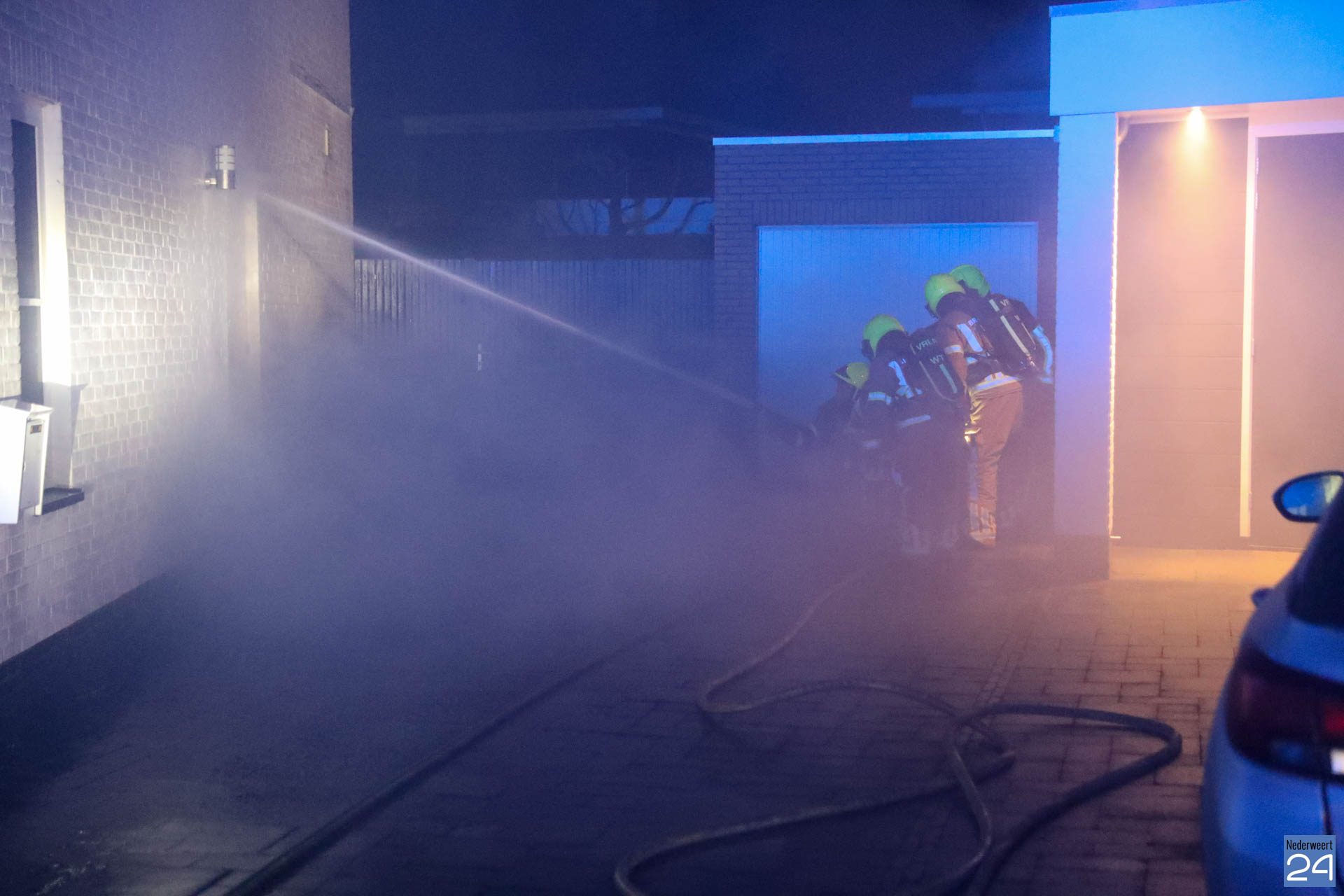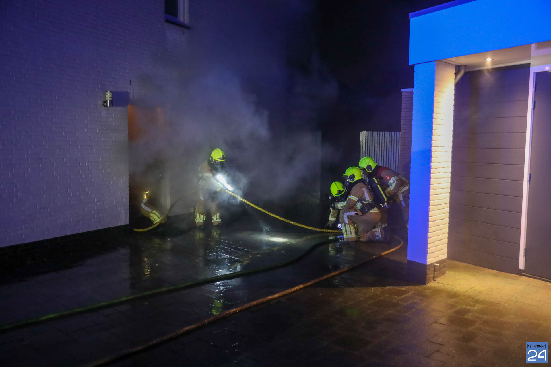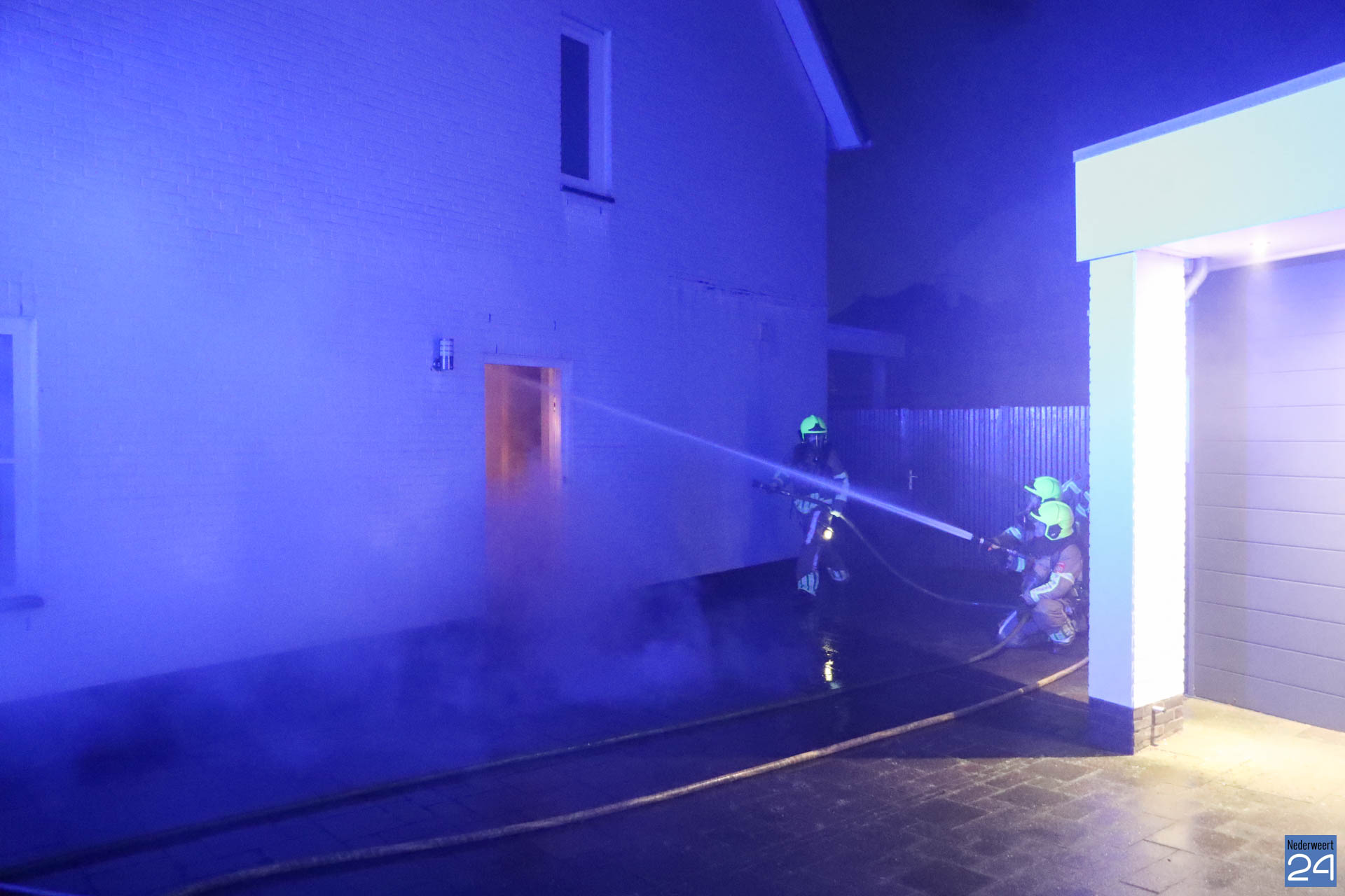 Bij aankomst van de brandweer sloegen de vlammen door de voordeur naar buiten. De brandweer van Nederweert was snel ter plaatse en had het vuur snel onder controle.