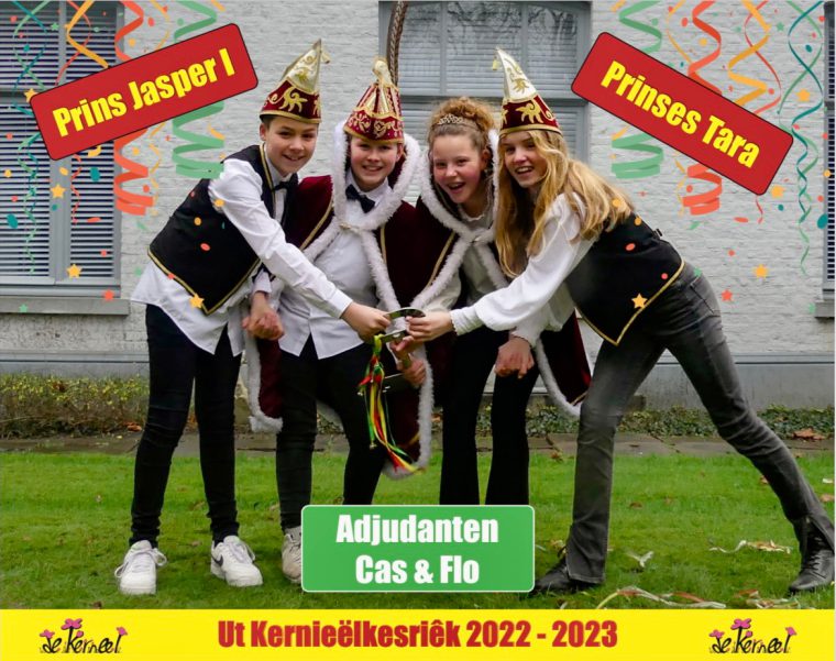 Prins Jasper en Prinses Tara mogen zich dit jaar het prinsenpaar van het kernieëlkesriêk noemen. Samen met hun top adjudanten Cas en Flo gaan ze er tijdens de vastelaovundj iets moois van maken.