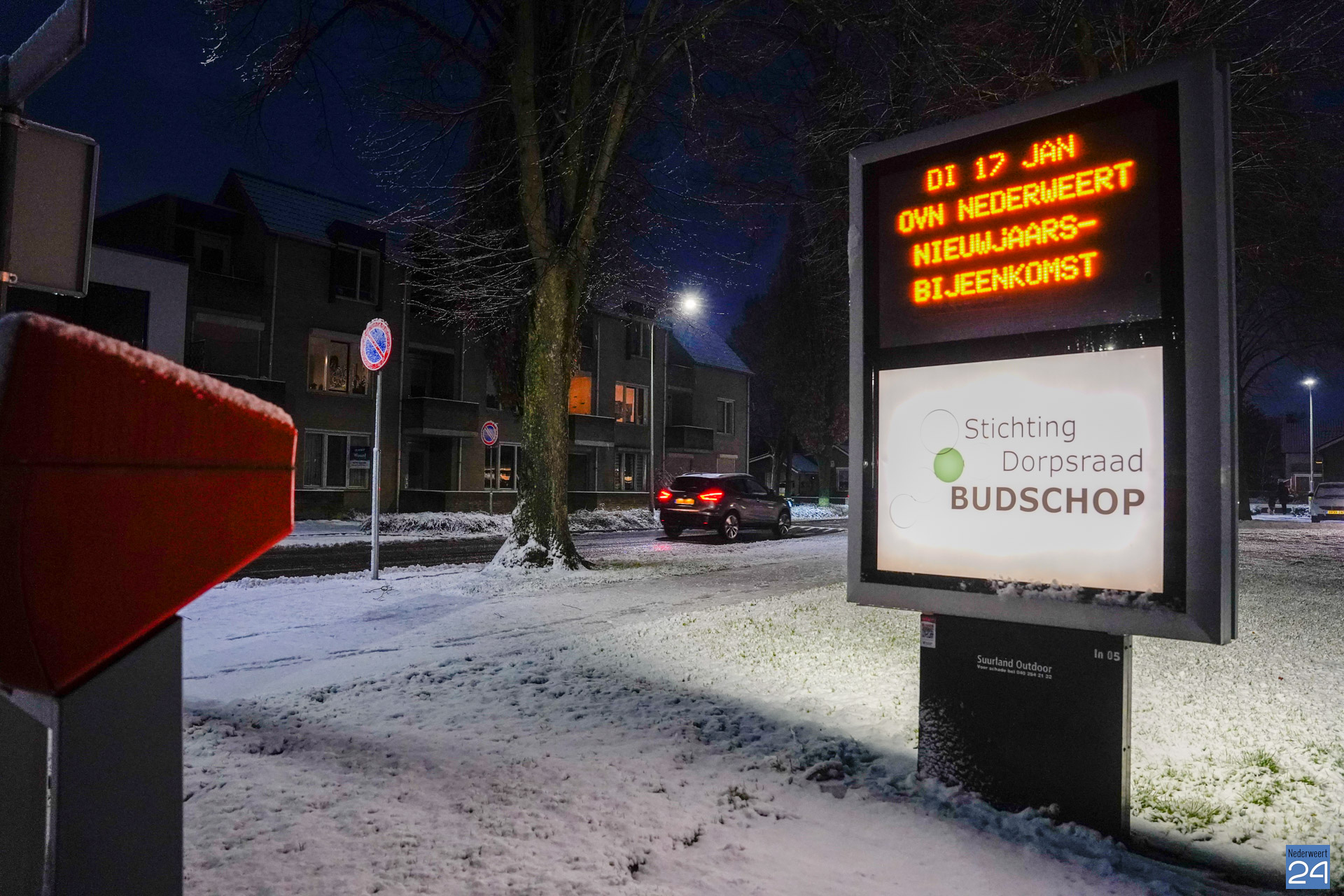 Nederweert werd vanochtend wakker onder een laag sneeuw. Dat ziet er natuurlijk erg mooi uit, en het levert de leukste plaatjes op. Het verkeer ondervind er helaas wel hinder door.
