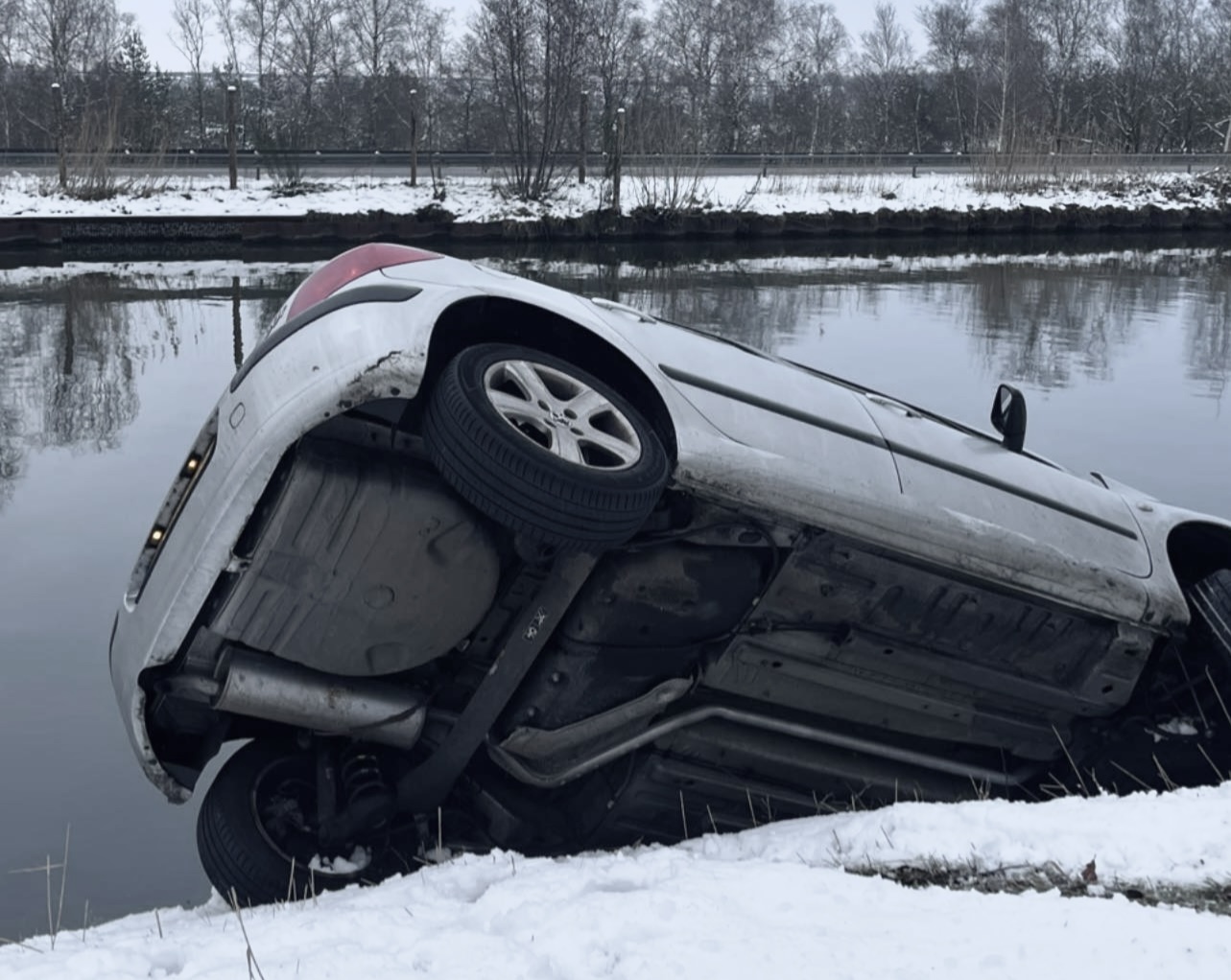 Brandweer en politie werden opgeroepen om hulp te bieden. De auto hing op het randje van de kant. Mogelijk heeft het gladde wegdek een rol gespeeld in de toedracht van het incident.