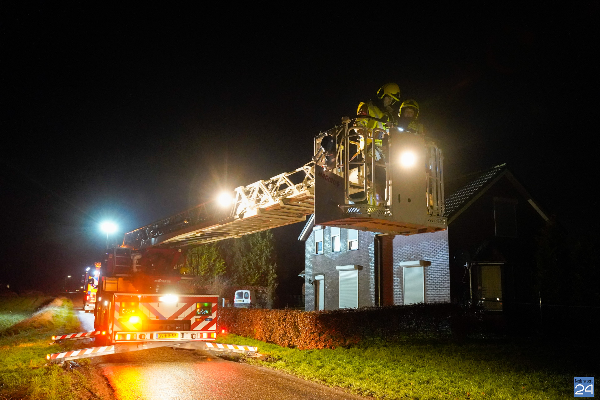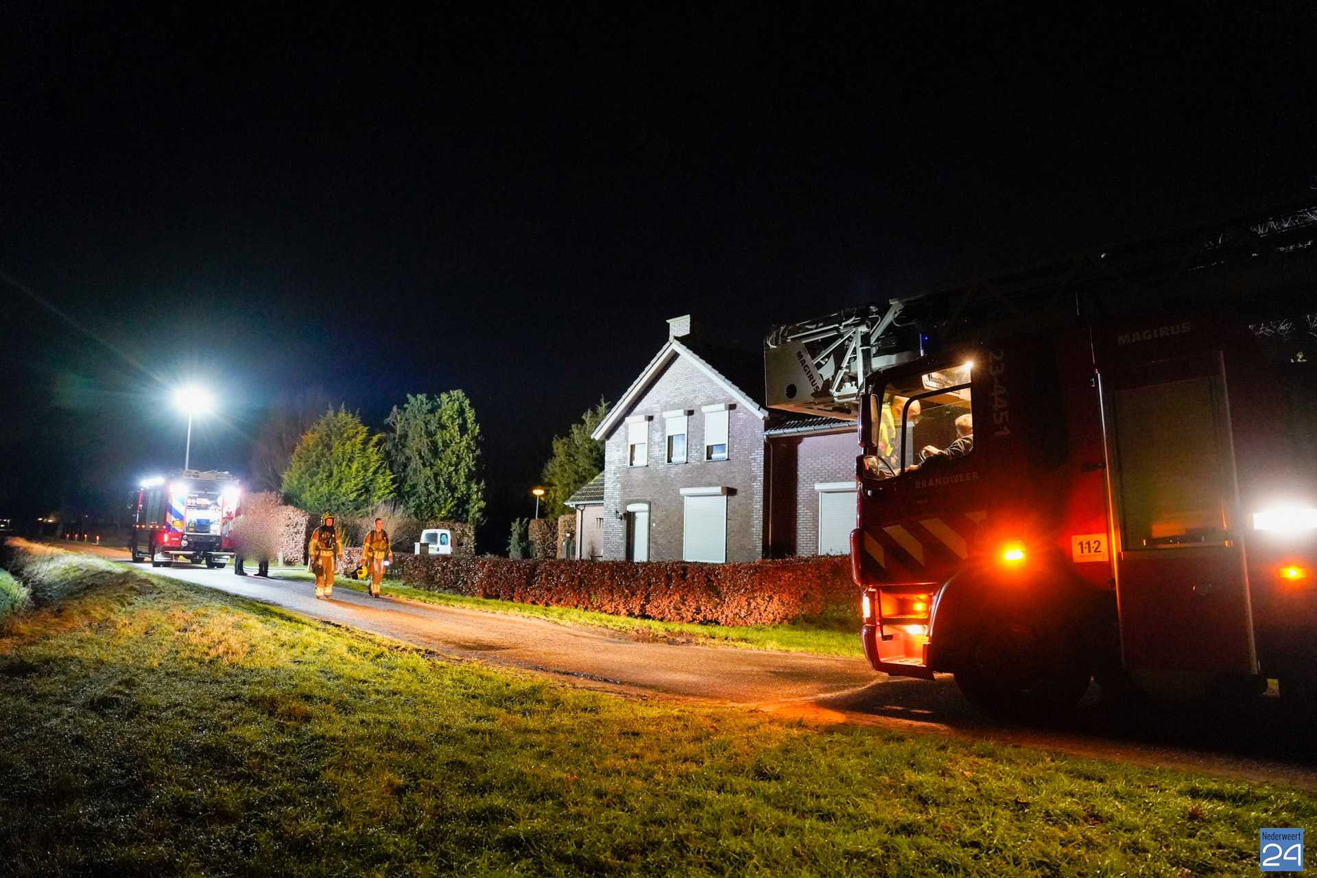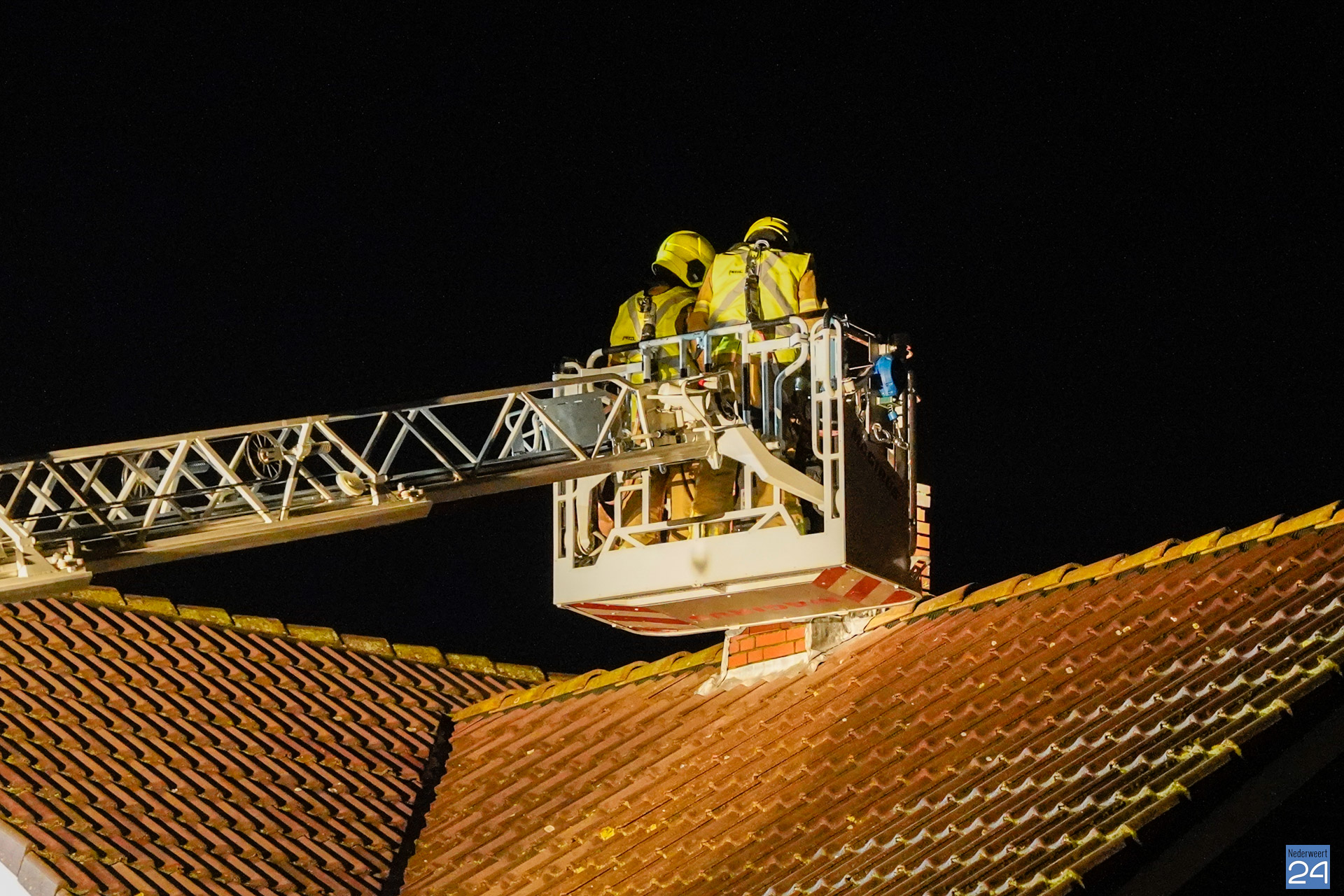 De brandweer van Nederweert en Weert kwamen met een blusvoertuig en ladderwagen ter plaatse. Ook de politie werd aangestuurd en zorgde ervoor dat de brandweer veilig kon werken door de straat af te zetten. De brandweer heeft het schoorsteenkanaal geïnspecteerd. Van brand was geen sprake.