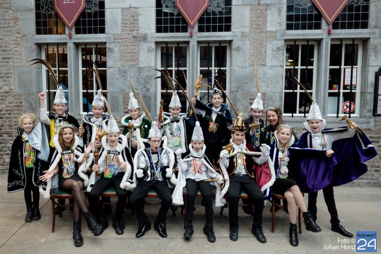 De Jeugdprinsenparen uit het Weerterland mochten vandaag samen op de foto. Om 13.30 uur verzamelden iedereen zich bij De Taverne in de Muntpassage.