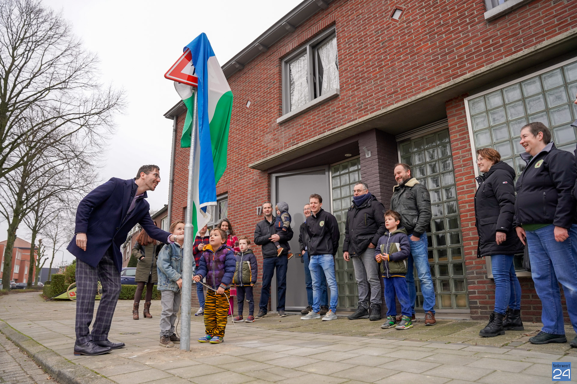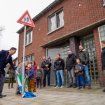Op zaterdag 11 februari onthulde wethouder Franssen, samen met een aantal leden van Jong Nederland Budschop het waarschuwingsbord ‘spelende kinderen’.