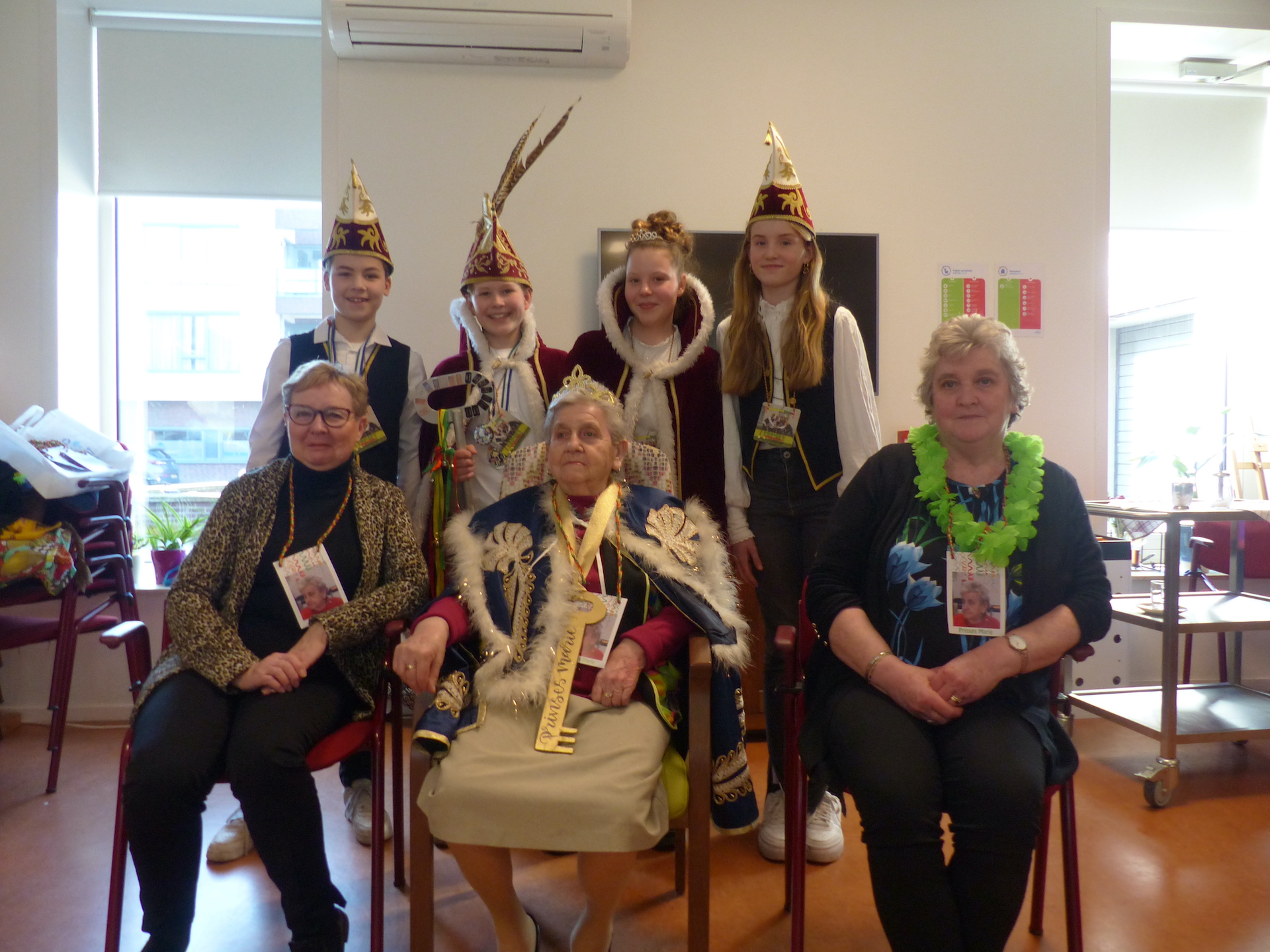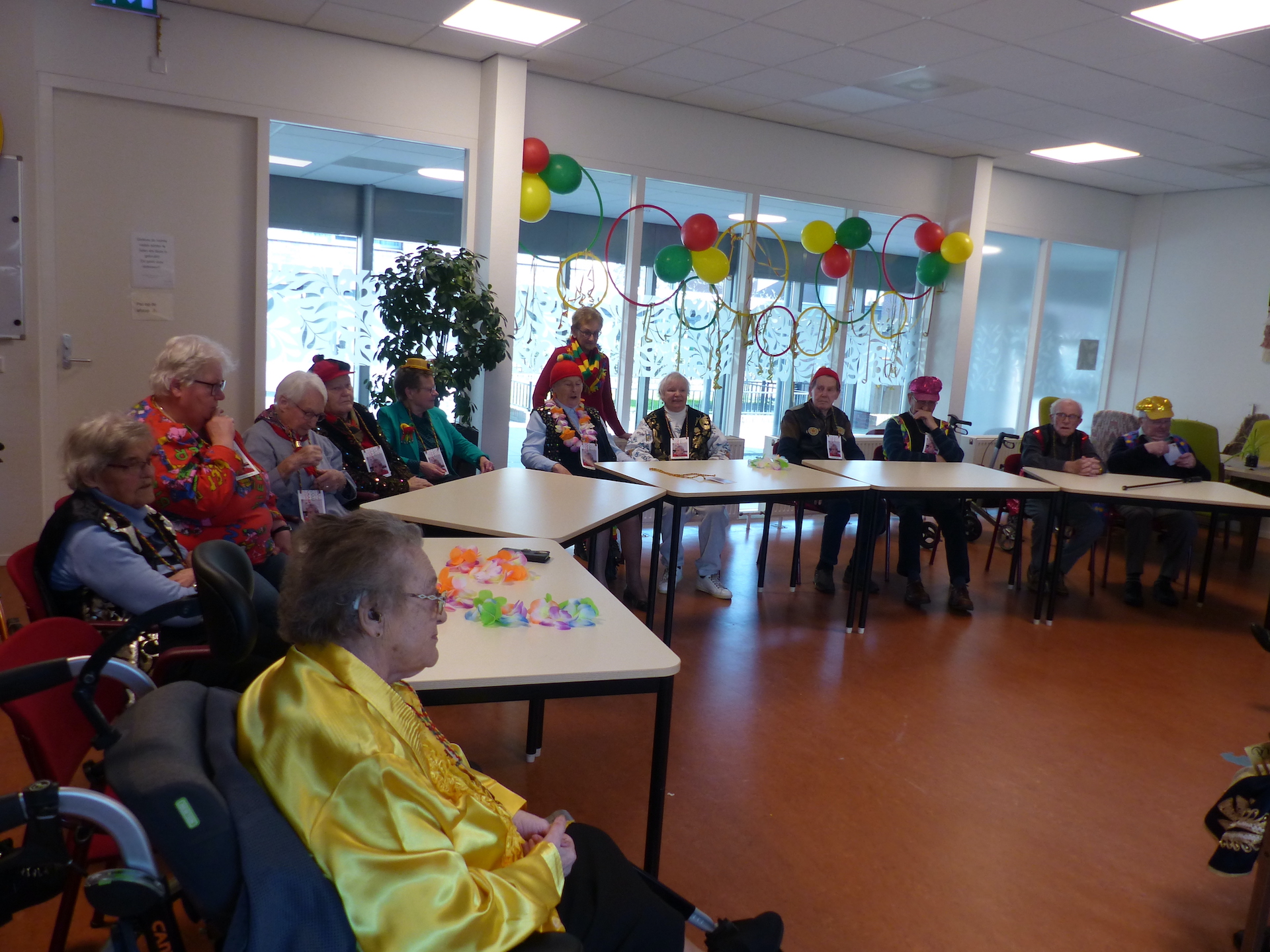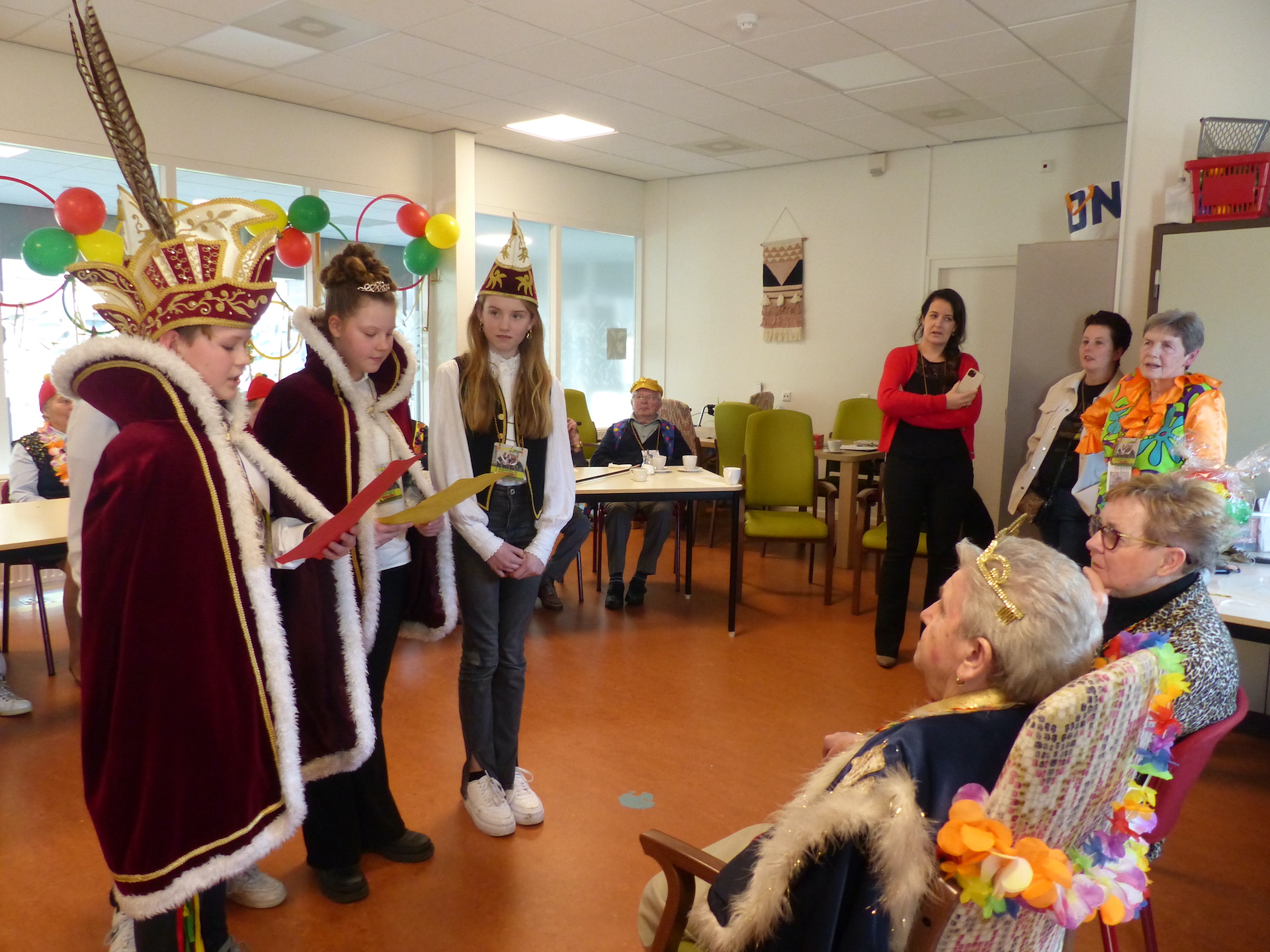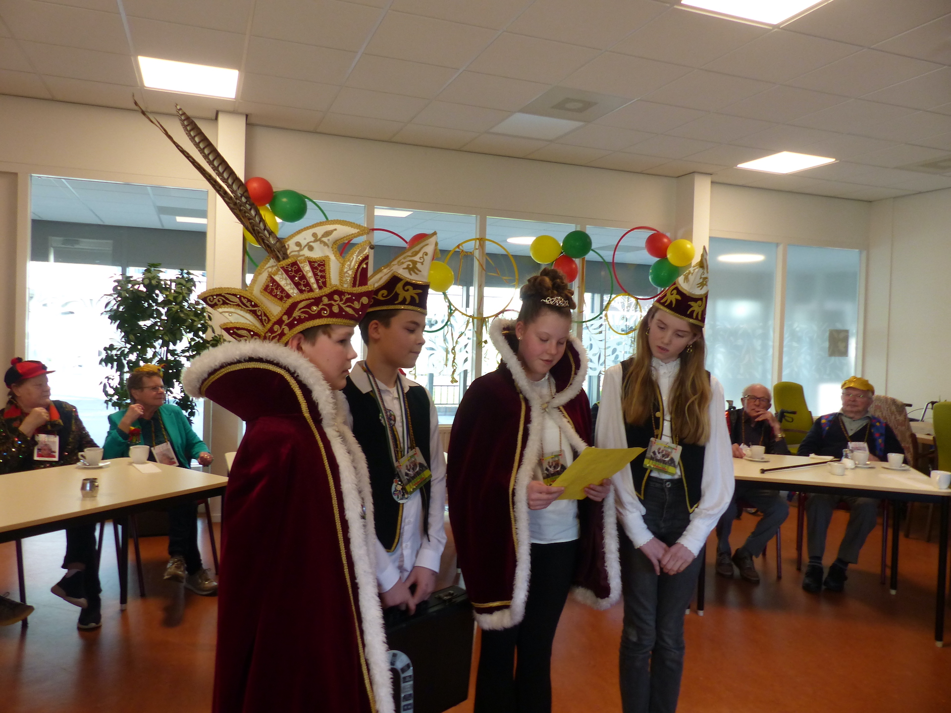 De vrijwilligers hadden gezorgd voor mooie proclamaties. De inwendige mens kwam niets te kort. Er was Kerboët en Nonnevotte, heerlijk! Als klap op de vuurpijl kwam de jeugdprins en princes van de Kerneel, met hun adjudanten op bezoek. Zij lieten zien hoe de jeugd van tegenwoordig vastelaovundj viert. Er werd gehost en gesprongen en natuurlijk een polonaise gelopen. De deelnemers en vrijwilligers lieten met de polonaise geen verstek.
