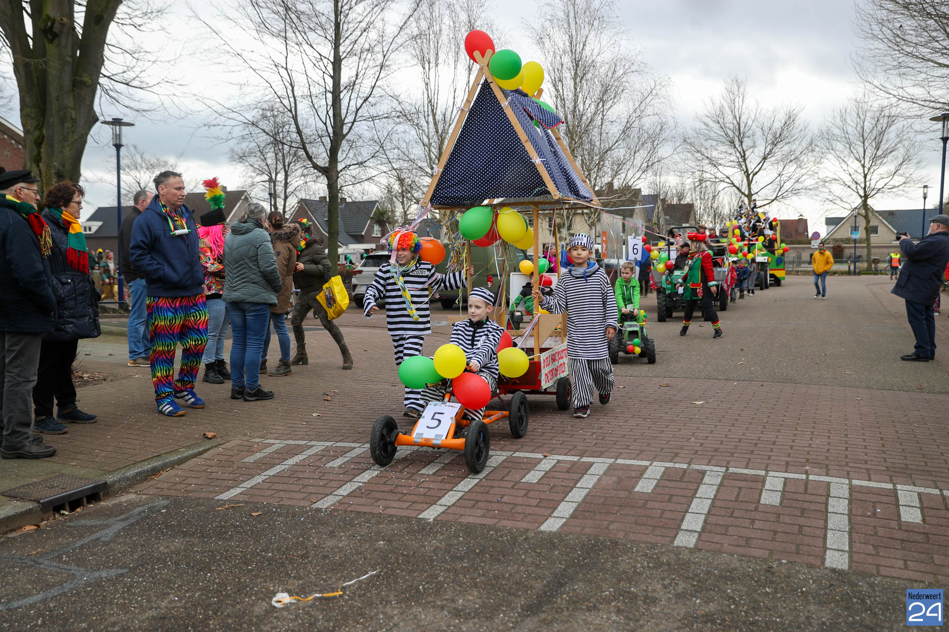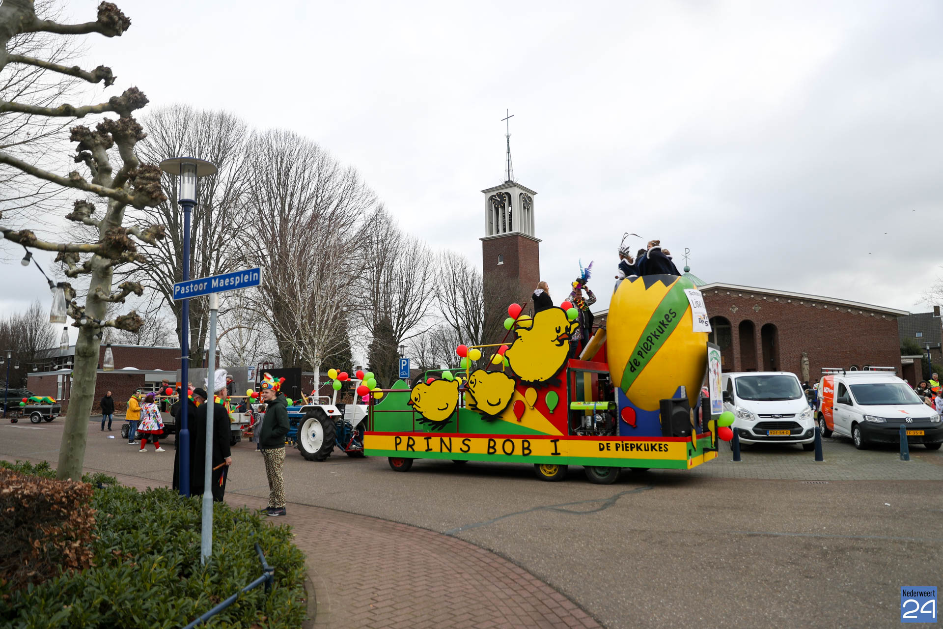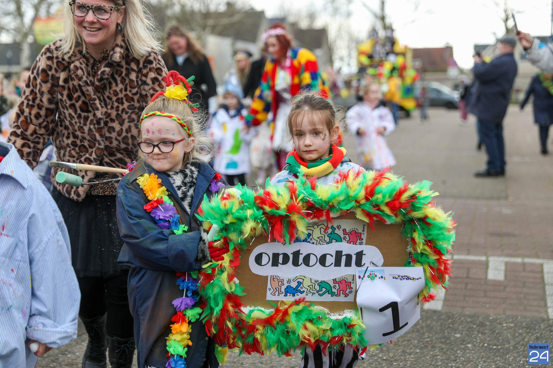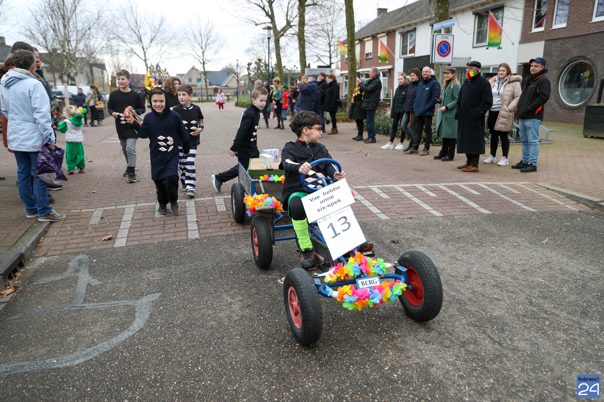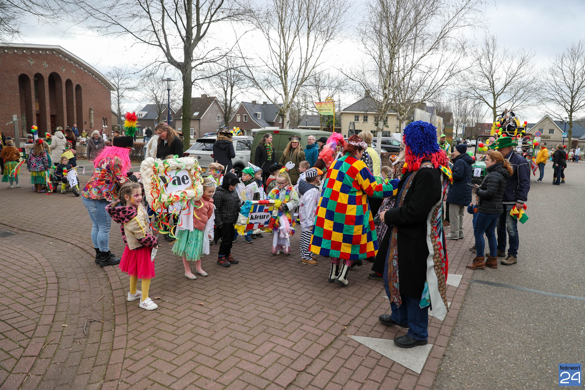 Even na 11:00 uur vertrok de stoet vanaf het Pastoor Maesplein. Een vrolijke, kleurrijke kinderstoet liep vol gezelligheid door de straten van Nederweert-Eind. Zowel de kinderen van basisschool De Tweesprong als de leraren liepen vol enthousiasme mee met de optocht. Na de optocht volgde een hosmiddag op school.