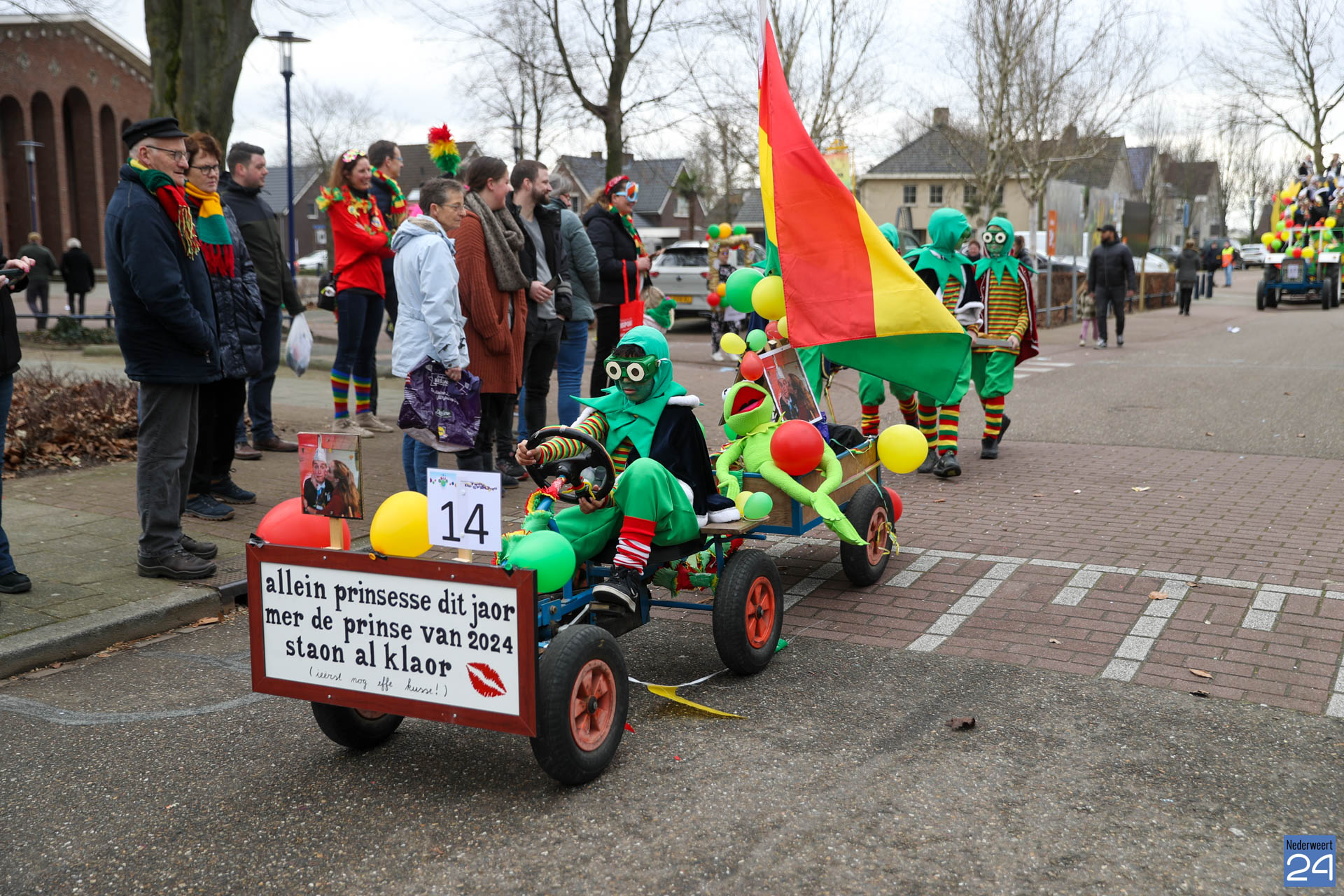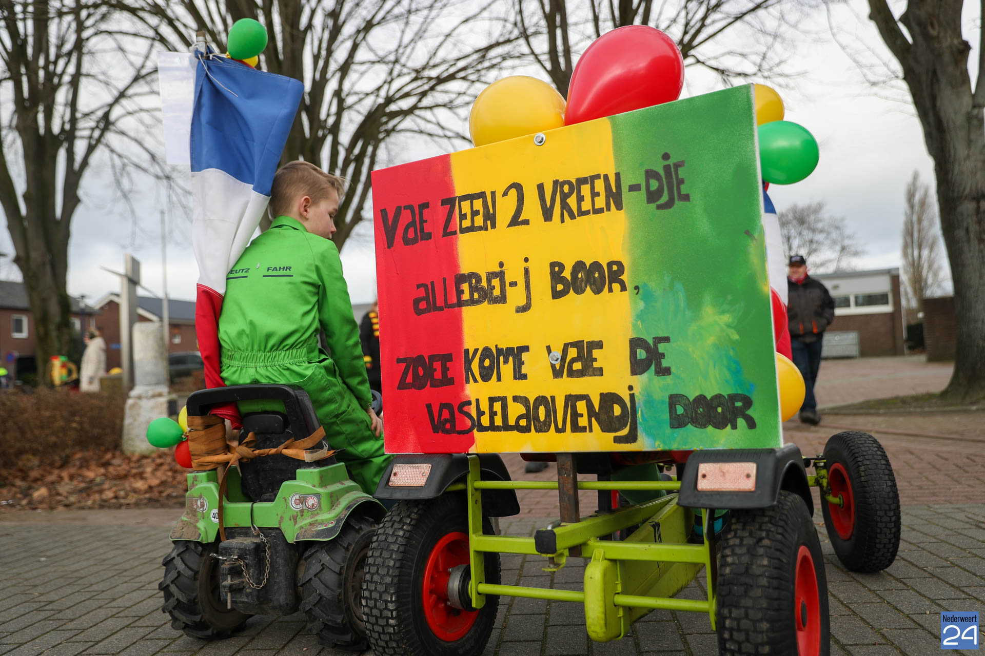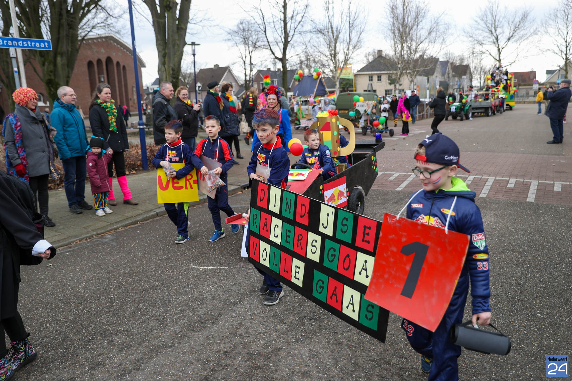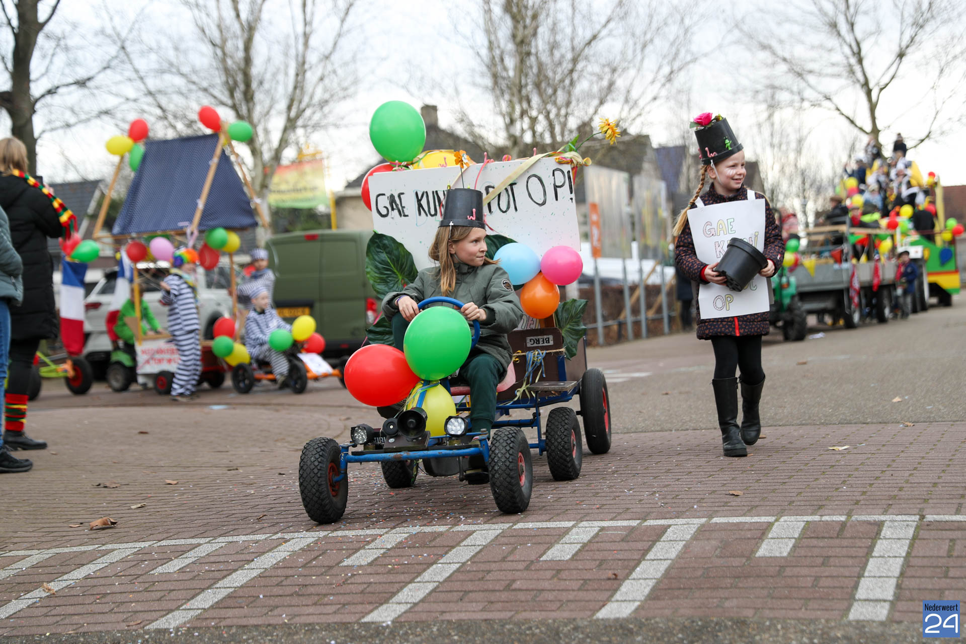 Even na 11:00 uur vertrok de stoet vanaf het Pastoor Maesplein. Een vrolijke, kleurrijke kinderstoet liep vol gezelligheid door de straten van Nederweert-Eind. Zowel de kinderen van basisschool De Tweesprong als de leraren liepen vol enthousiasme mee met de optocht. Na de optocht volgde een hosmiddag op school.