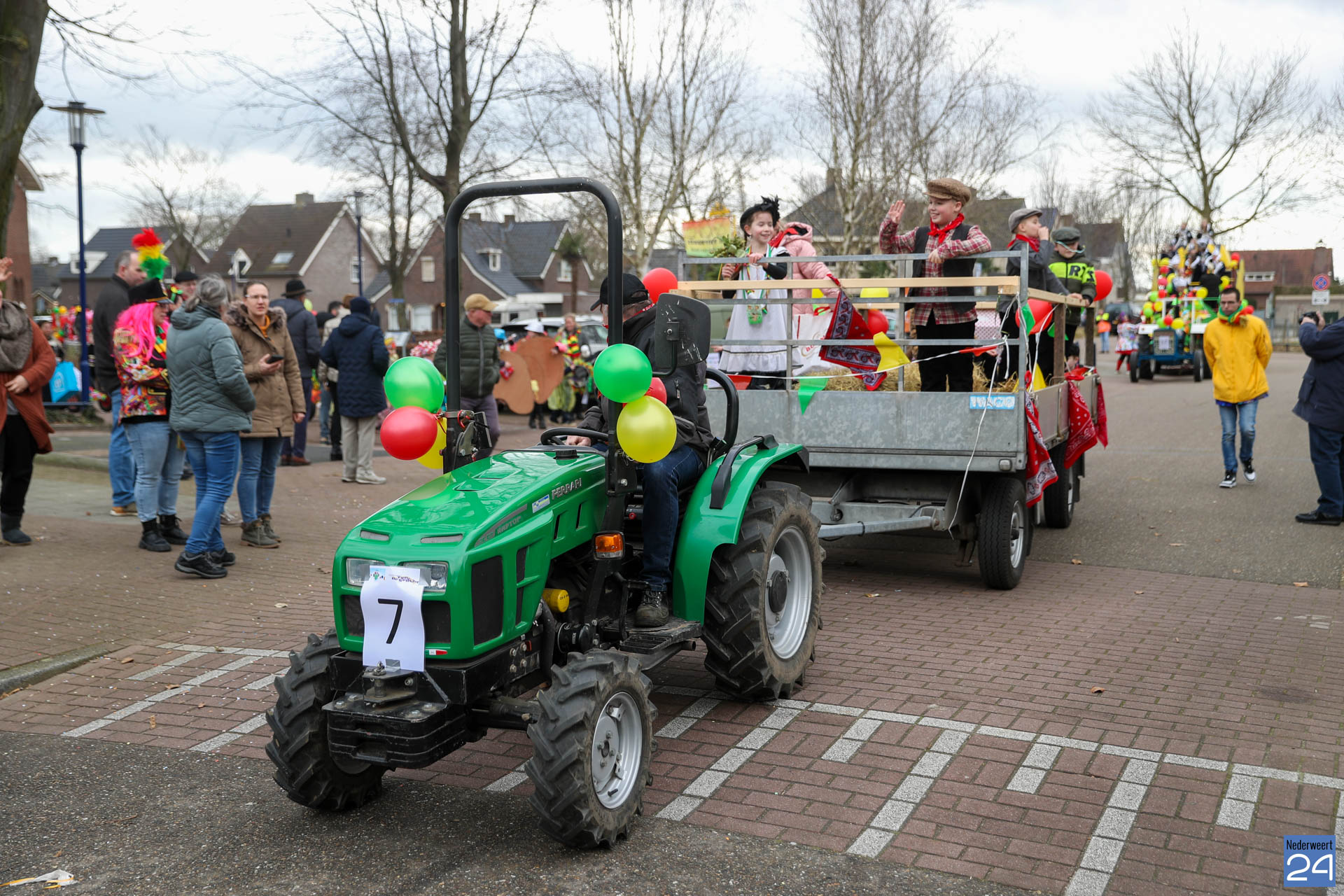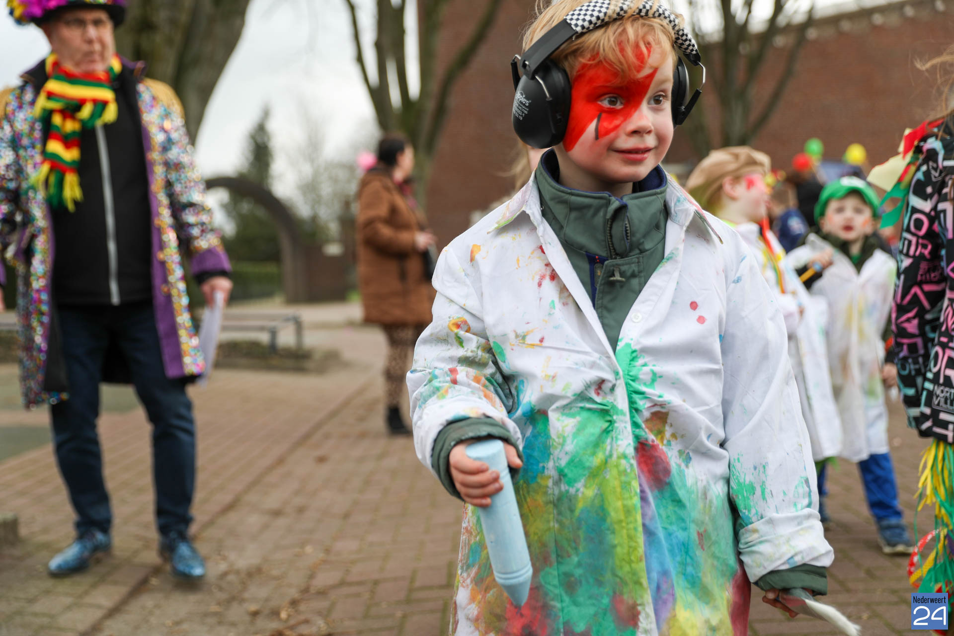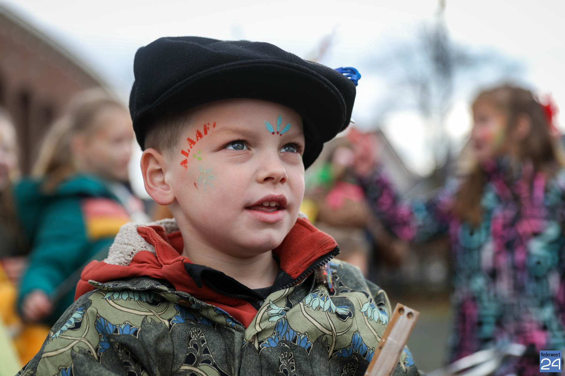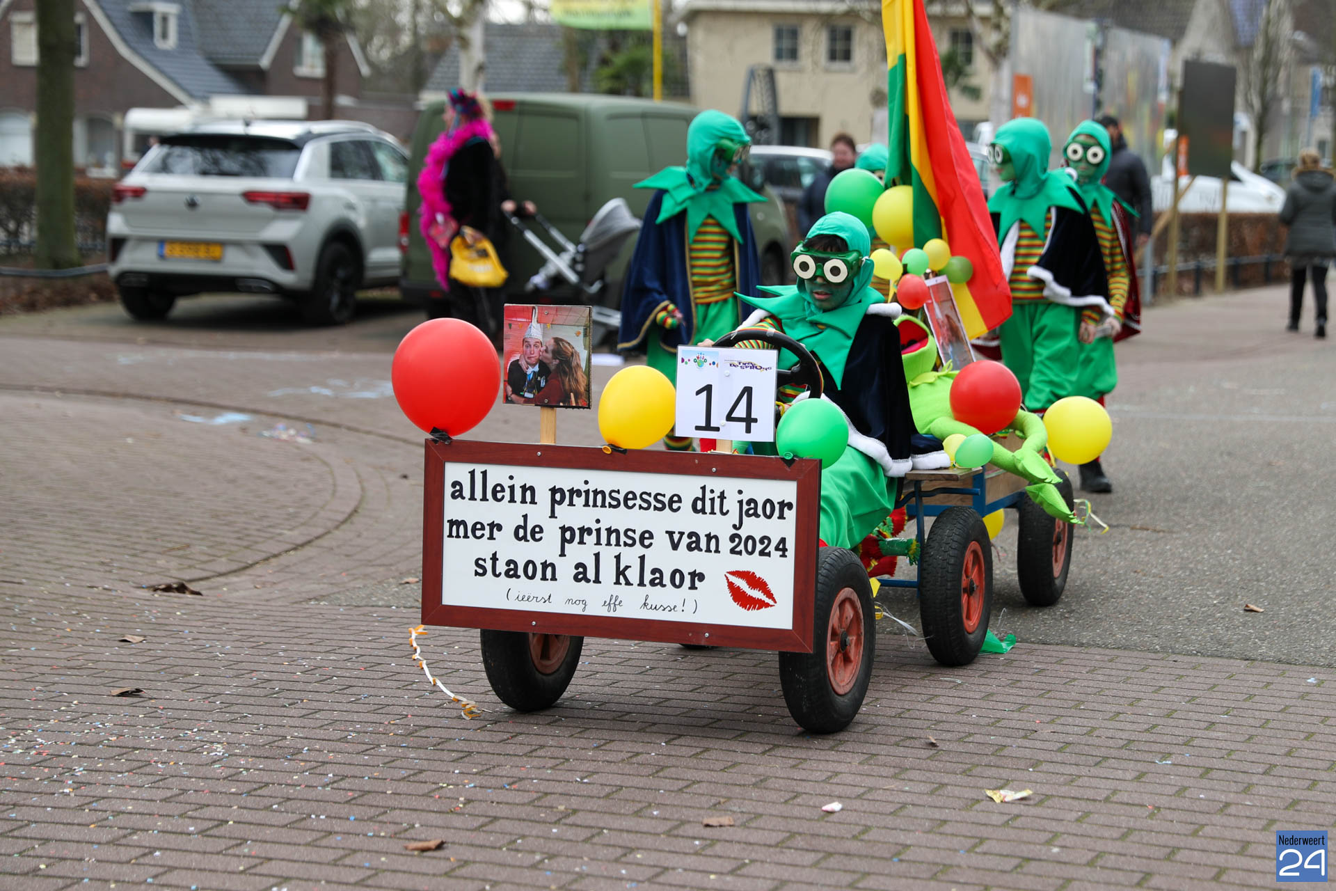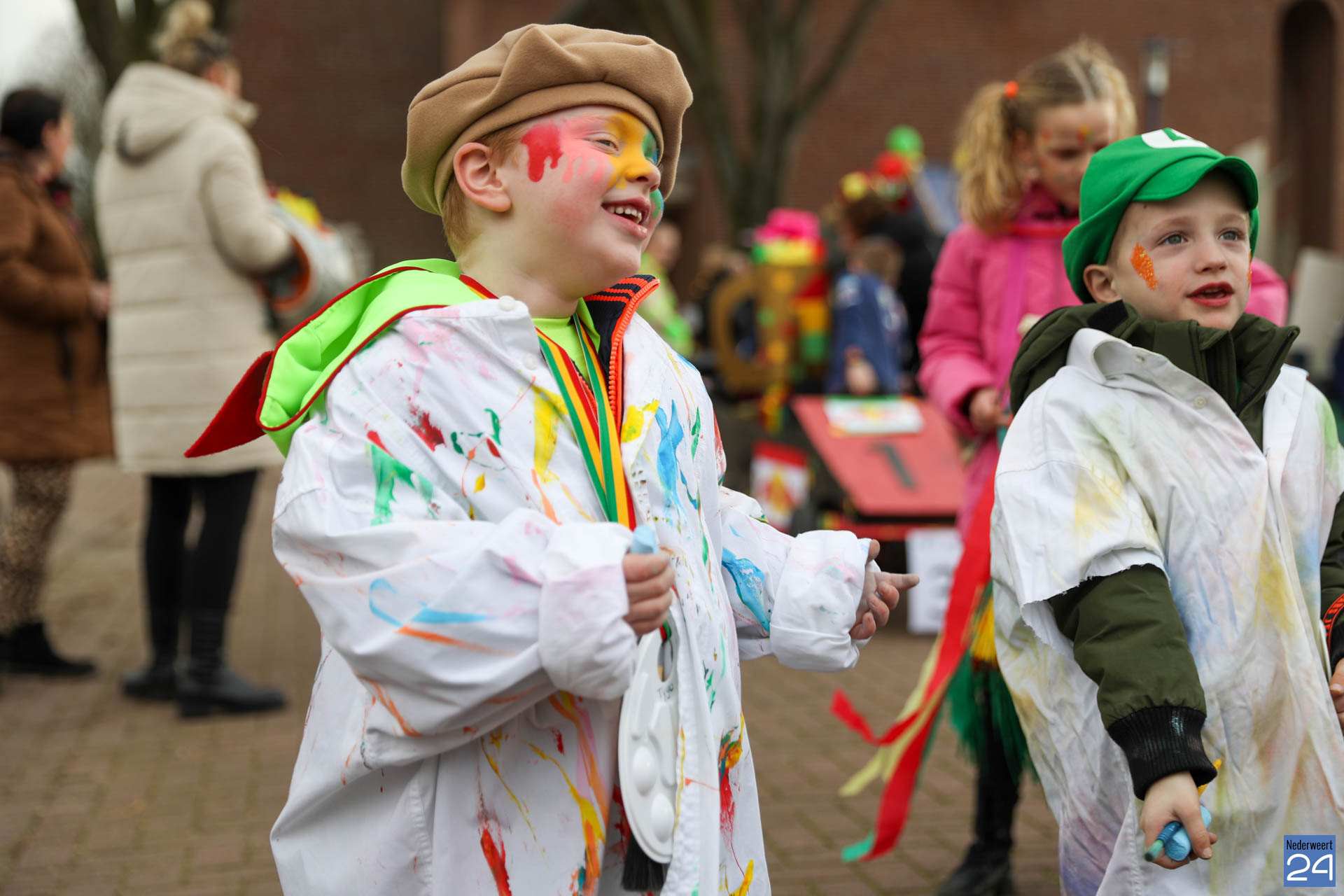 Even na 11:00 uur vertrok de stoet vanaf het Pastoor Maesplein. Een vrolijke, kleurrijke kinderstoet liep vol gezelligheid door de straten van Nederweert-Eind. Zowel de kinderen van basisschool De Tweesprong als de leraren liepen vol enthousiasme mee met de optocht. Na de optocht volgde een hosmiddag op school.