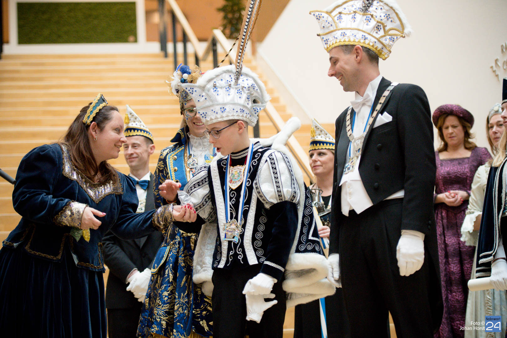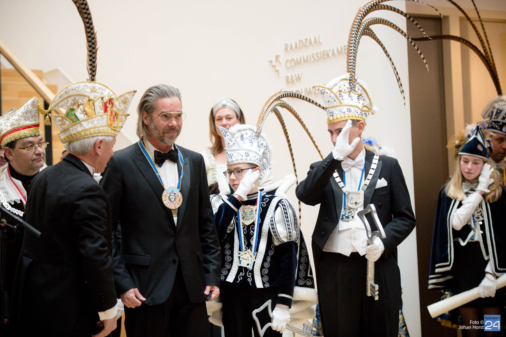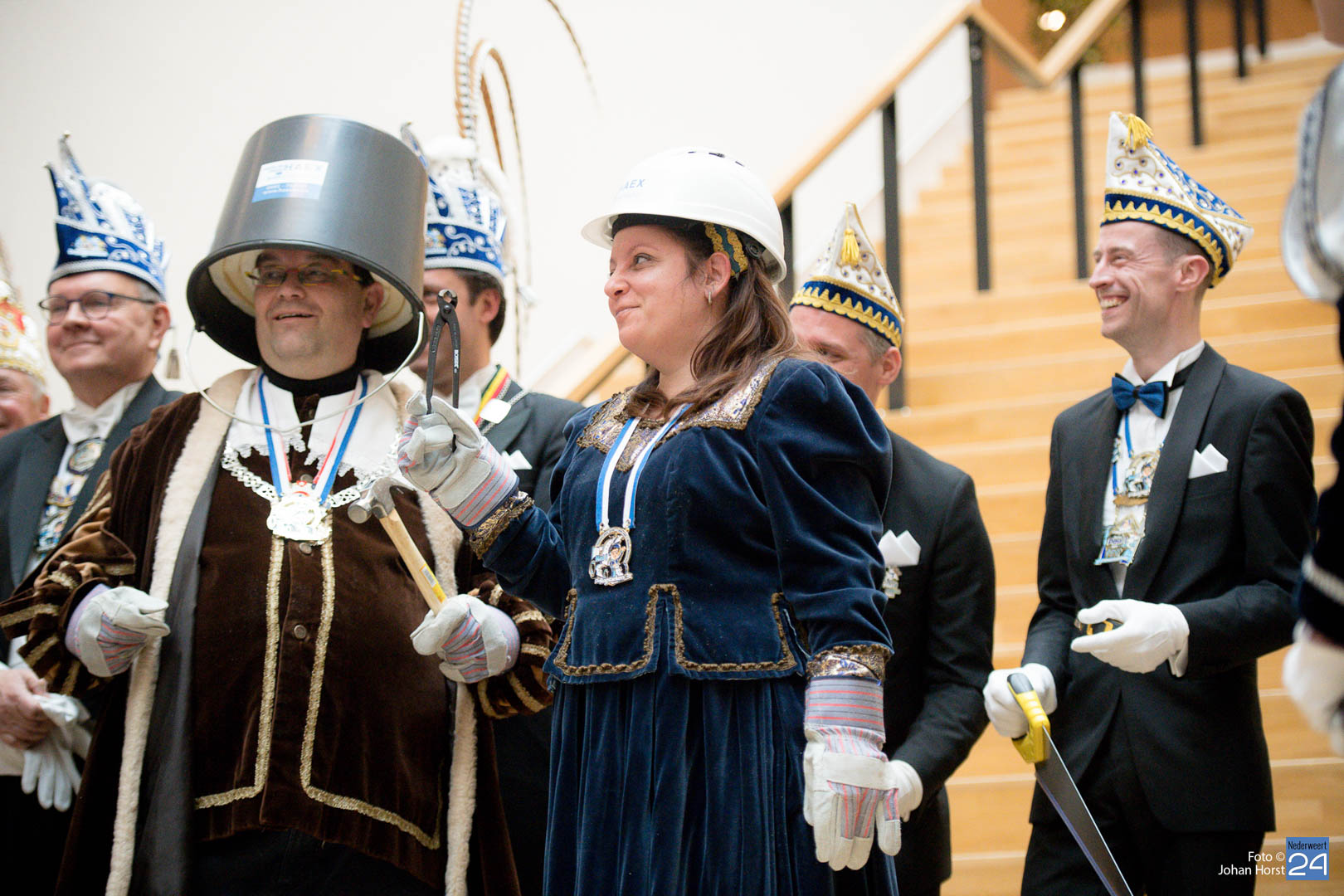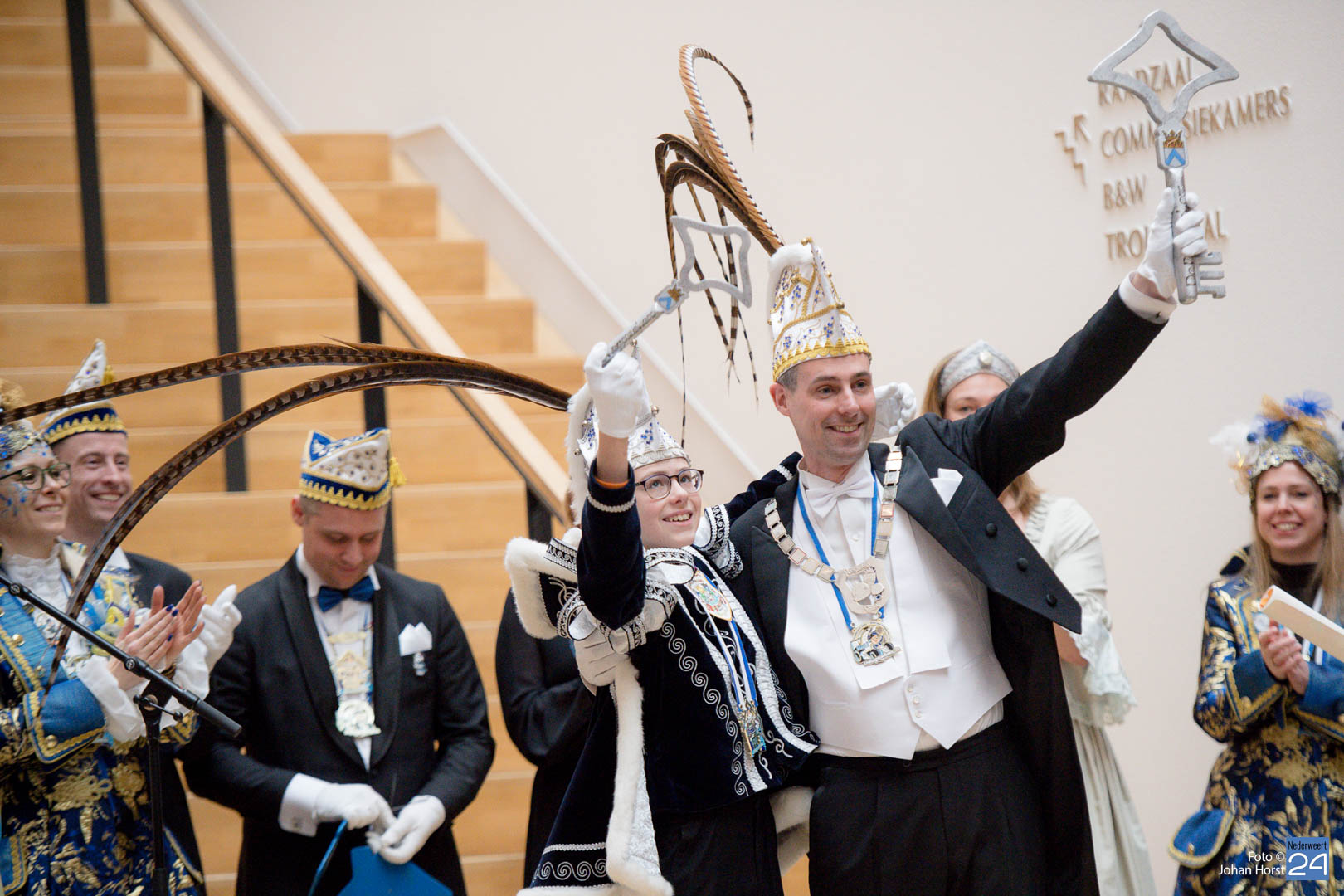 Waar was de raad gebleven? Bijna onherkenbaar kwamen ze binnen, zomaar een tijdreis naar de Graaf van Horne. De stemming zat er al snel in de overdracht kon plaats vinden. De sleutels werden overgedragen van de raad aan de prinsen. Die hadden ook wat bedacht voor de raadsleden. In deze dagen kunnen zij wel aan de slag op de bouw. En over bouwen gesproken, er was nog een grote wens voor de Weerter carnavalsbouwers. De prins bracht deze wens over aan de raad: een mooie nieuwe bouwhal zag hij wel zitten, voor een aannemer hoeven ze uiteraard niet ver te zoeken.