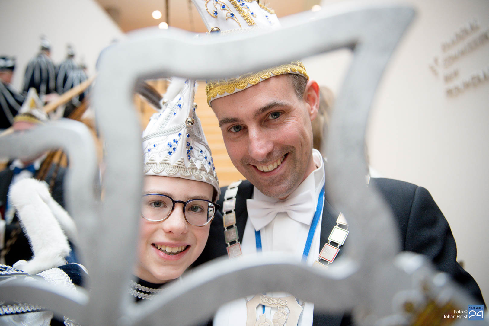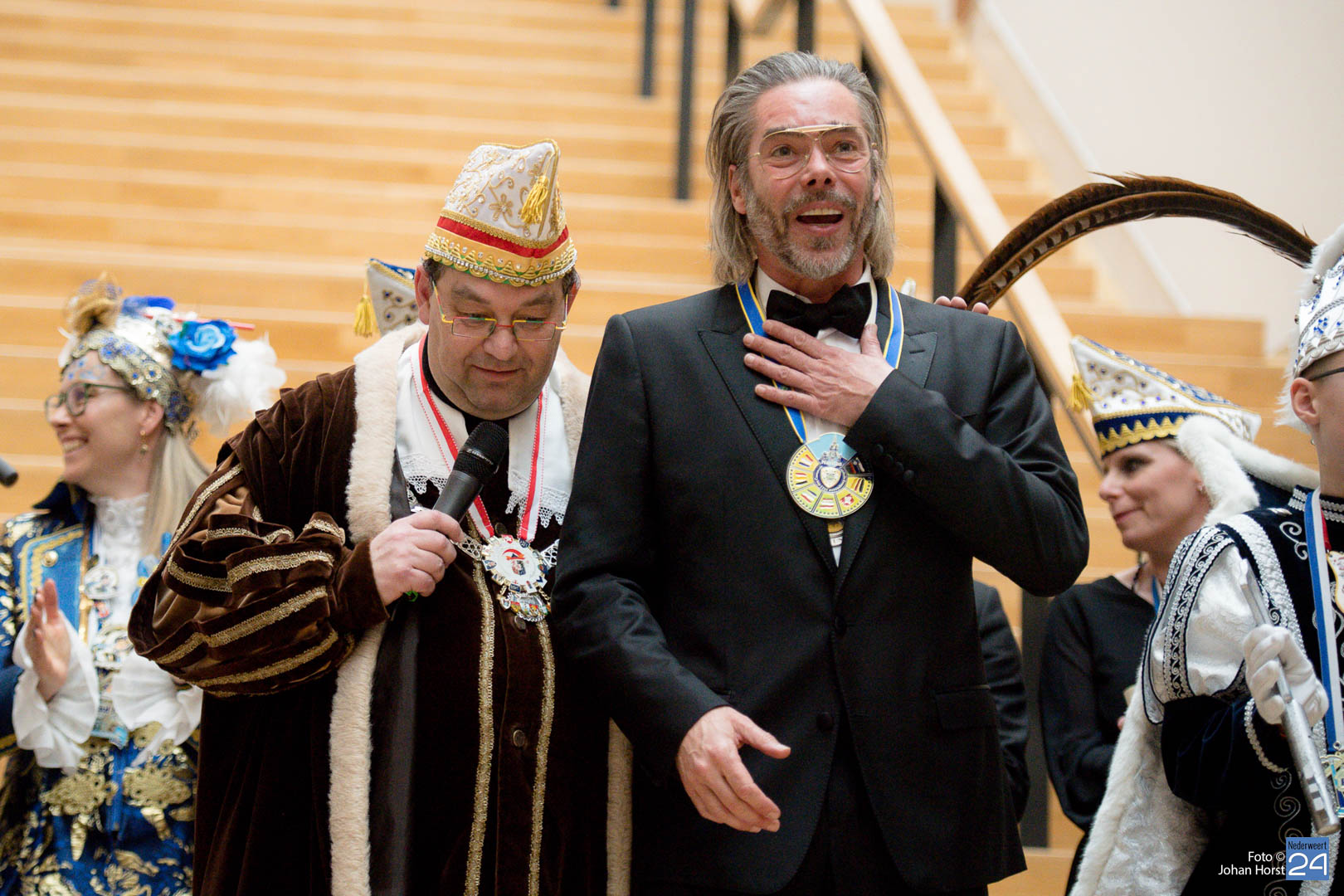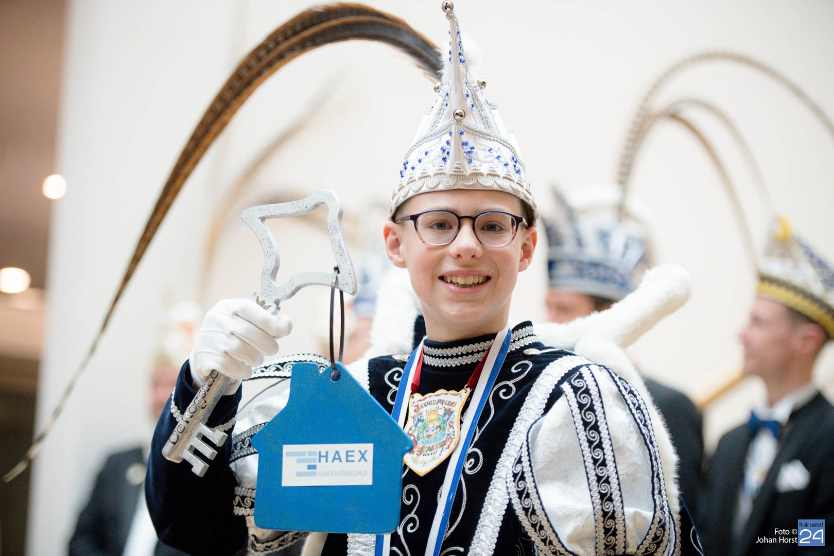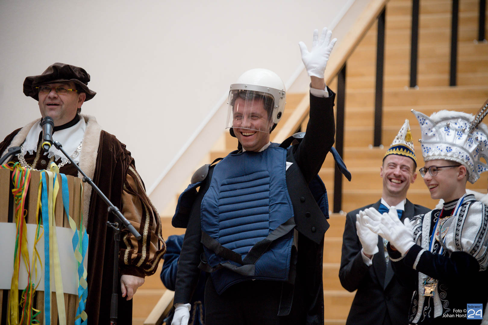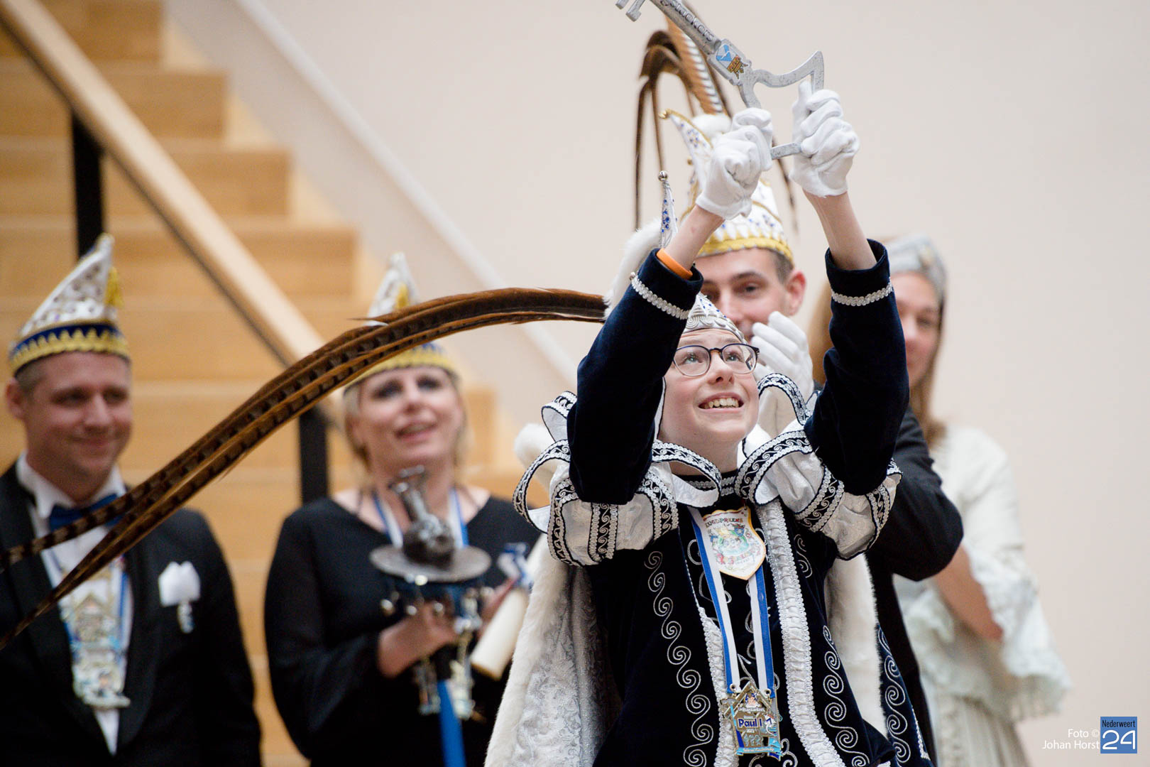 Waar was de raad gebleven? Bijna onherkenbaar kwamen ze binnen, zomaar een tijdreis naar de Graaf van Horne. De stemming zat er al snel in de overdracht kon plaats vinden. De sleutels werden overgedragen van de raad aan de prinsen. Die hadden ook wat bedacht voor de raadsleden. In deze dagen kunnen zij wel aan de slag op de bouw. En over bouwen gesproken, er was nog een grote wens voor de Weerter carnavalsbouwers. De prins bracht deze wens over aan de raad: een mooie nieuwe bouwhal zag hij wel zitten, voor een aannemer hoeven ze uiteraard niet ver te zoeken.