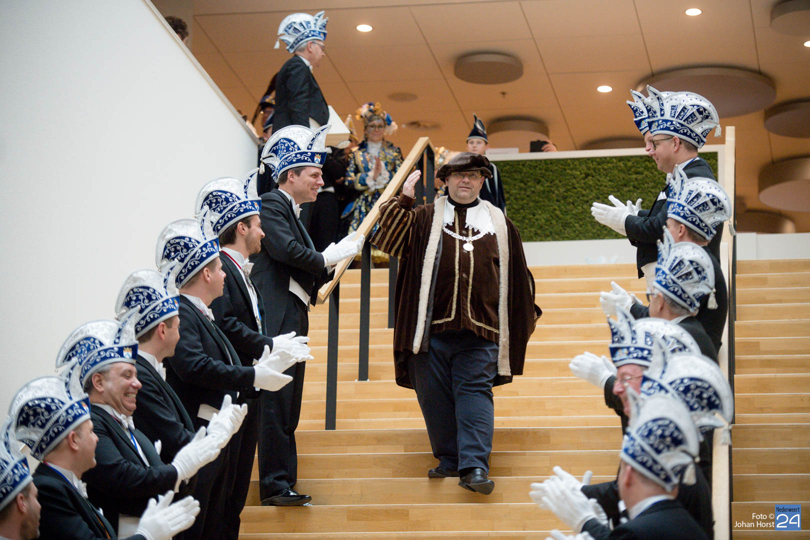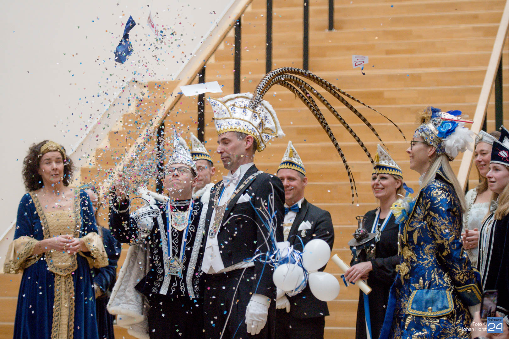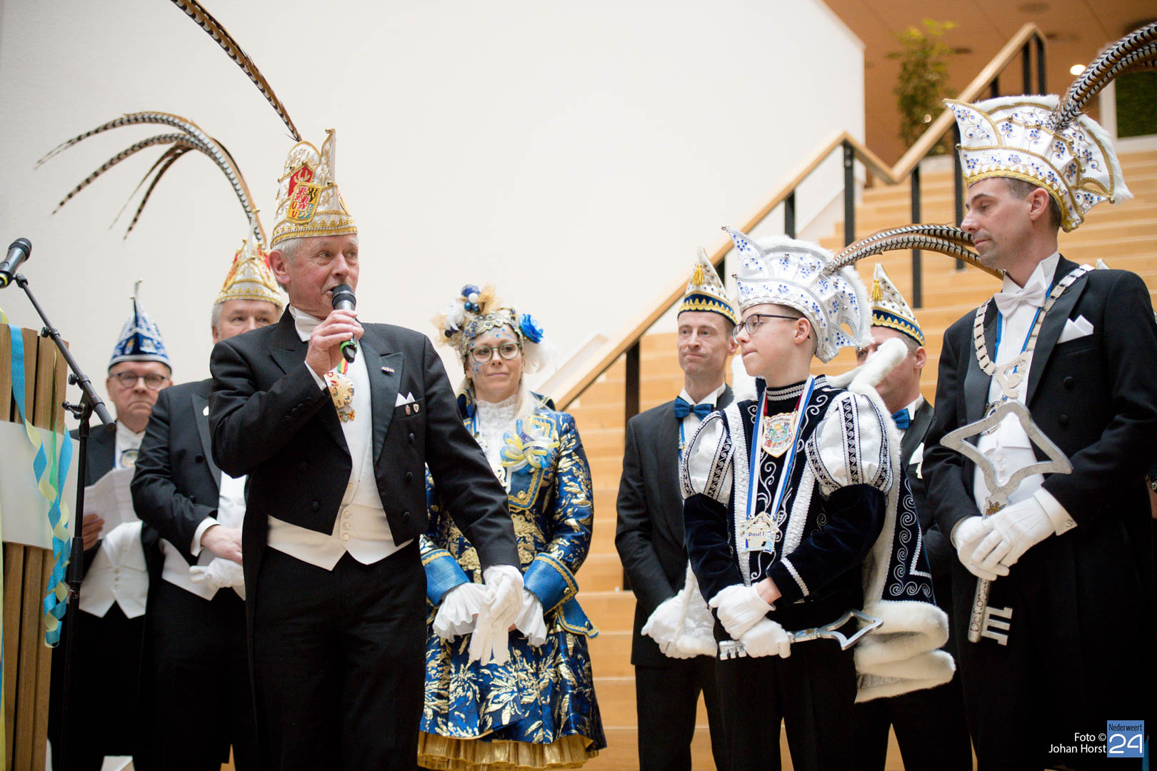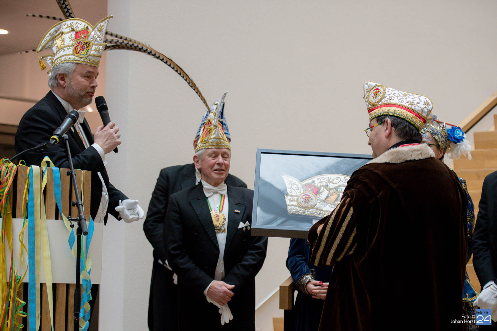 Waar was de raad gebleven? Bijna onherkenbaar kwamen ze binnen, zomaar een tijdreis naar de Graaf van Horne. De stemming zat er al snel in de overdracht kon plaats vinden. De sleutels werden overgedragen van de raad aan de prinsen. Die hadden ook wat bedacht voor de raadsleden. In deze dagen kunnen zij wel aan de slag op de bouw. En over bouwen gesproken, er was nog een grote wens voor de Weerter carnavalsbouwers. De prins bracht deze wens over aan de raad: een mooie nieuwe bouwhal zag hij wel zitten, voor een aannemer hoeven ze uiteraard niet ver te zoeken.