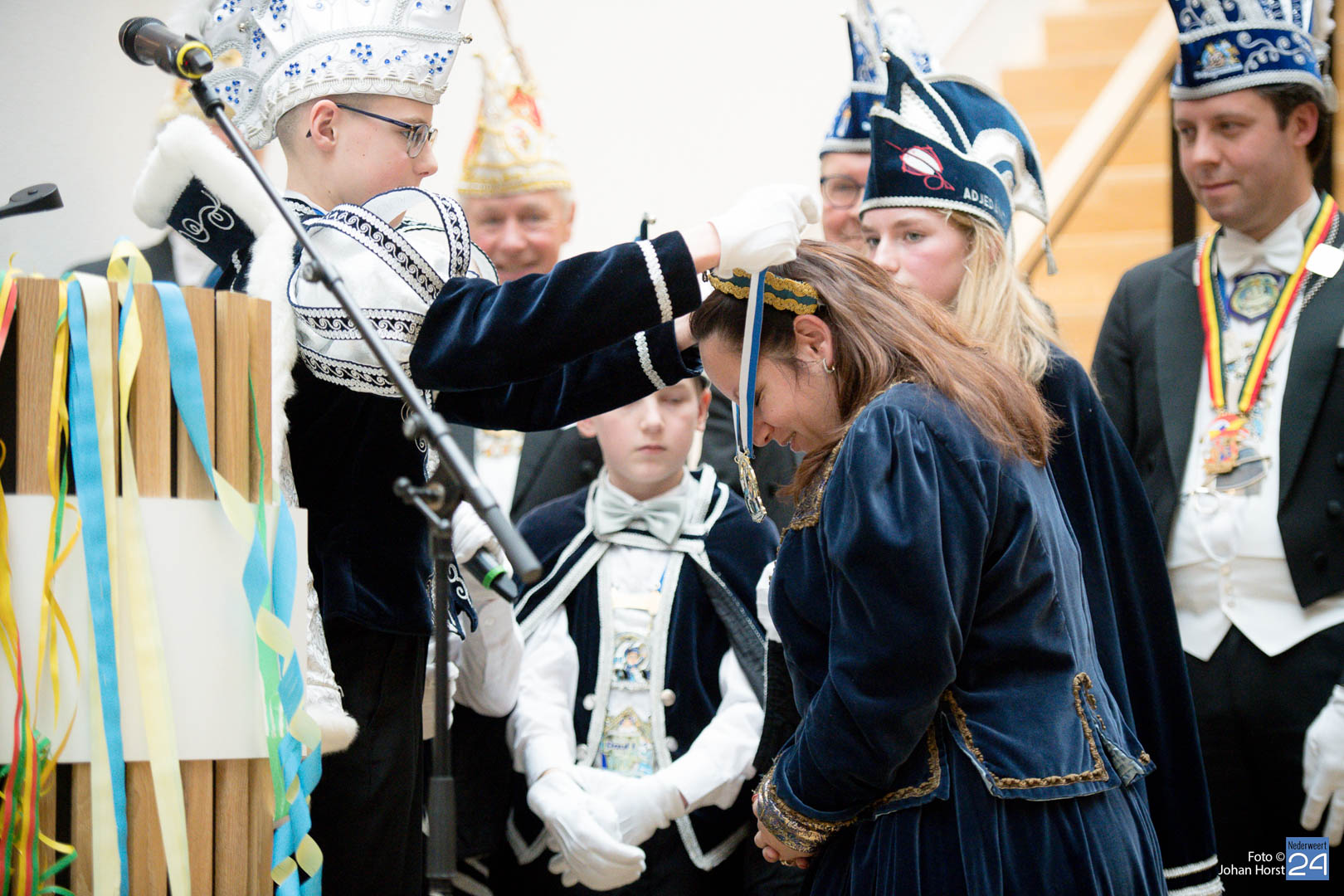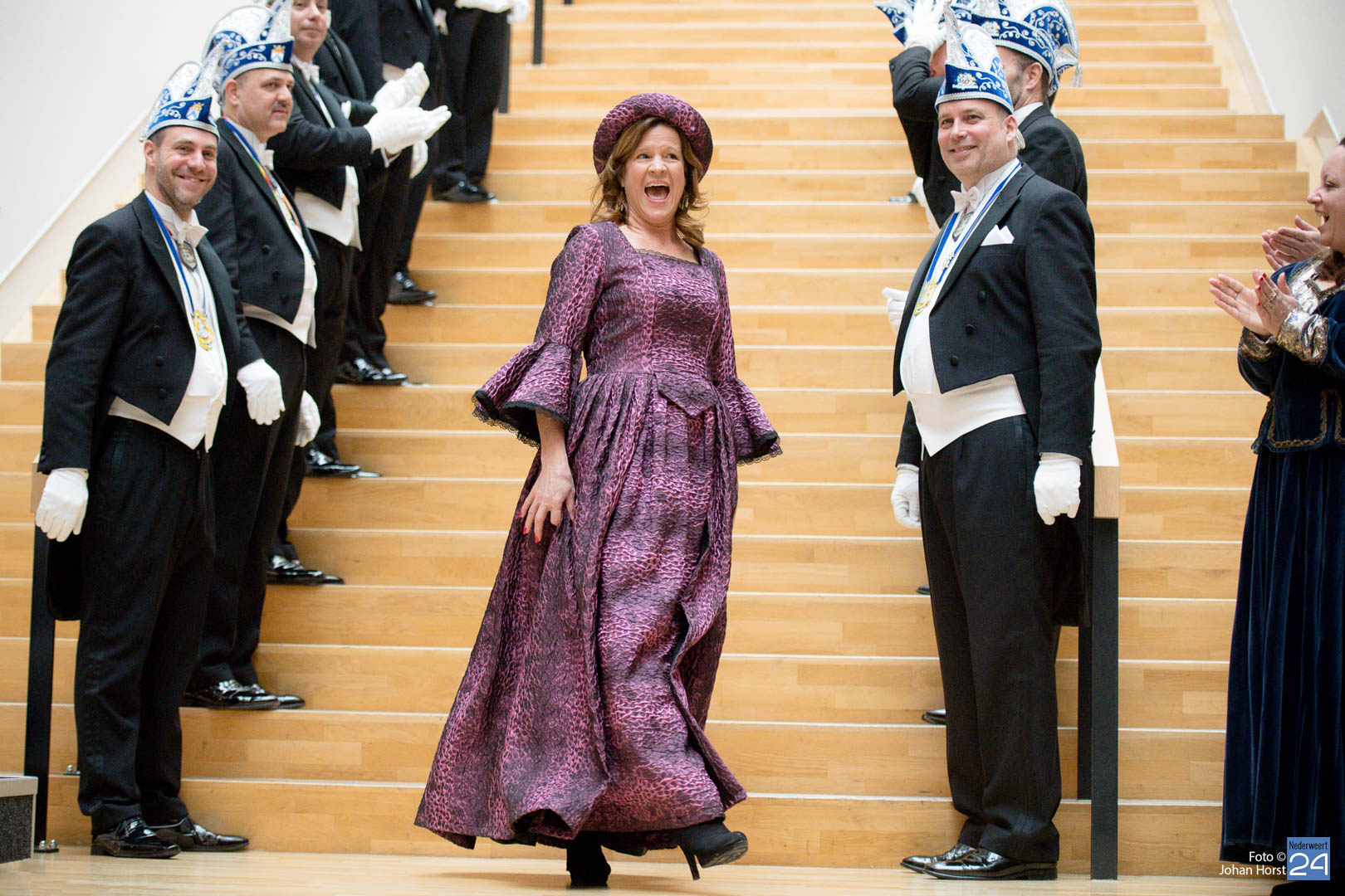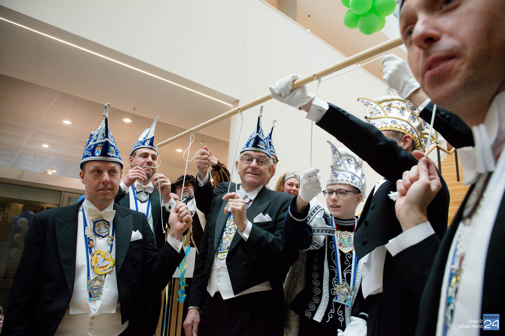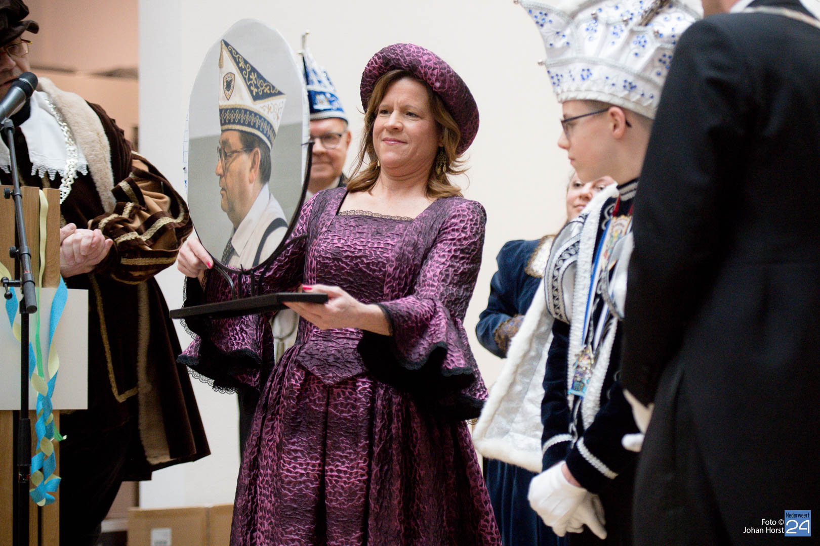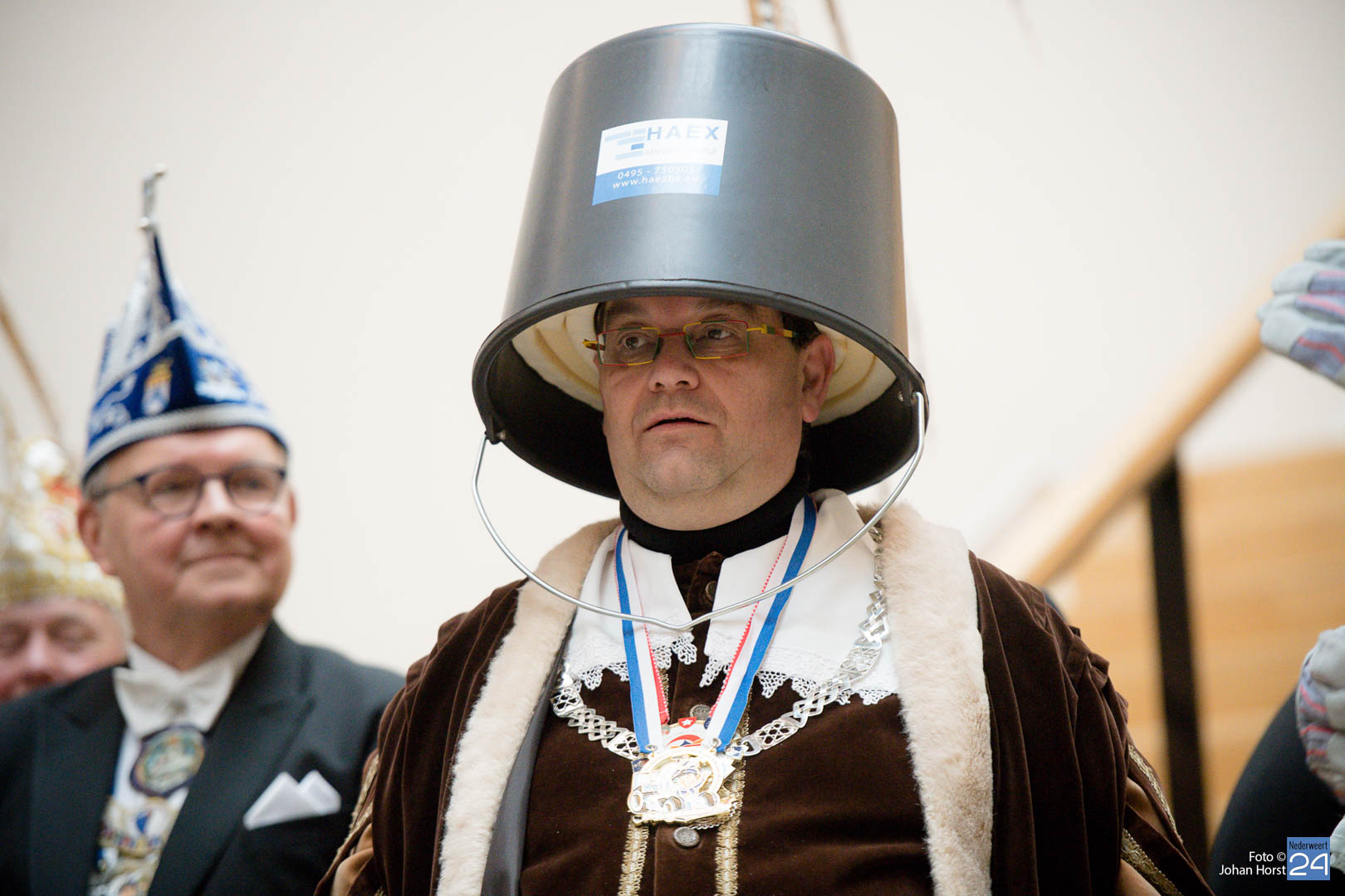 Waar was de raad gebleven? Bijna onherkenbaar kwamen ze binnen, zomaar een tijdreis naar de Graaf van Horne. De stemming zat er al snel in de overdracht kon plaats vinden. De sleutels werden overgedragen van de raad aan de prinsen. Die hadden ook wat bedacht voor de raadsleden. In deze dagen kunnen zij wel aan de slag op de bouw. En over bouwen gesproken, er was nog een grote wens voor de Weerter carnavalsbouwers. De prins bracht deze wens over aan de raad: een mooie nieuwe bouwhal zag hij wel zitten, voor een aannemer hoeven ze uiteraard niet ver te zoeken.
