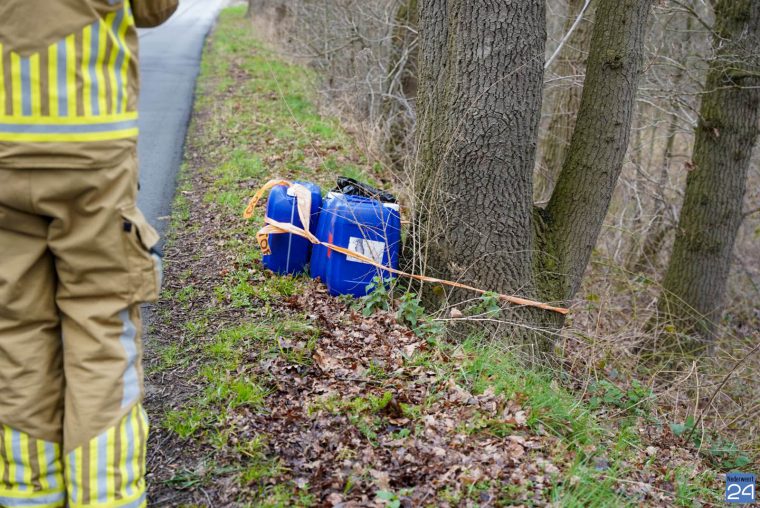 De vaten werden aangetroffen door een voorbijganger die vervolgens de brandweer heeft gewaarschuwd. De brandweer kwam ter plaatse en iemand van de gemeente. Deze laatste gaat zorgdragen dat de vaten opgeruimd worden.