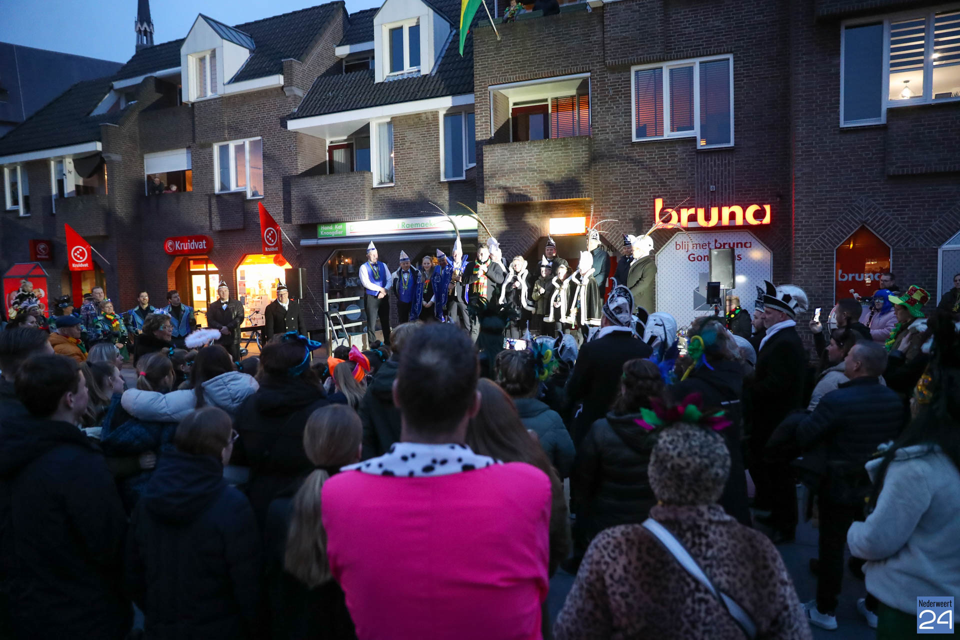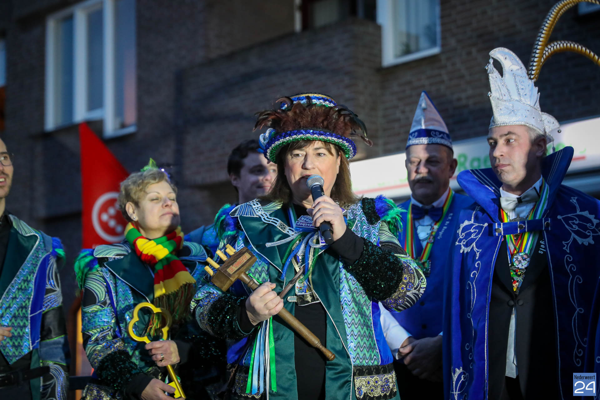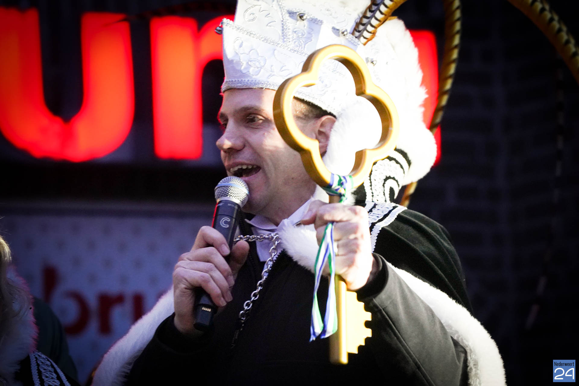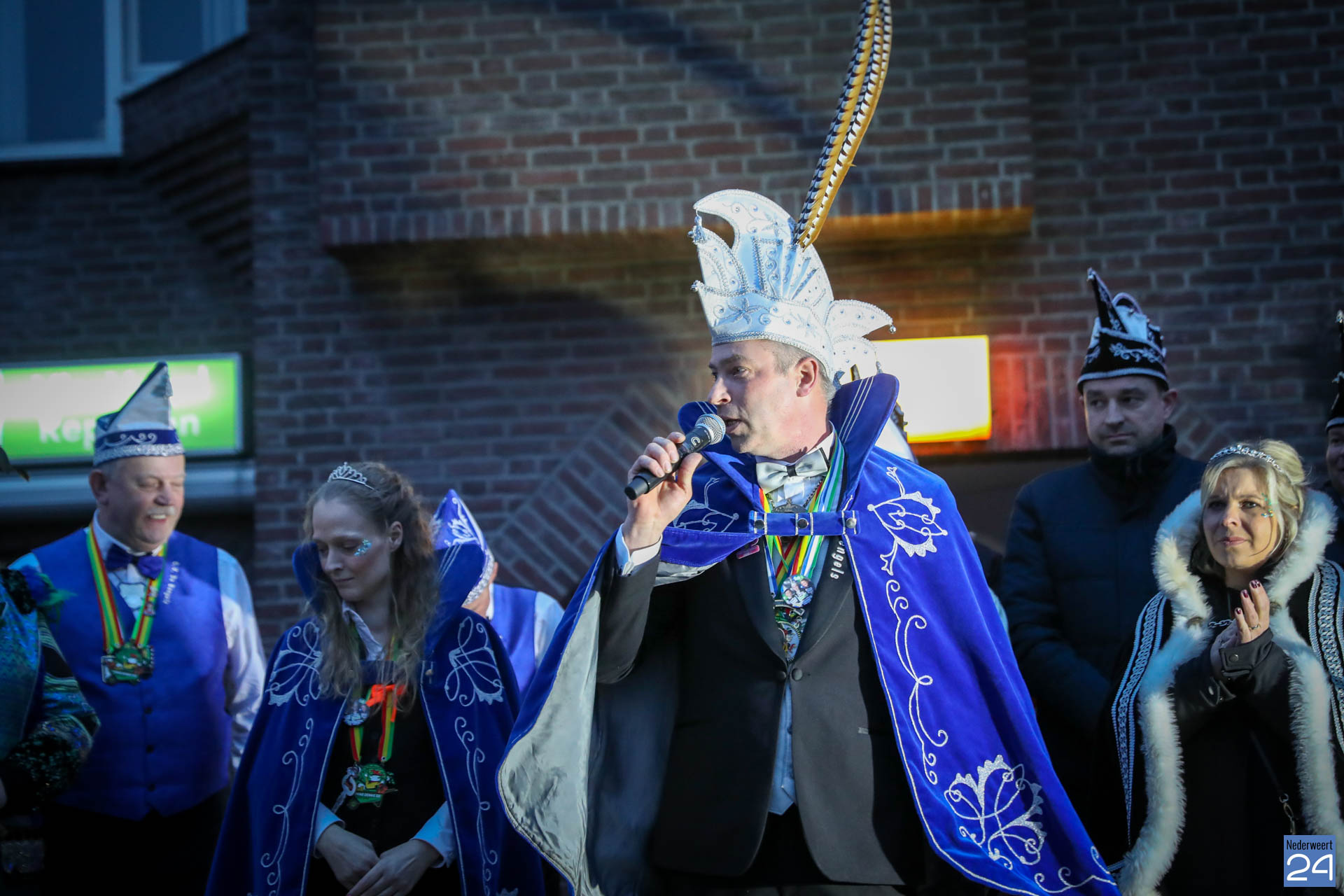 Prins Goof I gaf de sleutel van de achterpoort terug maar niet voordat hij in zijn geweldige speech iedereen bedankte voor de mooie herinneringen die ze, samen met prinses Lana en adjudant Noud, gemaakt hebben. Daarna was het de beurt aan Prins Frank I. Hij hield het kort maar krachtig en bedankte iedereen voor de fantastische tijd die hij samen met zijn prinses Loes en zijn adjudanten heeft mogen ervaren. Met weemoed, maar terugkijkend op een prachtig vastelaovundj’s seizoen gaf hij de sleutel terug aan de Opperpin, de Burgemeester van Nederweert.