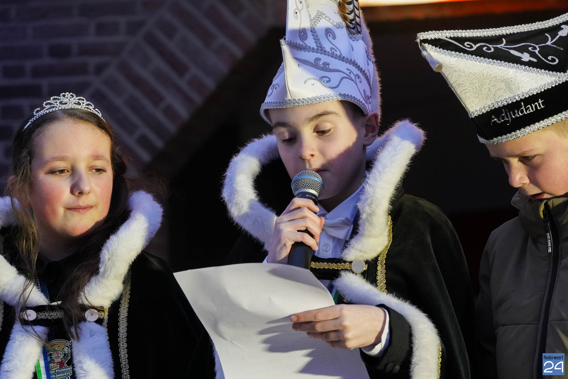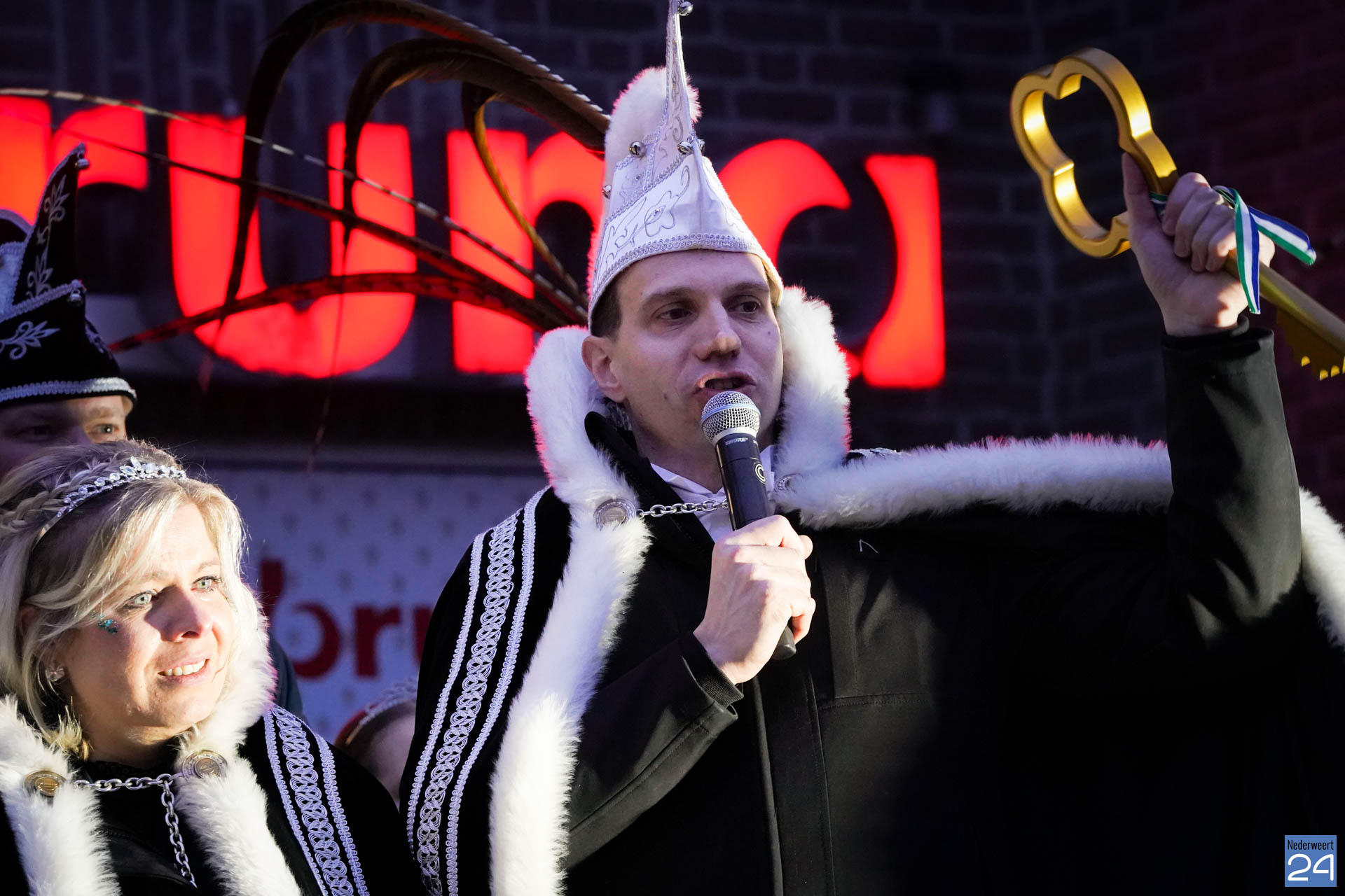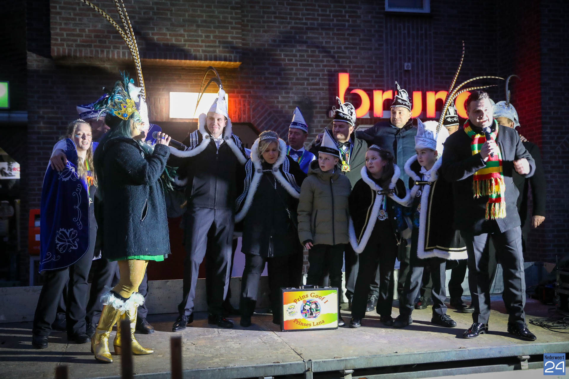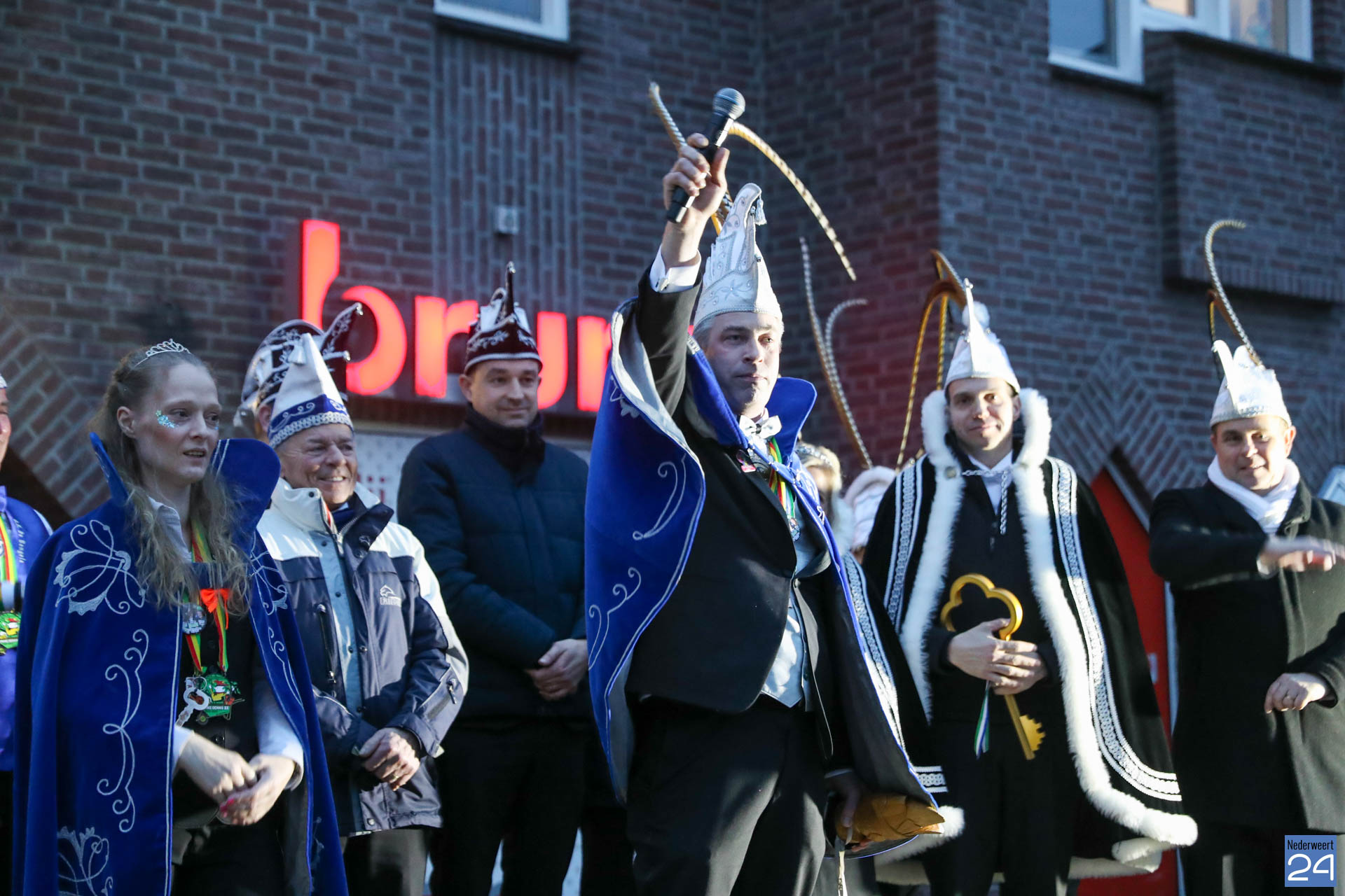 Prins Goof I gaf de sleutel van de achterpoort terug maar niet voordat hij in zijn geweldige speech iedereen bedankte voor de mooie herinneringen die ze, samen met prinses Lana en adjudant Noud, gemaakt hebben. Daarna was het de beurt aan Prins Frank I. Hij hield het kort maar krachtig en bedankte iedereen voor de fantastische tijd die hij samen met zijn prinses Loes en zijn adjudanten heeft mogen ervaren. Met weemoed, maar terugkijkend op een prachtig vastelaovundj’s seizoen gaf hij de sleutel terug aan de Opperpin, de Burgemeester van Nederweert.