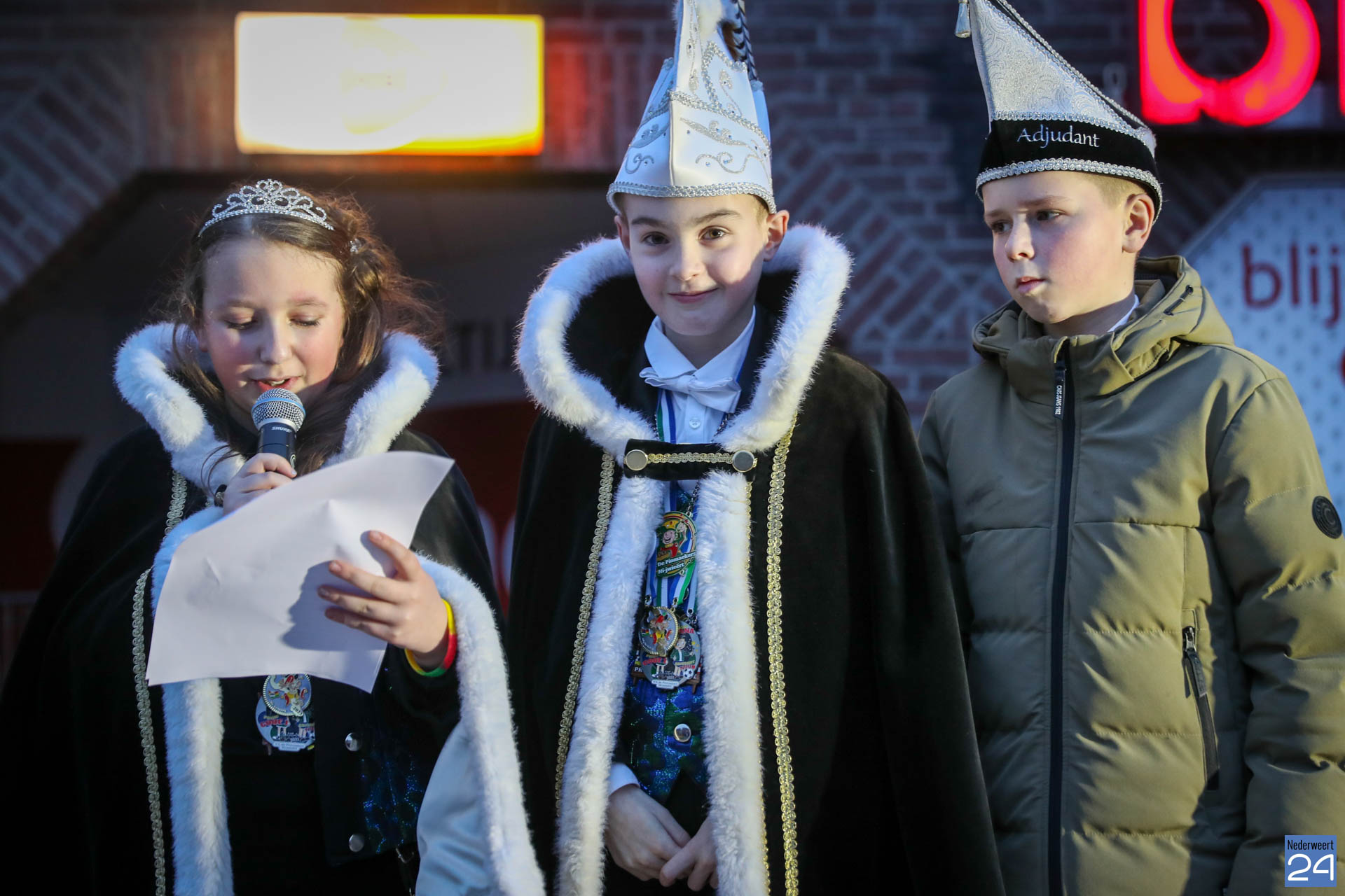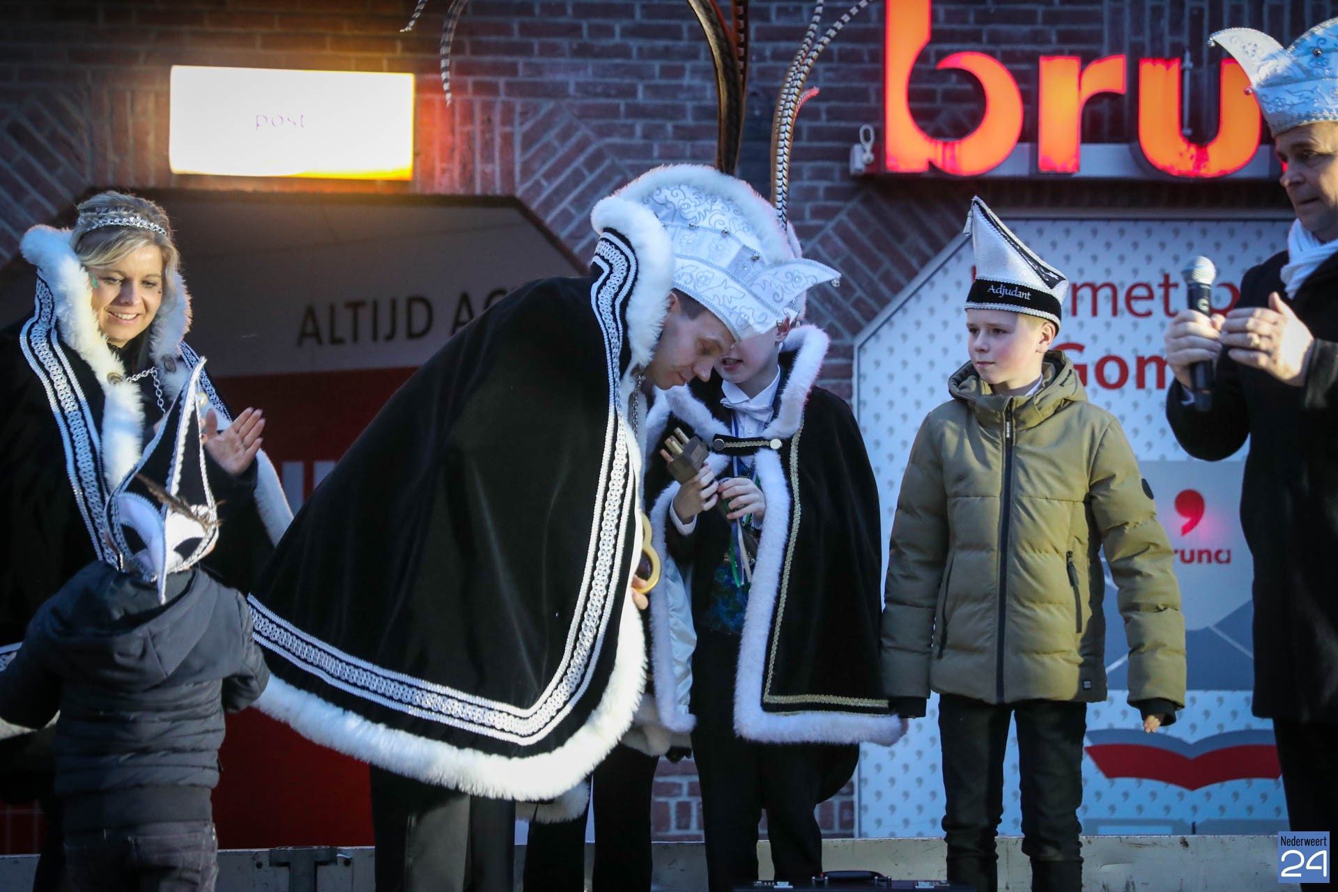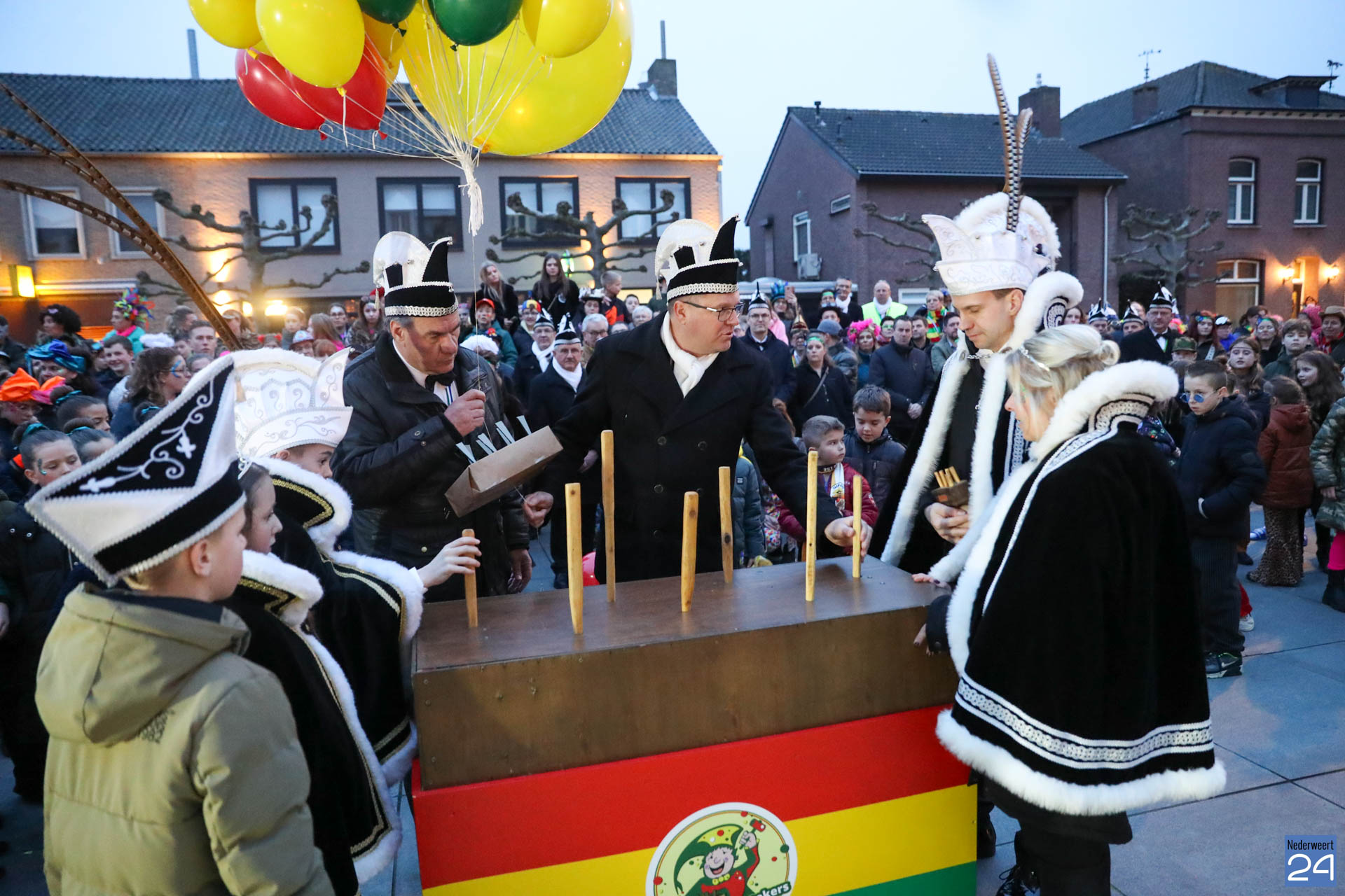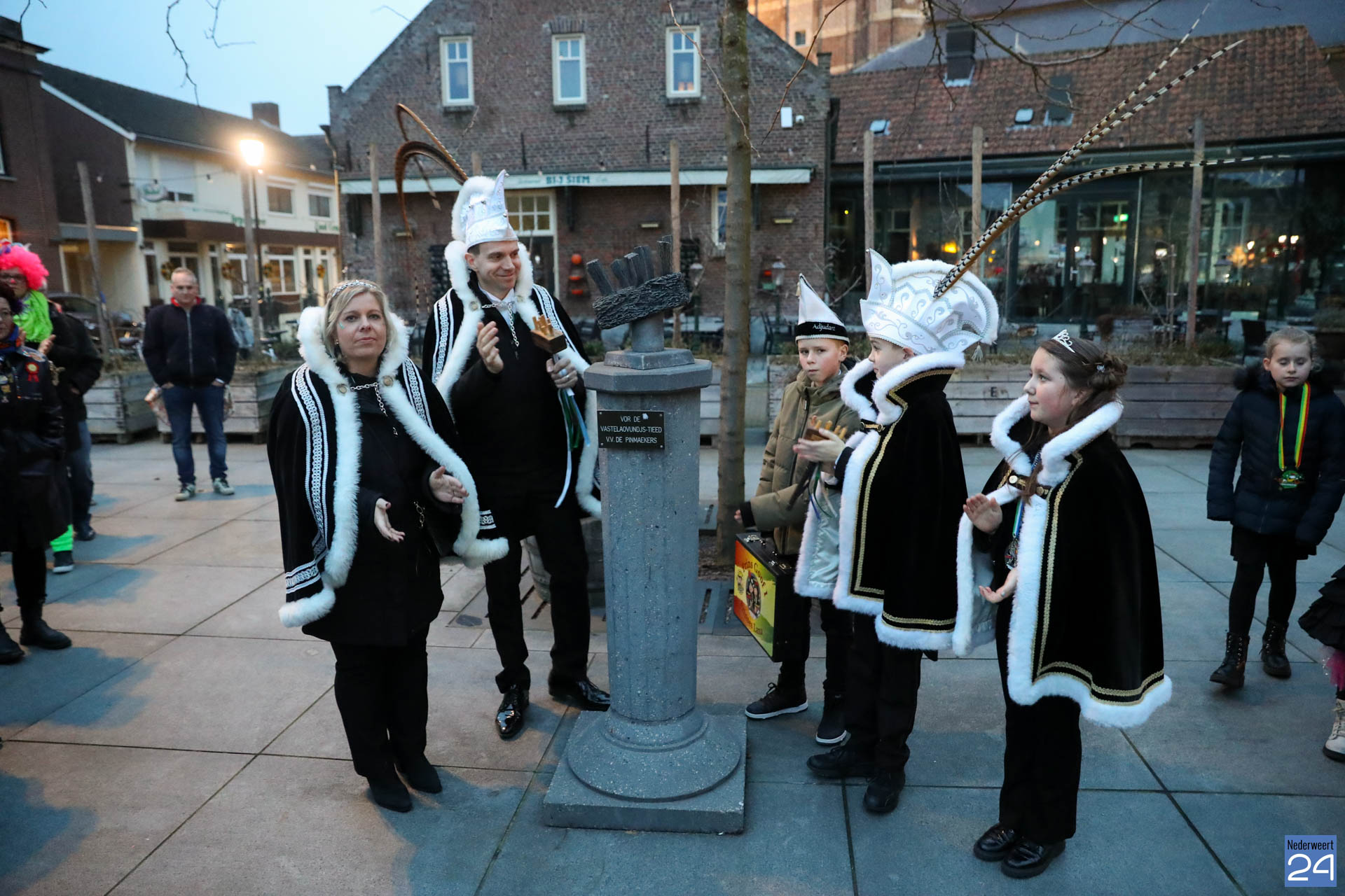 Prins Goof I gaf de sleutel van de achterpoort terug maar niet voordat hij in zijn geweldige speech iedereen bedankte voor de mooie herinneringen die ze, samen met prinses Lana en adjudant Noud, gemaakt hebben. Daarna was het de beurt aan Prins Frank I. Hij hield het kort maar krachtig en bedankte iedereen voor de fantastische tijd die hij samen met zijn prinses Loes en zijn adjudanten heeft mogen ervaren. Met weemoed, maar terugkijkend op een prachtig vastelaovundj’s seizoen gaf hij de sleutel terug aan de Opperpin, de Burgemeester van Nederweert.
