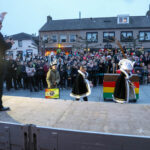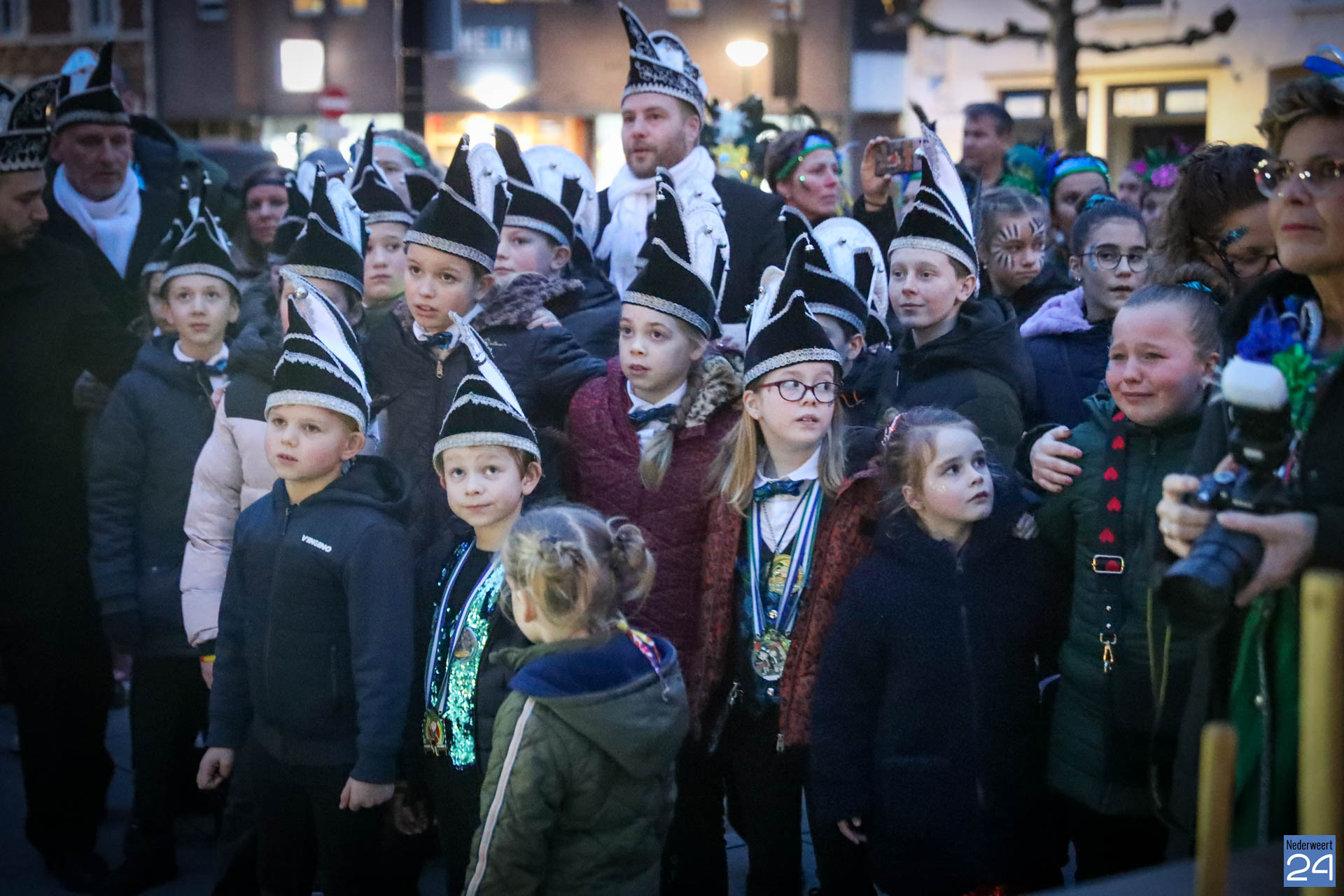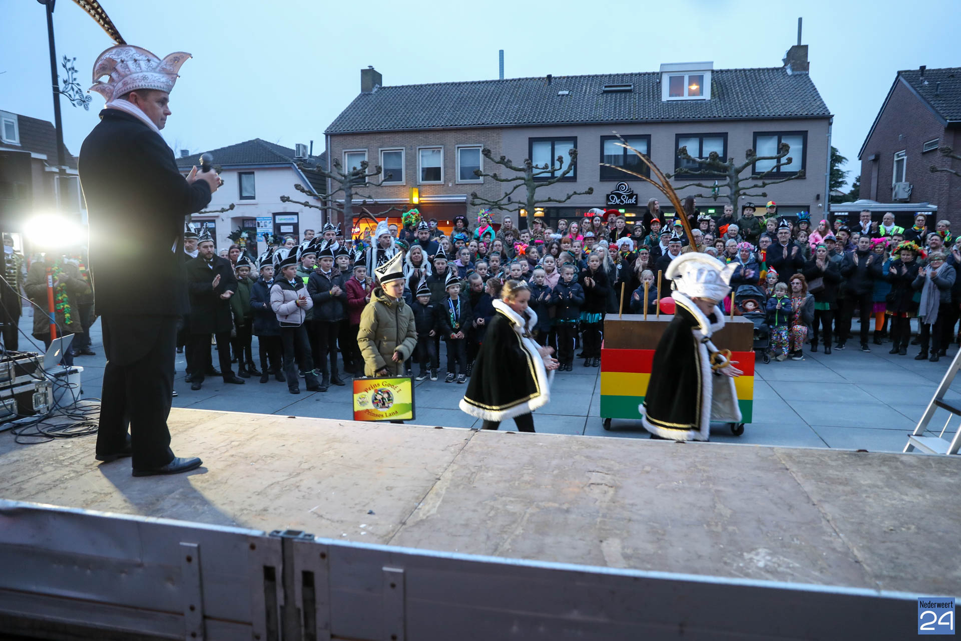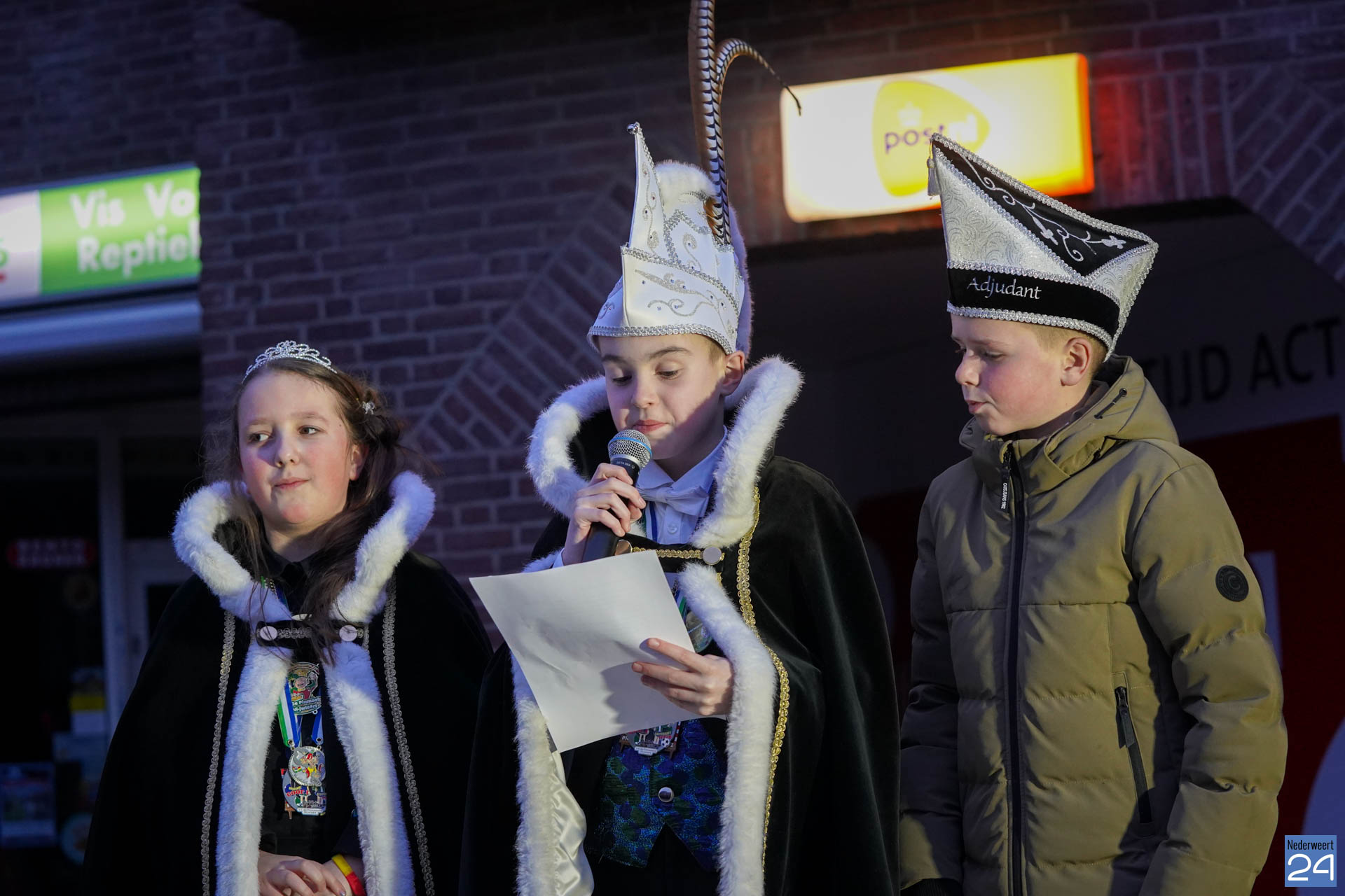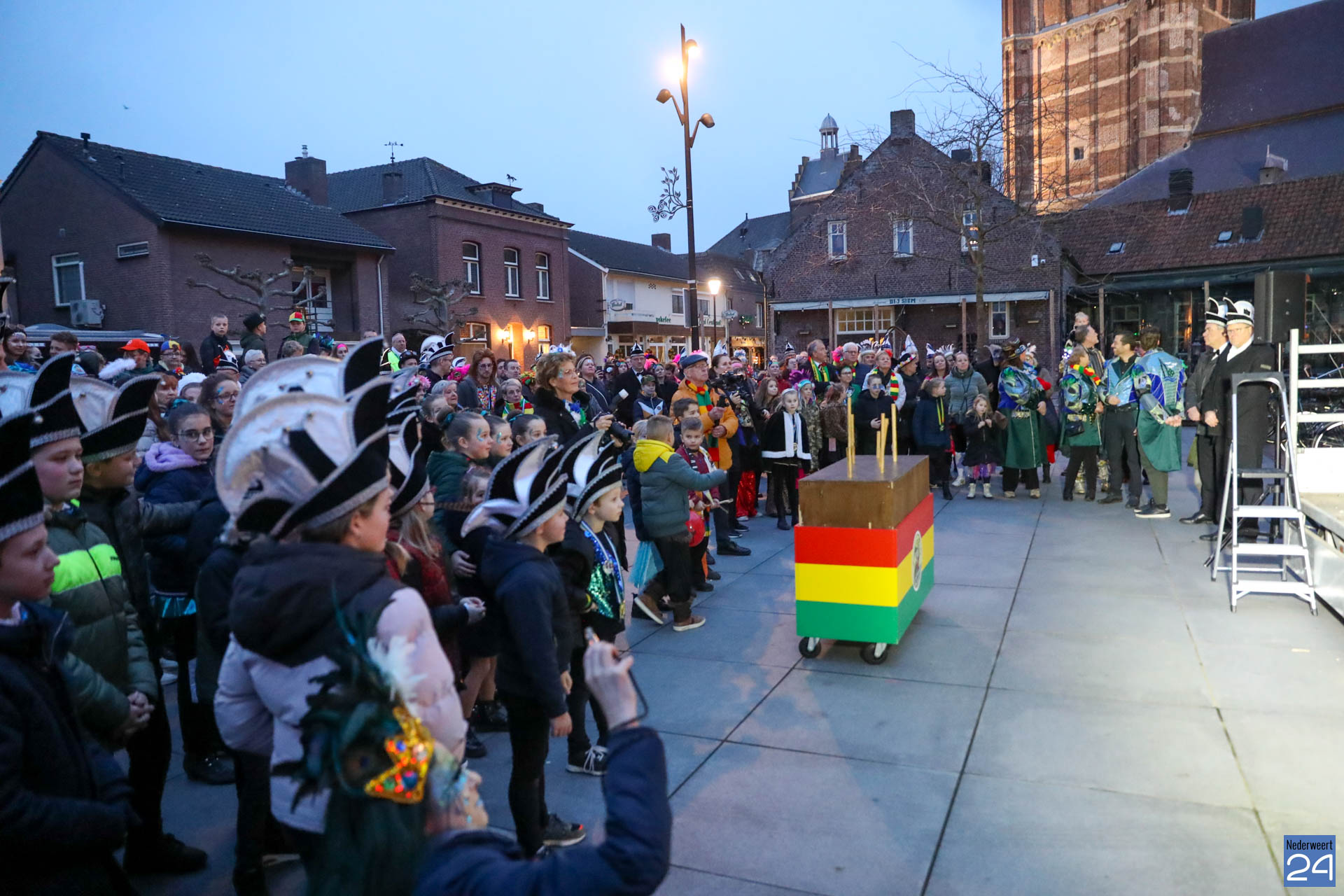 Prins Goof I gaf de sleutel van de achterpoort terug maar niet voordat hij in zijn geweldige speech iedereen bedankte voor de mooie herinneringen die ze, samen met prinses Lana en adjudant Noud, gemaakt hebben. Daarna was het de beurt aan Prins Frank I. Hij hield het kort maar krachtig en bedankte iedereen voor de fantastische tijd die hij samen met zijn prinses Loes en zijn adjudanten heeft mogen ervaren. Met weemoed, maar terugkijkend op een prachtig vastelaovundj’s seizoen gaf hij de sleutel terug aan de Opperpin, de Burgemeester van Nederweert.