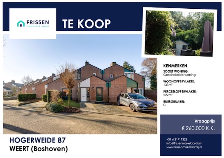 Binnenkort in verkoop, Hogerweide 87 Weert (Boshoven).